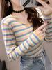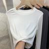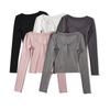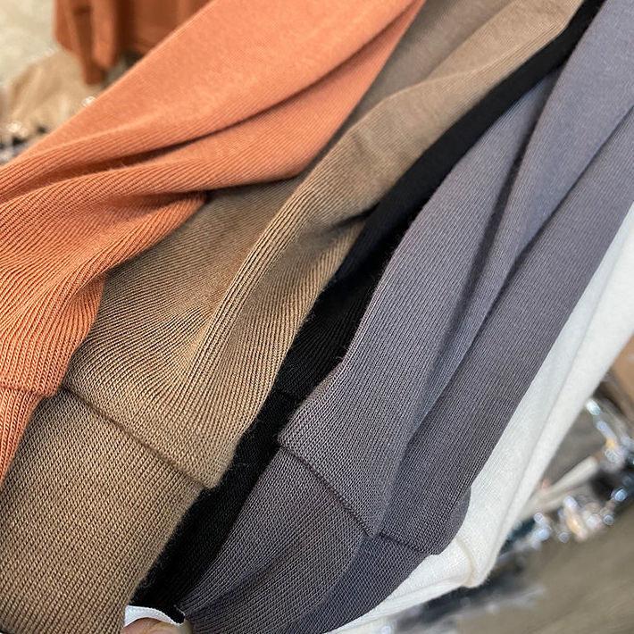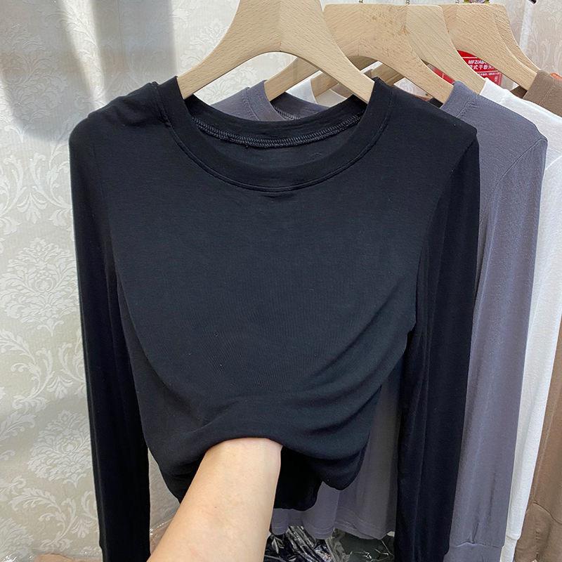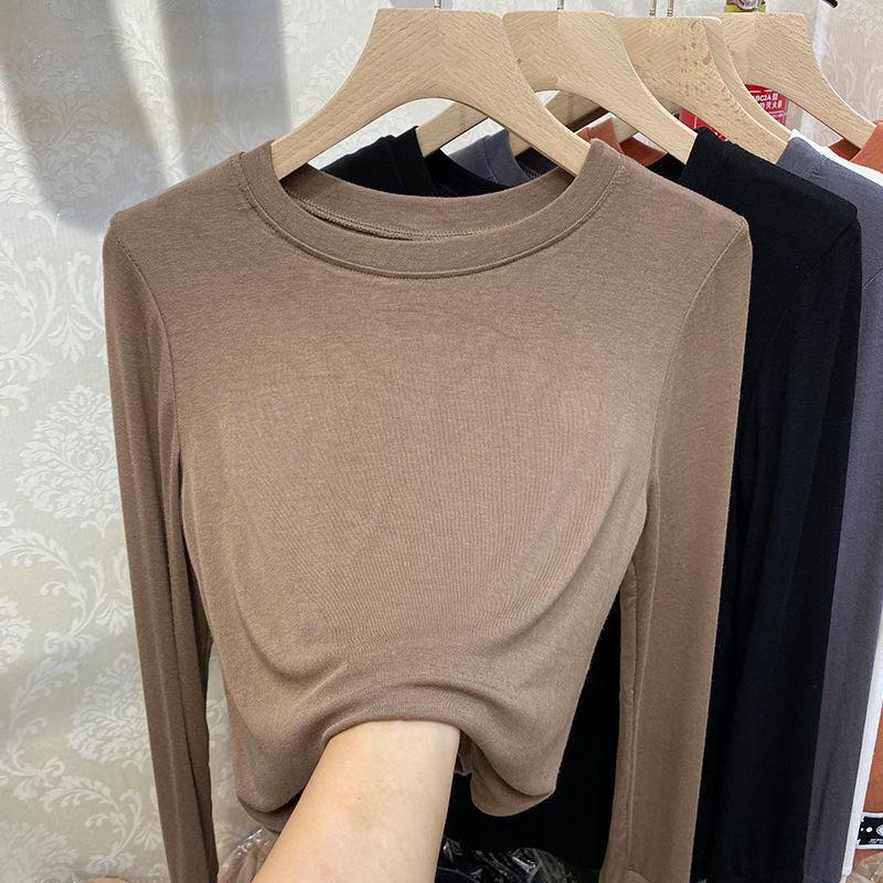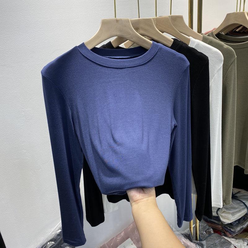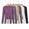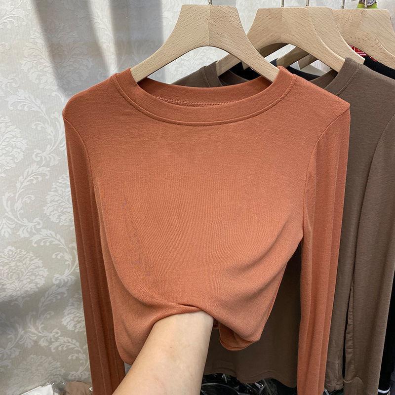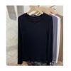Camiseta de manga larga con cuello redondo de algodón de alta calidad para mujer, corte entallado, adelgazante, nueva camiseta de algodón de estilo coreano de color puro 2024 para mujer