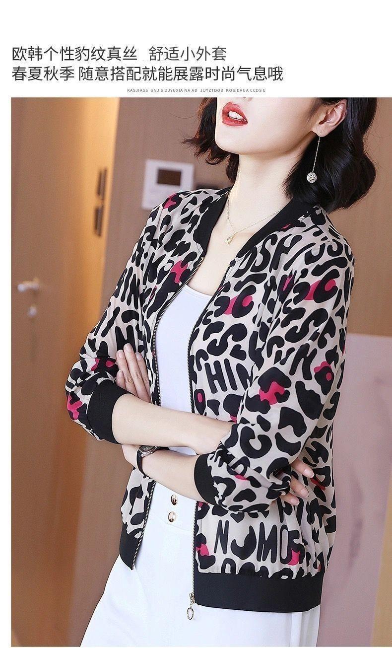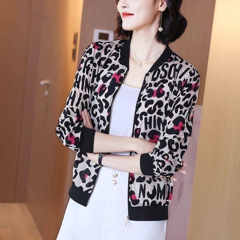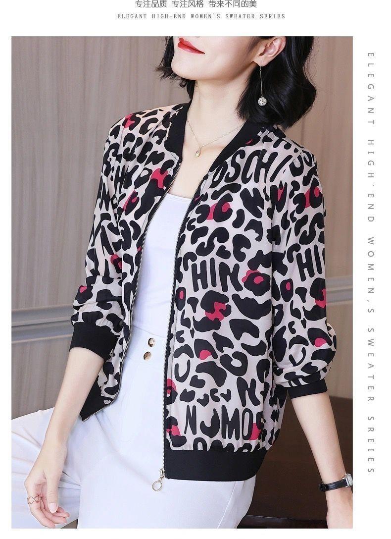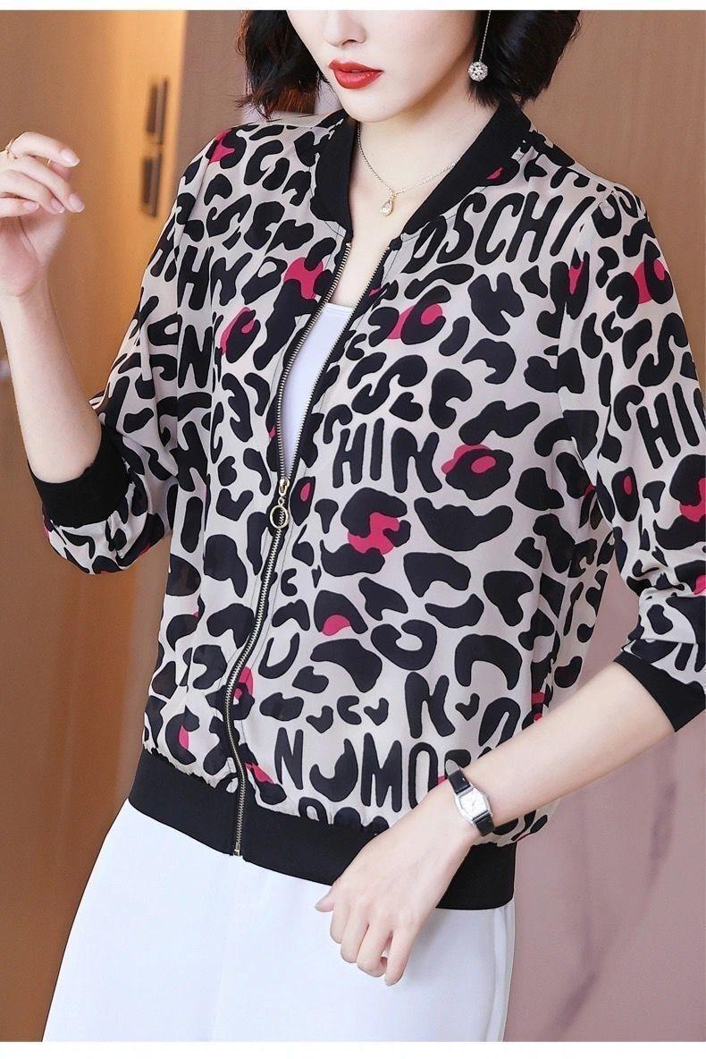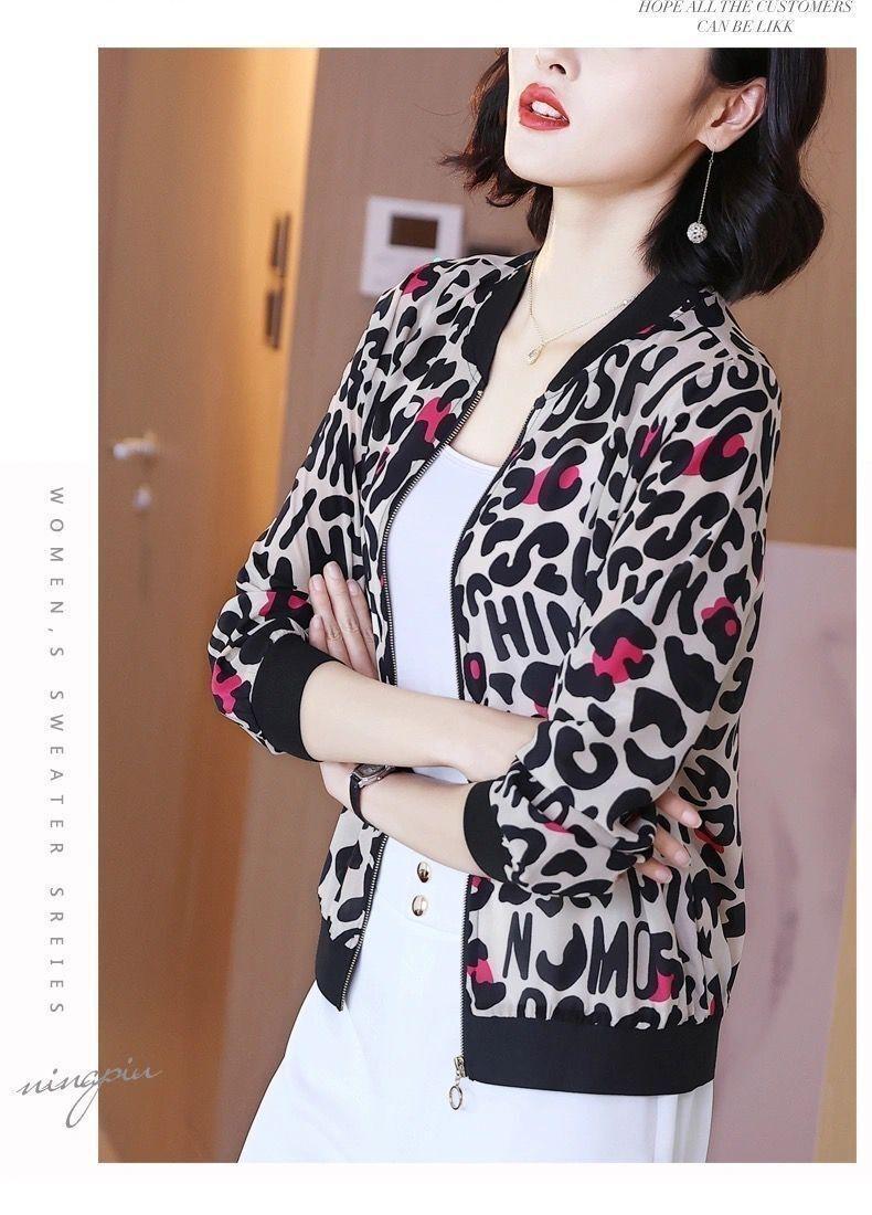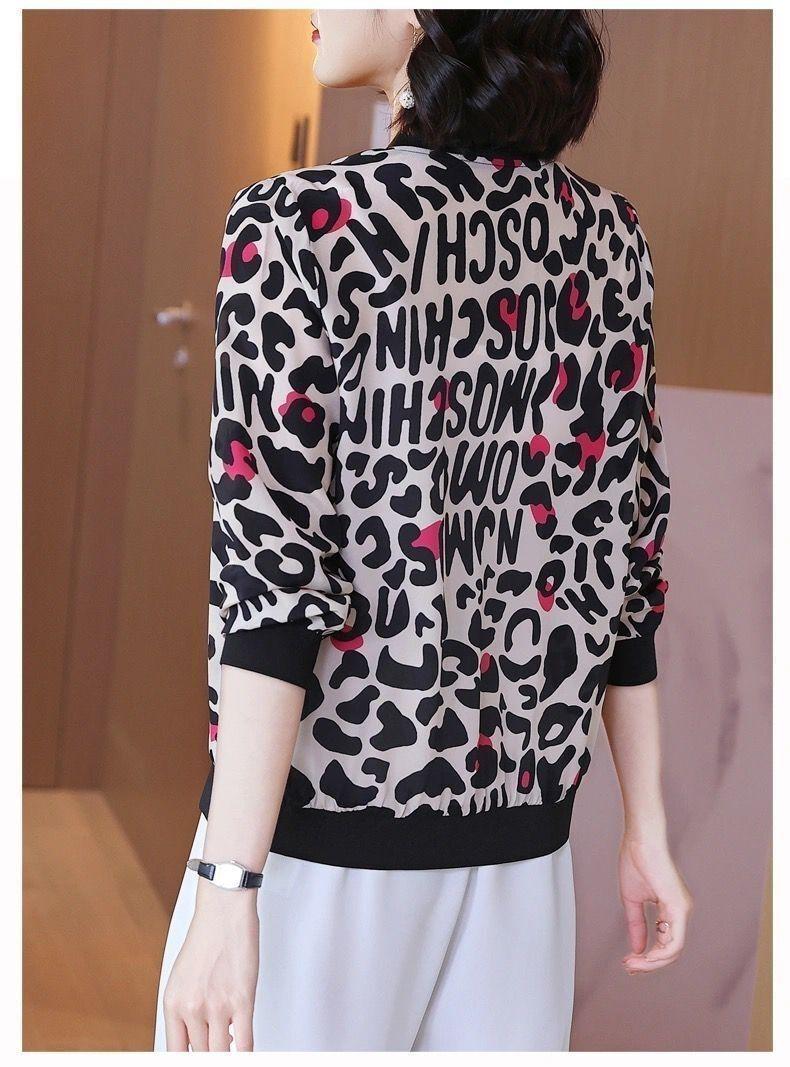 Camisa de gasa de manga larga con protector solar para mujer, abrigo corto de primavera y otoño, nuevo traje de béisbol holgado con estampado de leopardo, talla grande, ropa con aire acondicionado, cárdigan