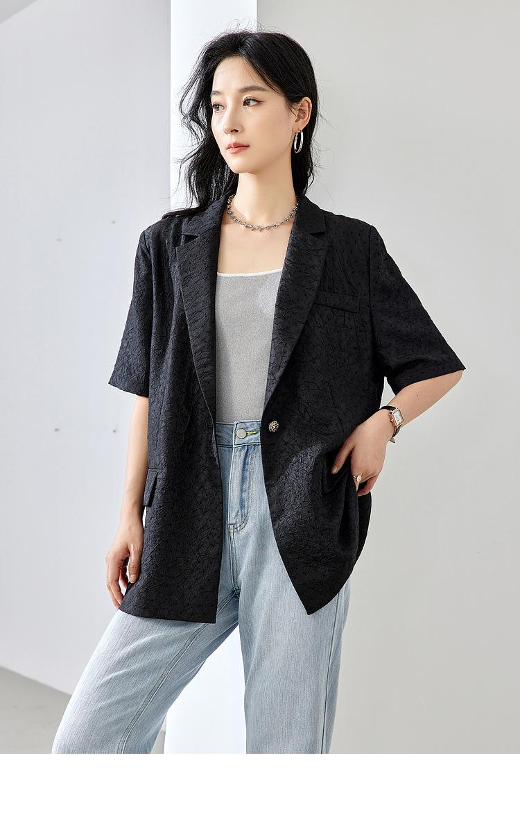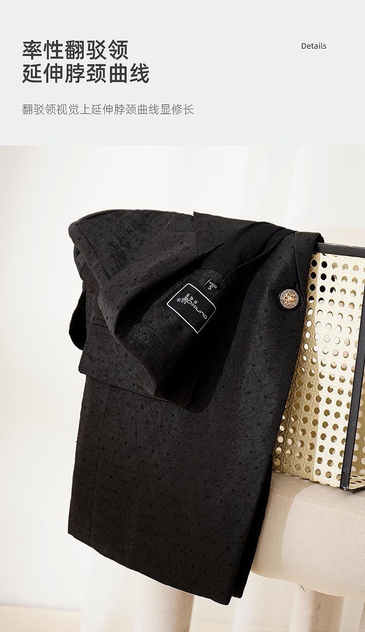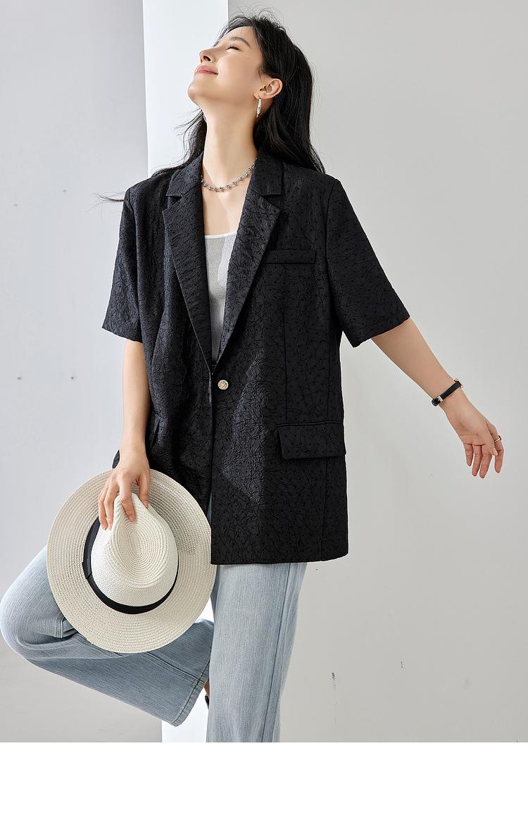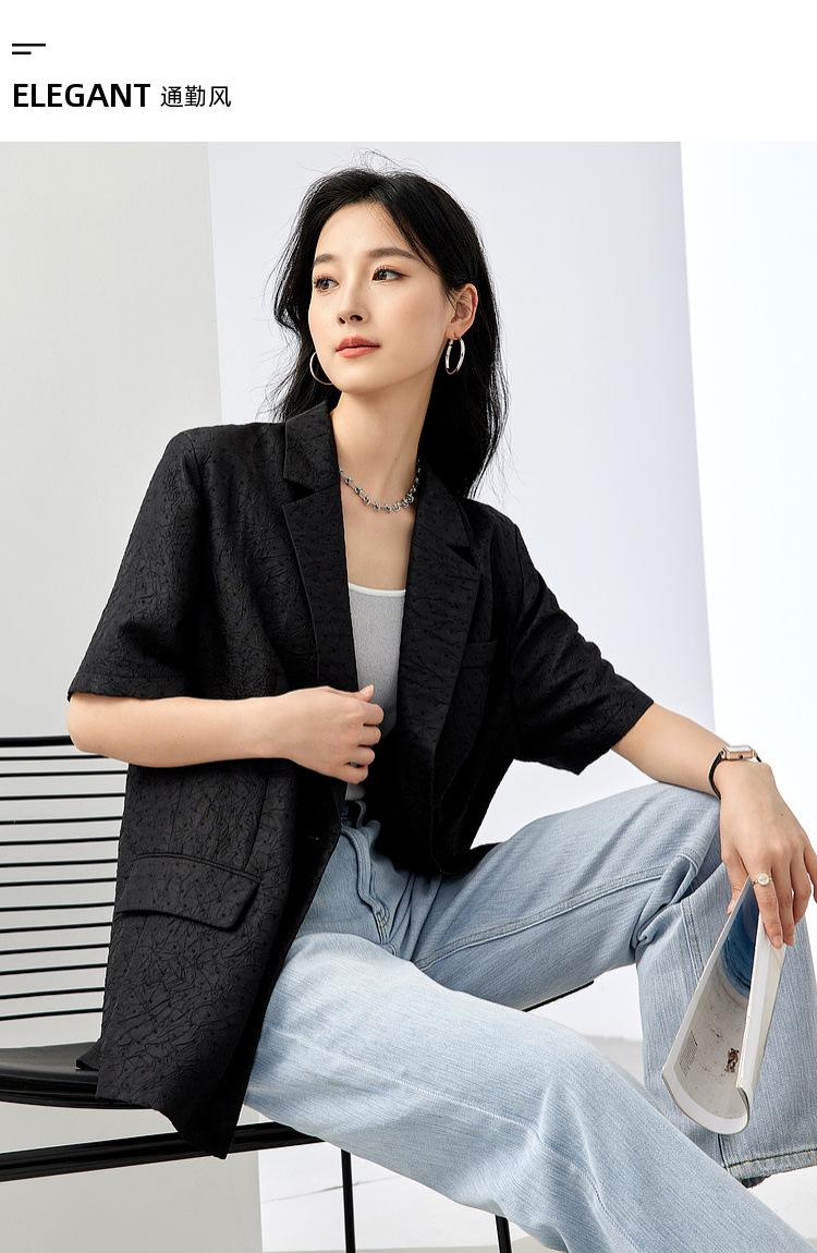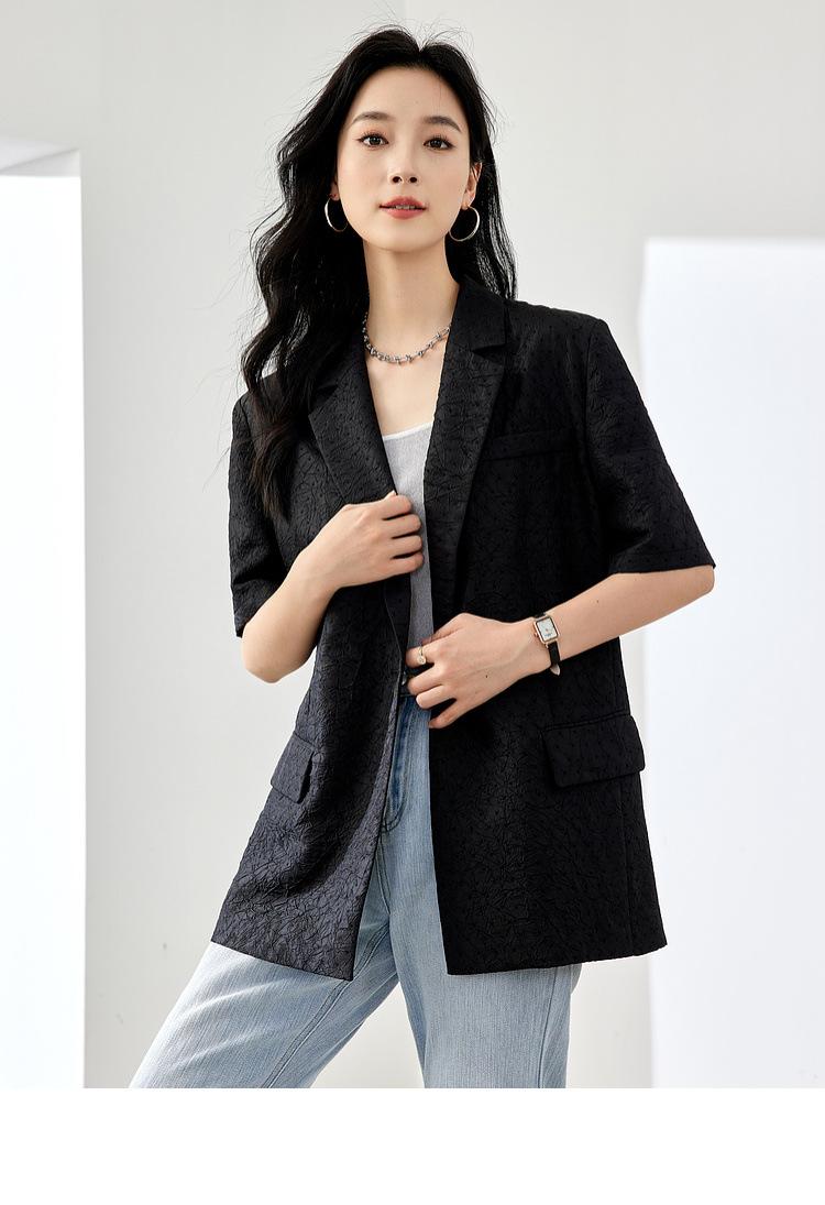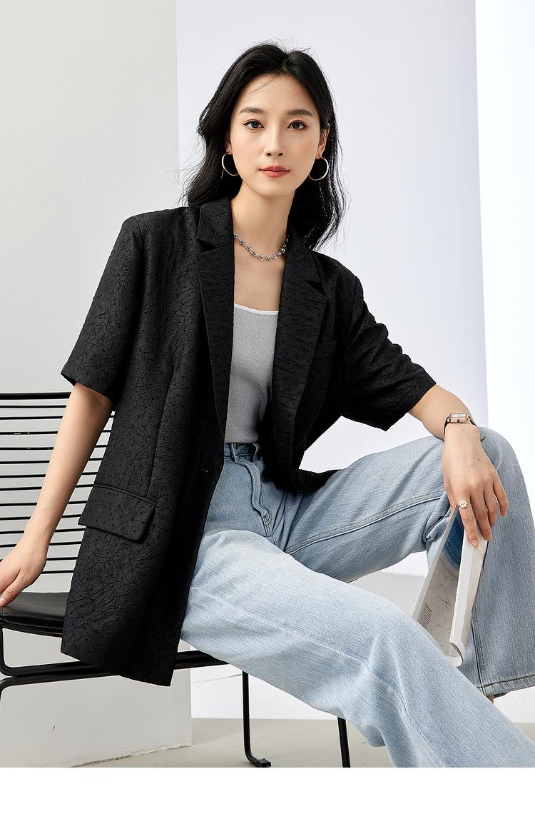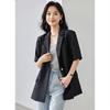 Zhenqi nuevo blazer negro de moda con cuello de solapa para mujer, manga tres cuartos, recto, para ir al trabajo CN686