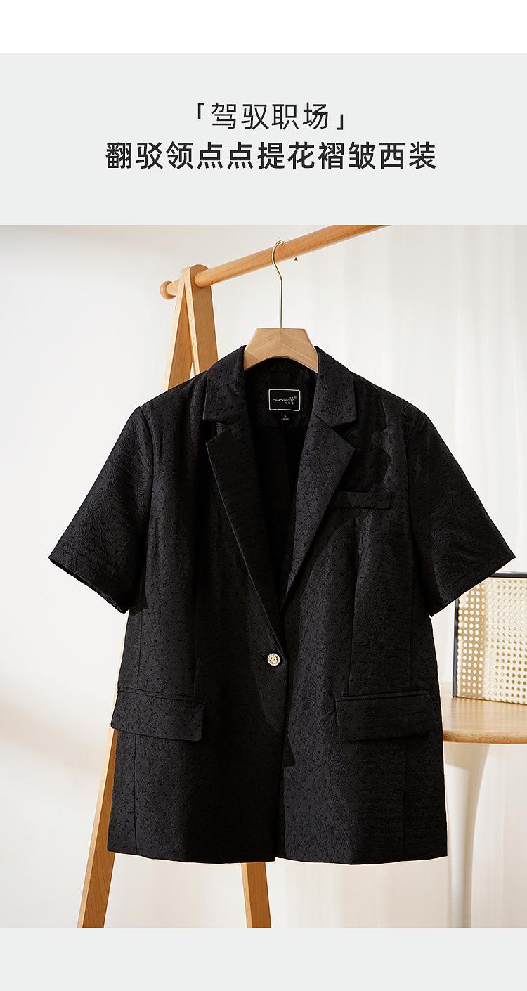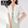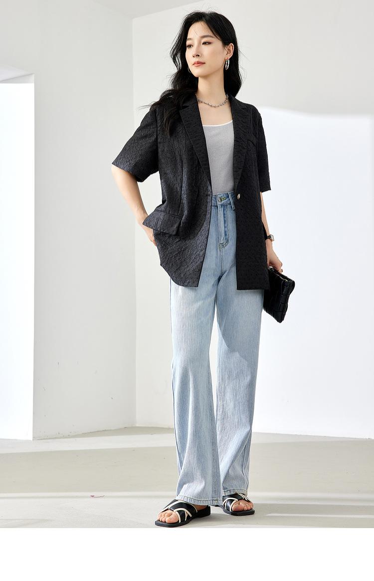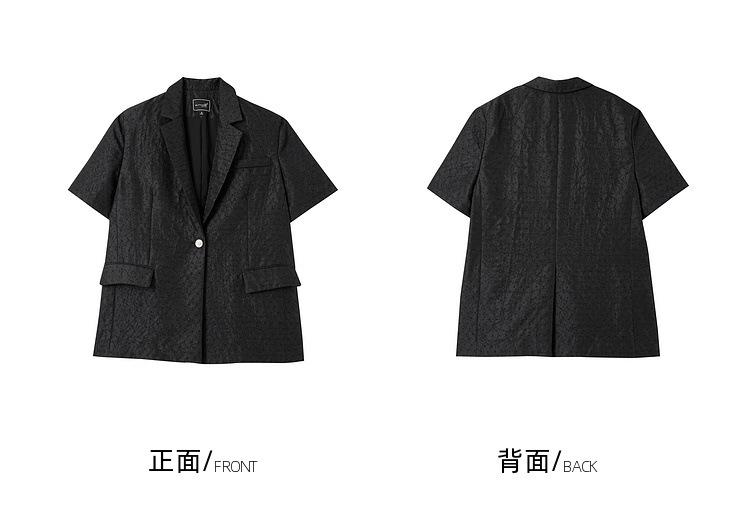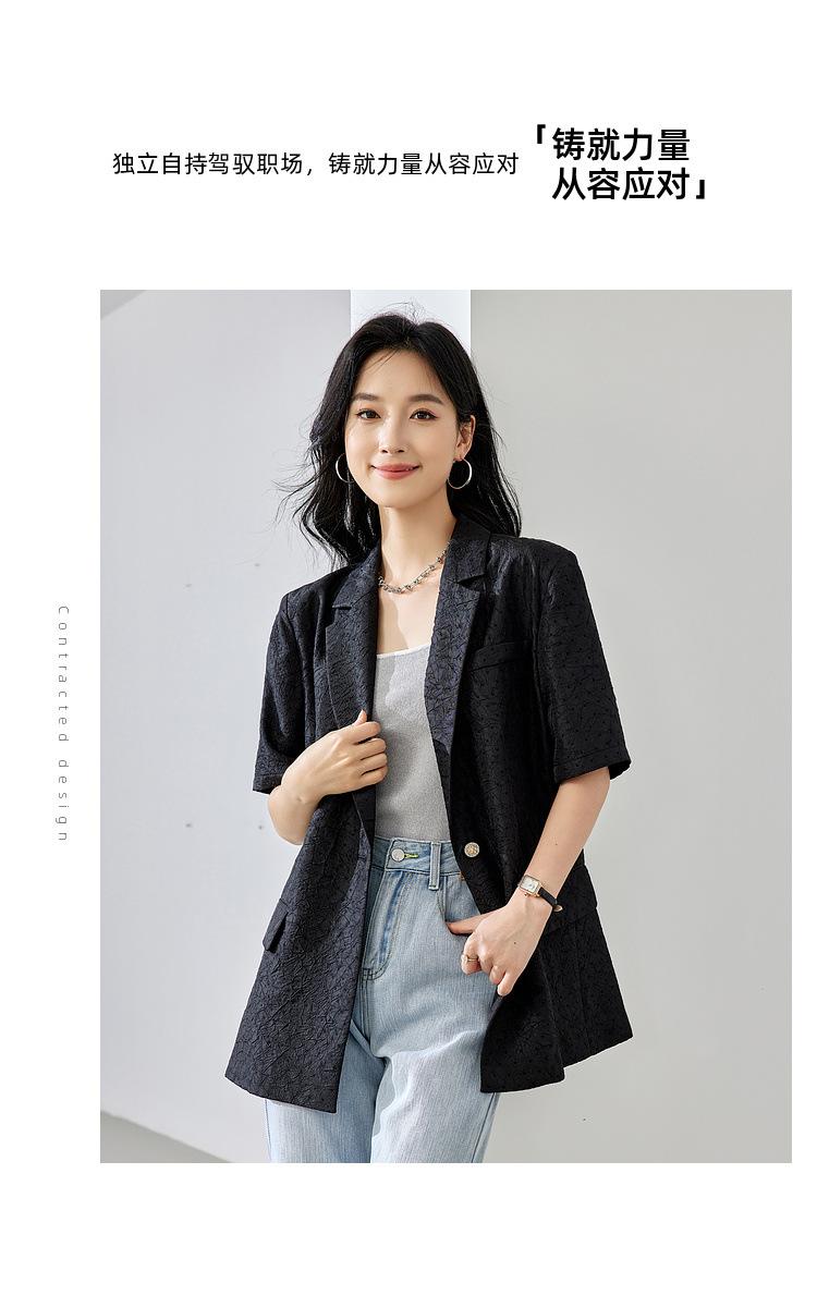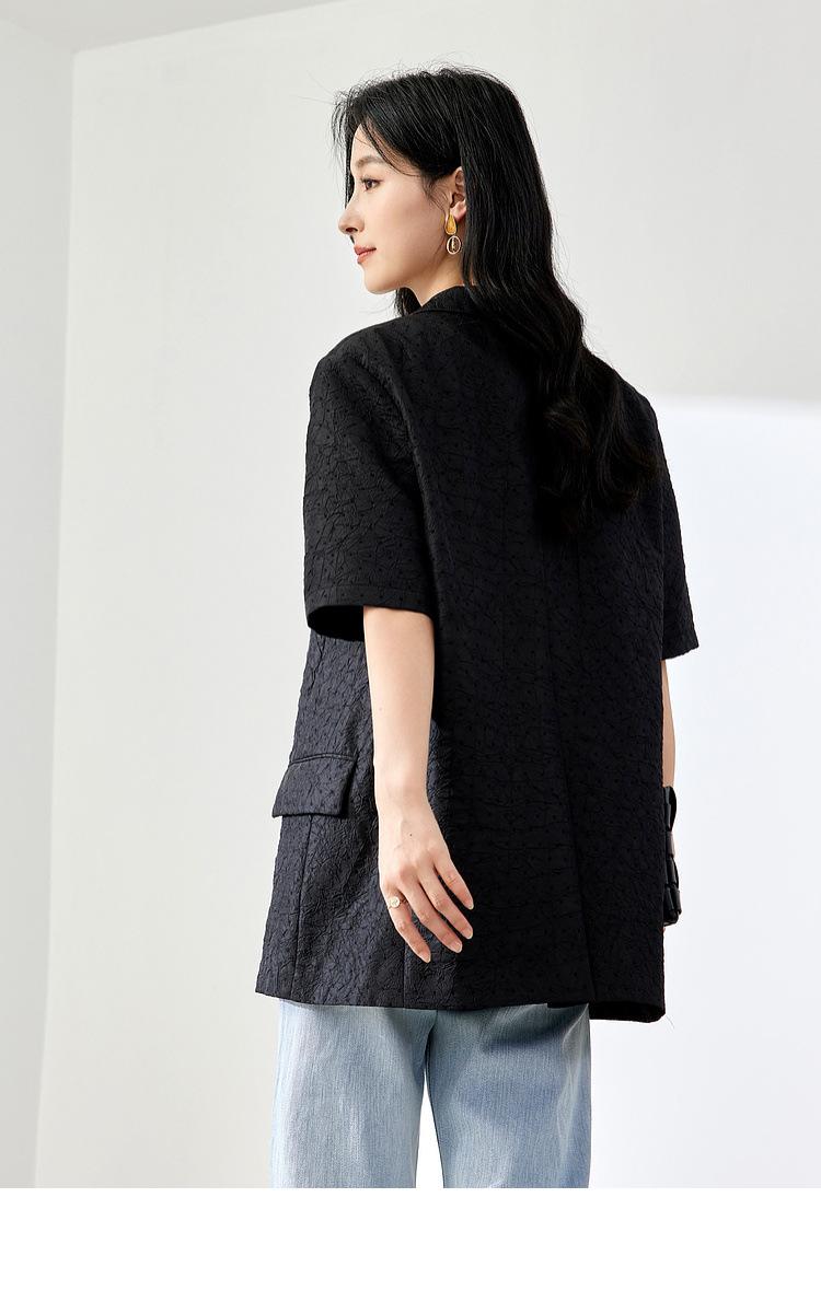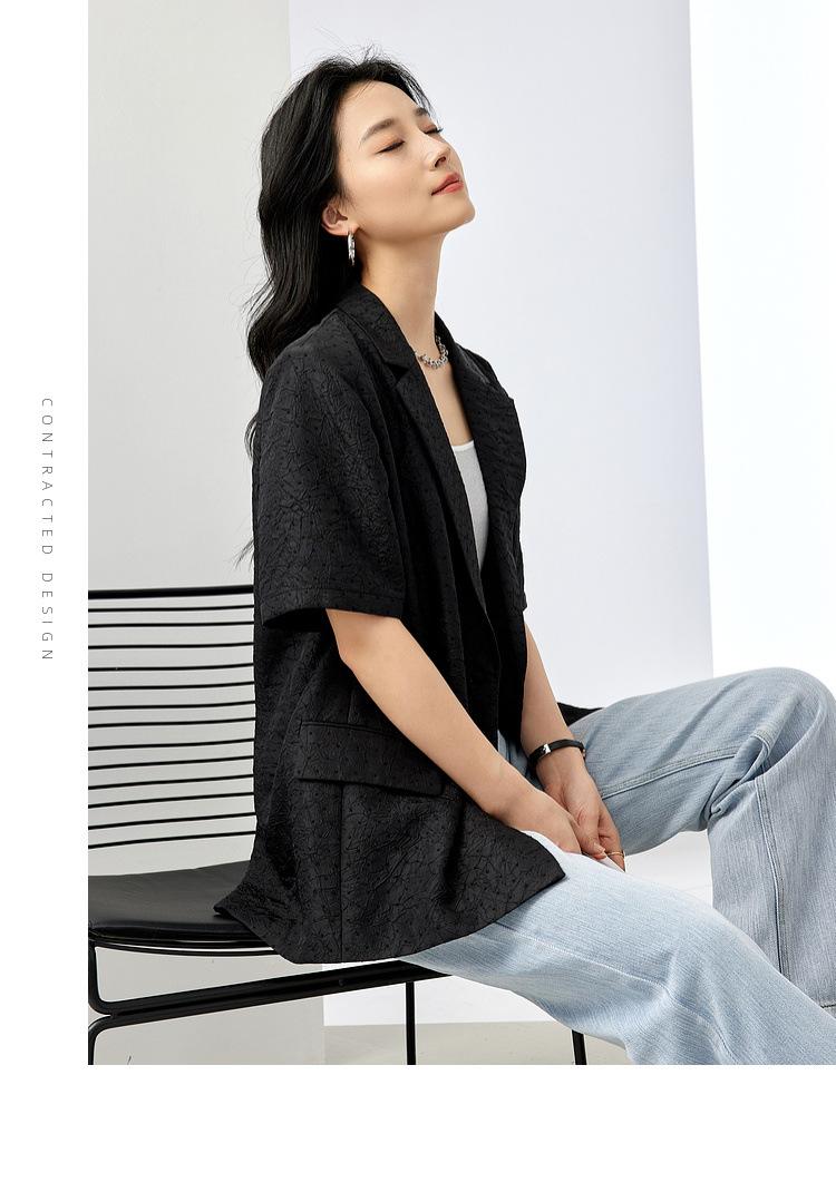 Zhenqi nuevo blazer negro de moda con cuello de solapa para mujer, manga tres cuartos, recto, para ir al trabajo CN686