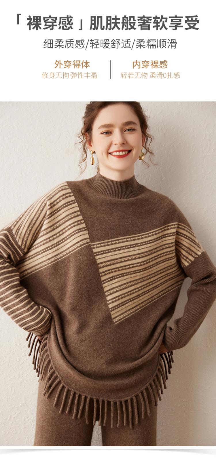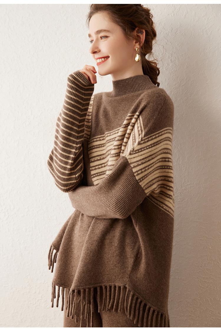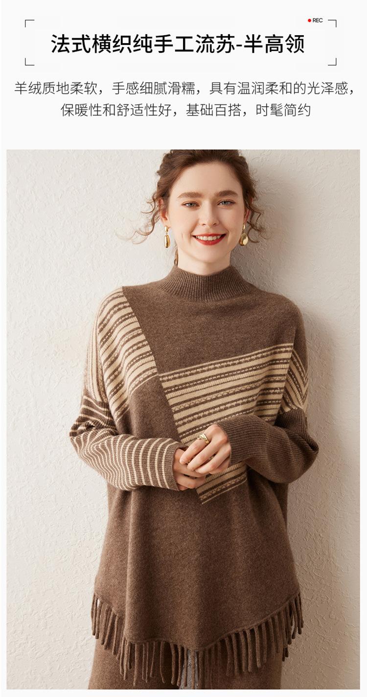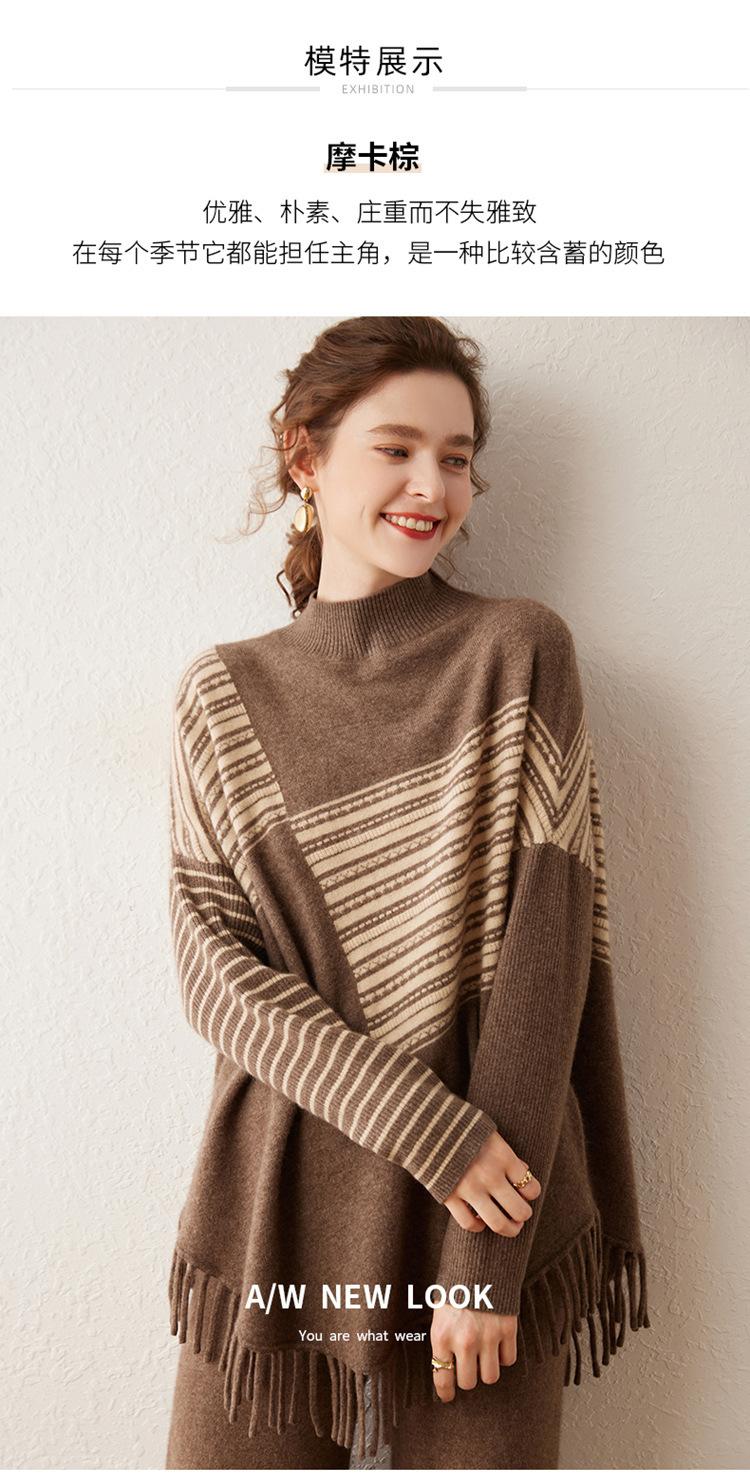 Suéter de cachemira de calle personalizado con cuello alto medio para mujer, otoño e invierno, nuevo jersey de manga larga con borlas, suéter de punto de lana