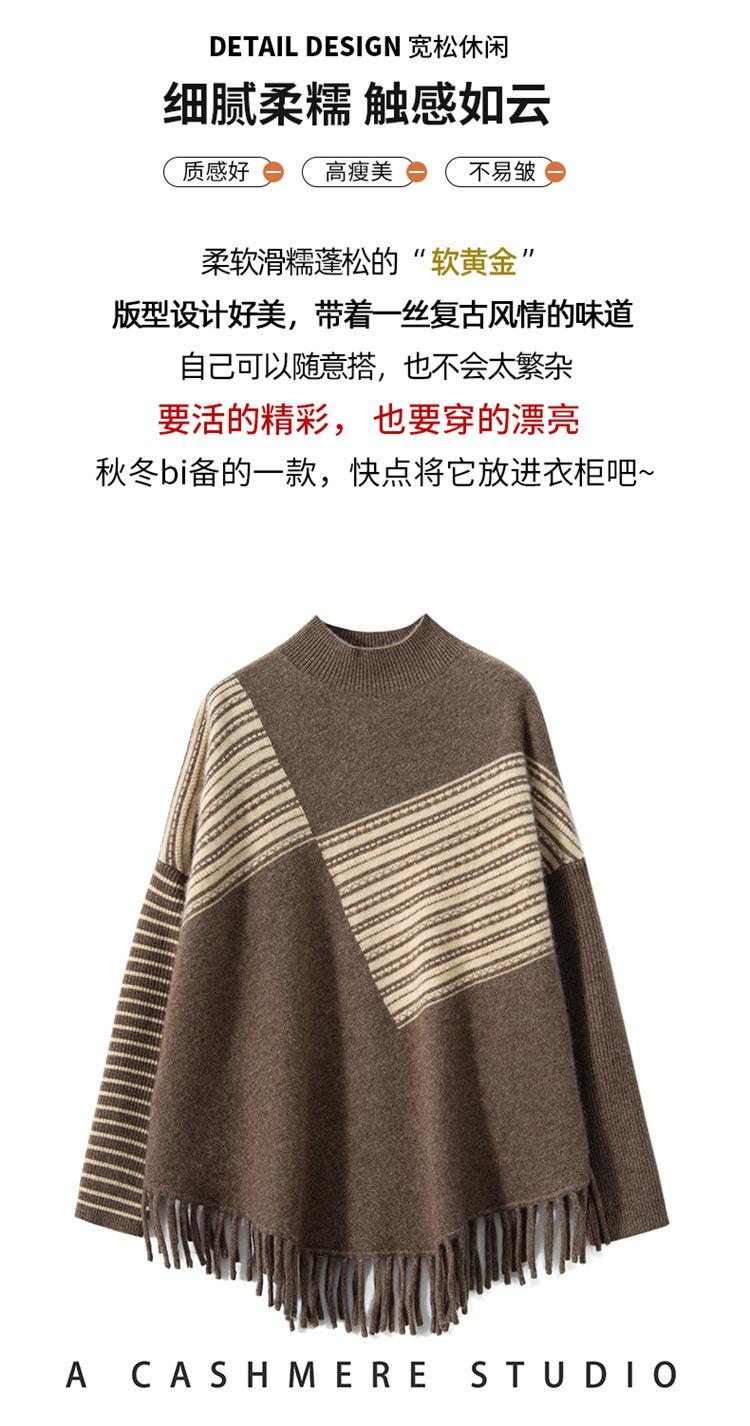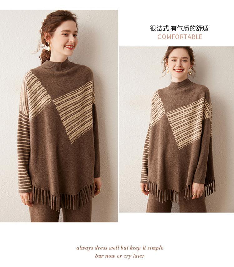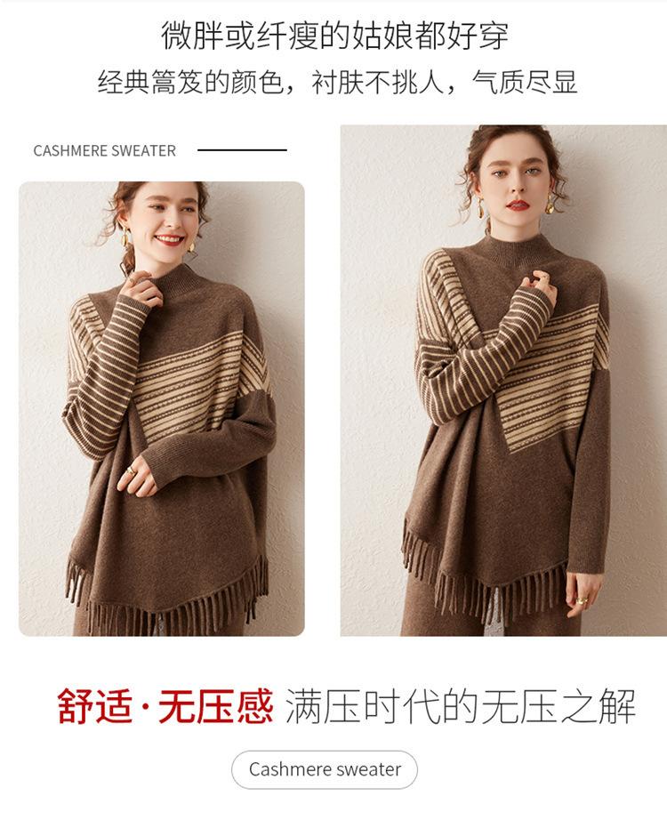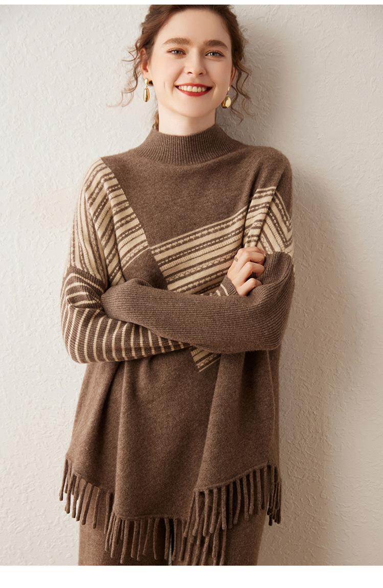 Suéter de cachemira de calle personalizado con cuello alto medio para mujer, otoño e invierno, nuevo jersey de manga larga con borlas, suéter de punto de lana