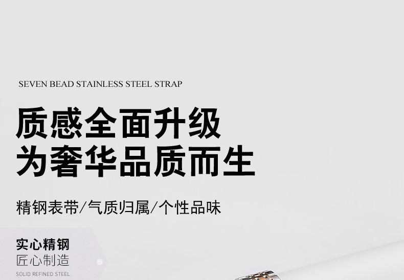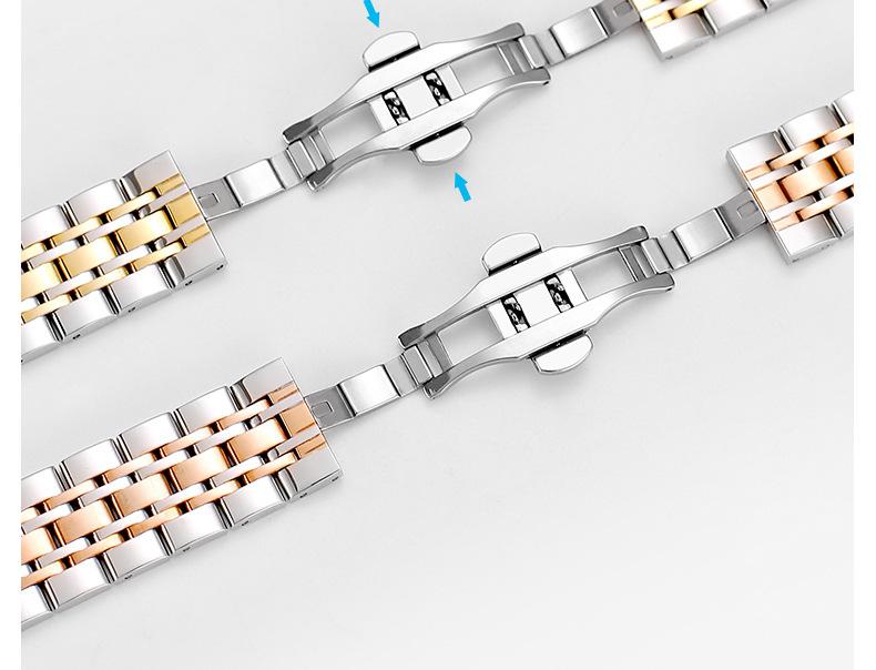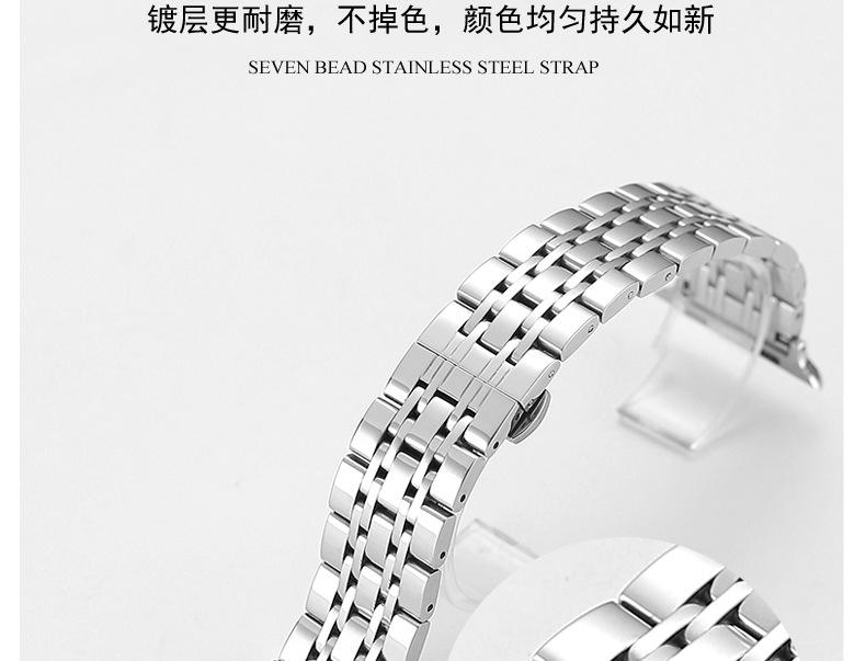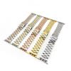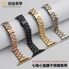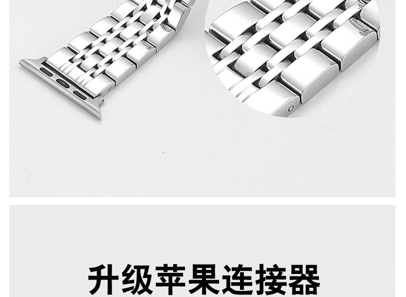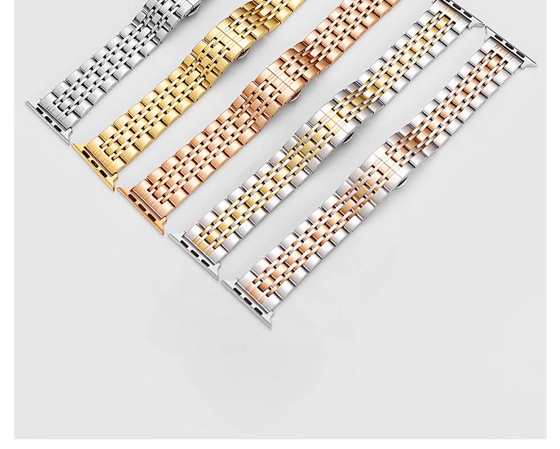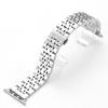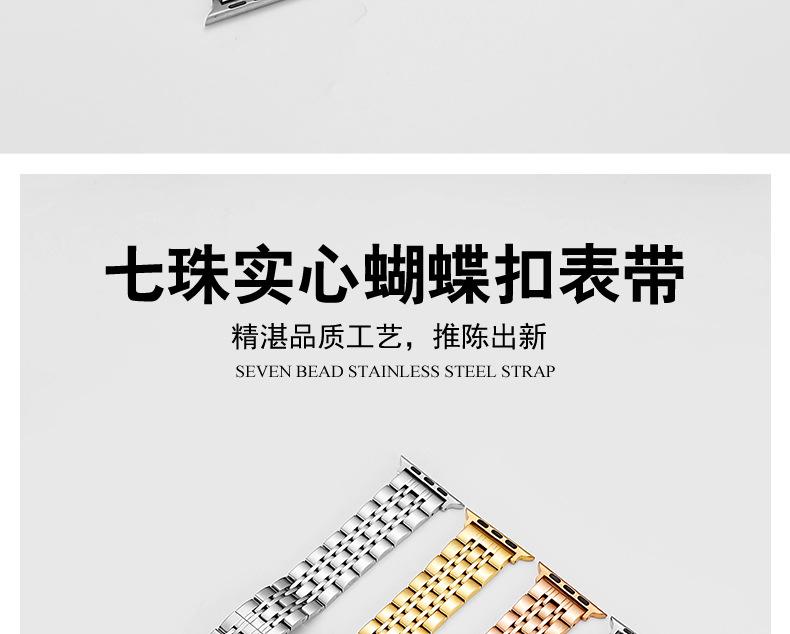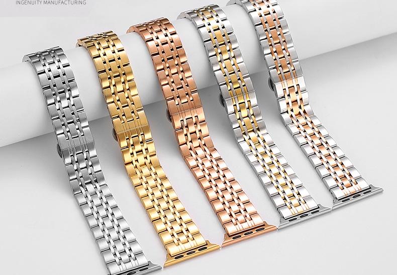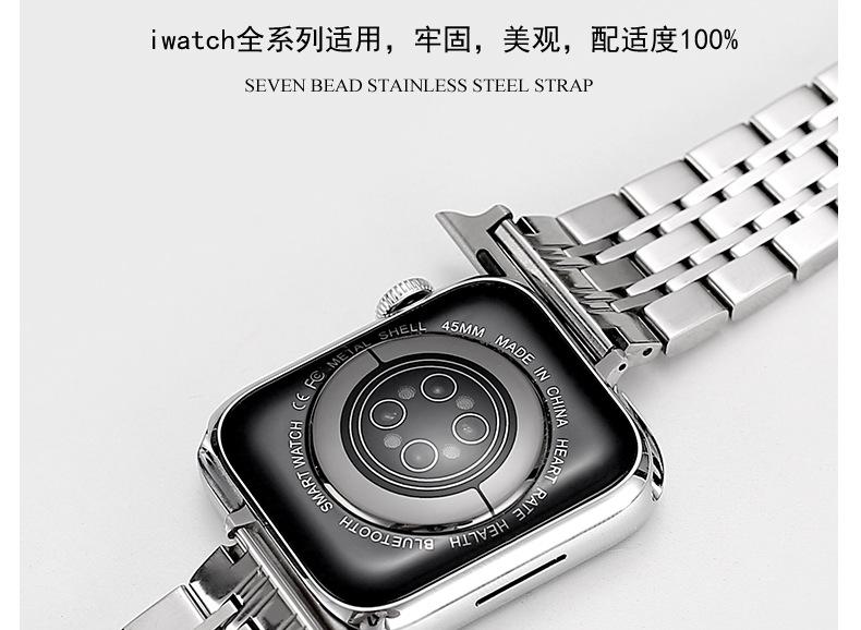 Correa para Apple iWatch, hebilla de mariposa de doble presión, correa sólida de acero inoxidable con siete cuentas.