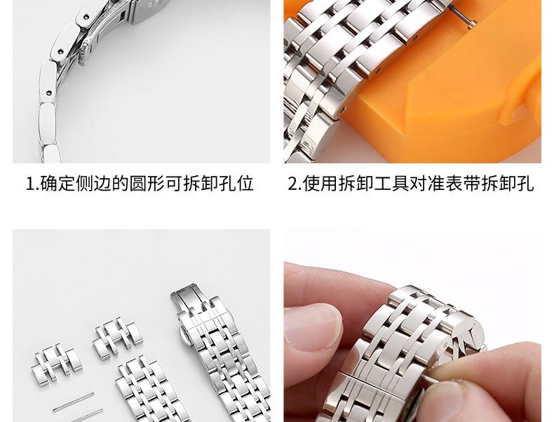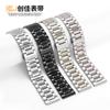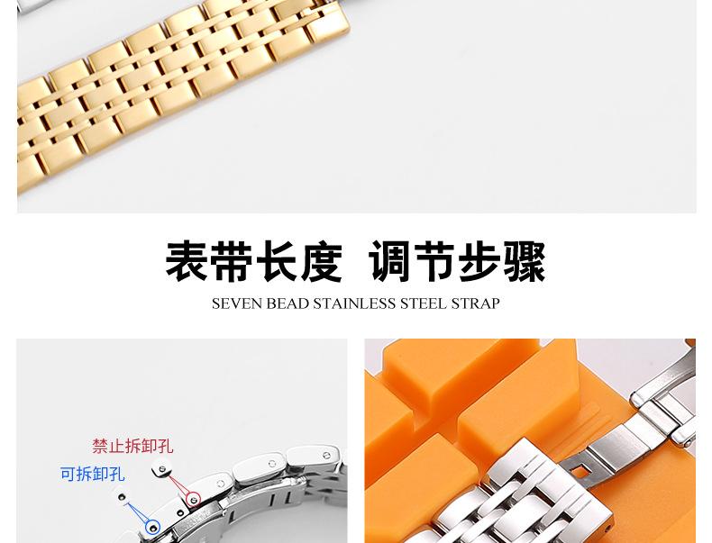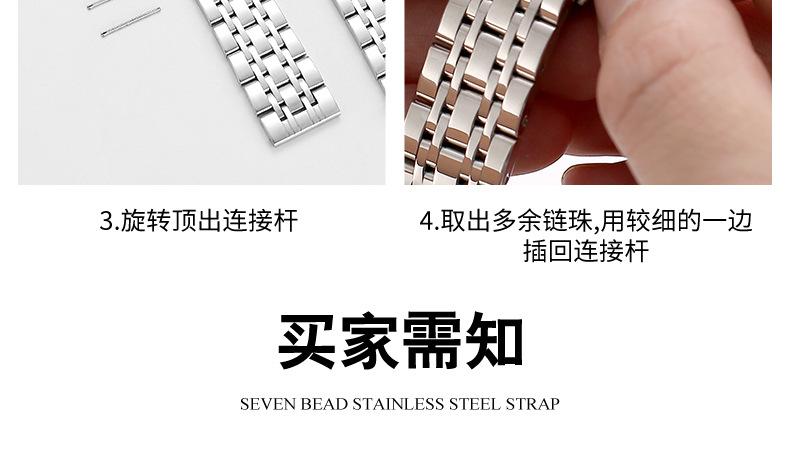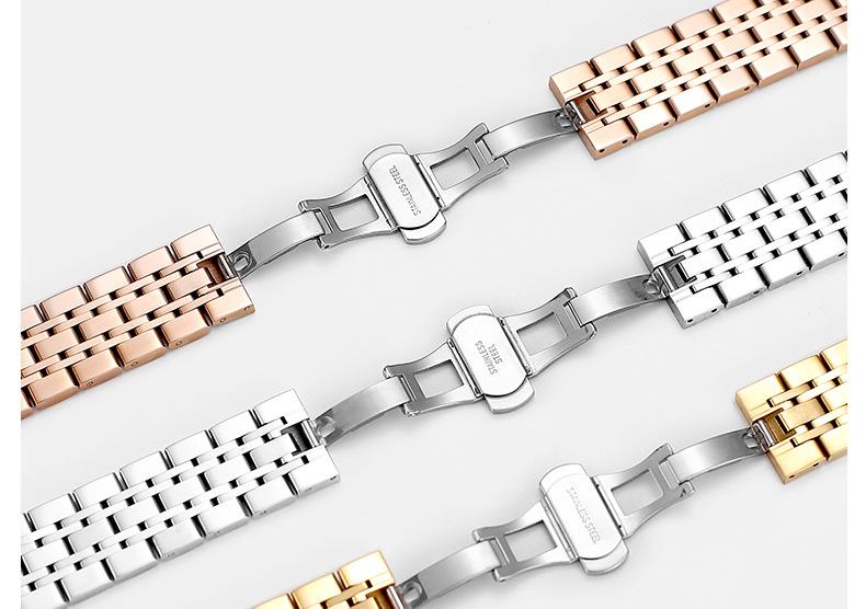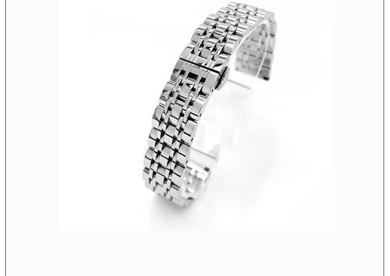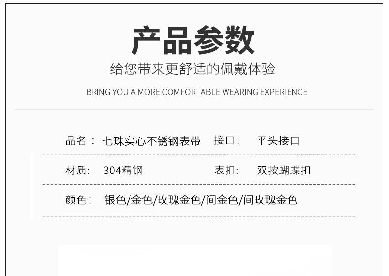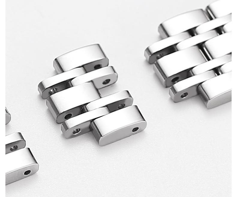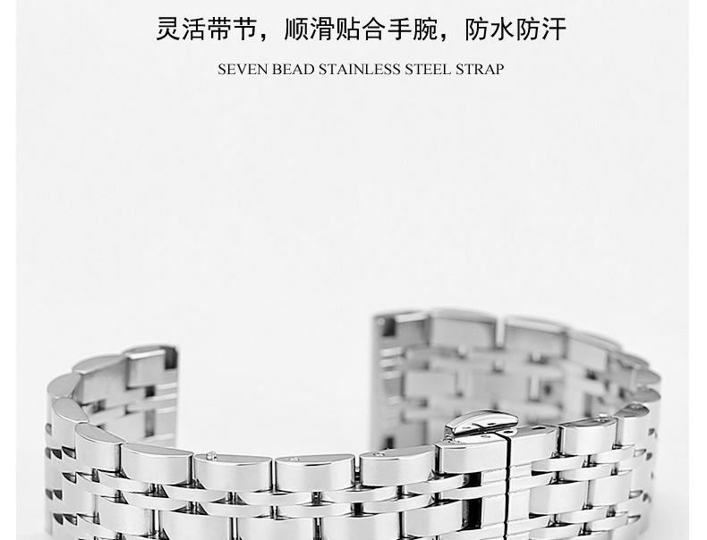 Correa para Apple iWatch, hebilla de mariposa de doble presión, correa sólida de acero inoxidable con siete cuentas.