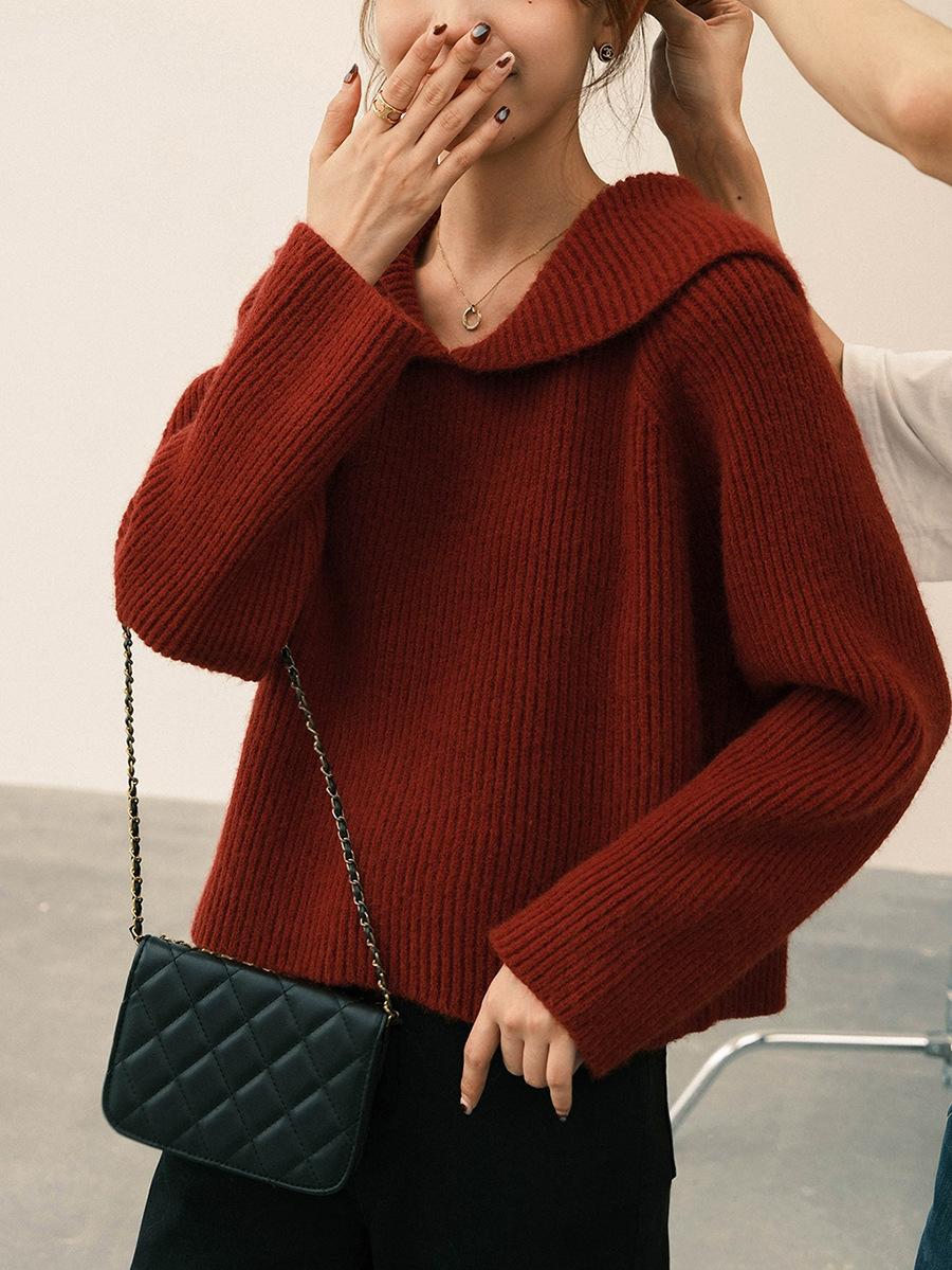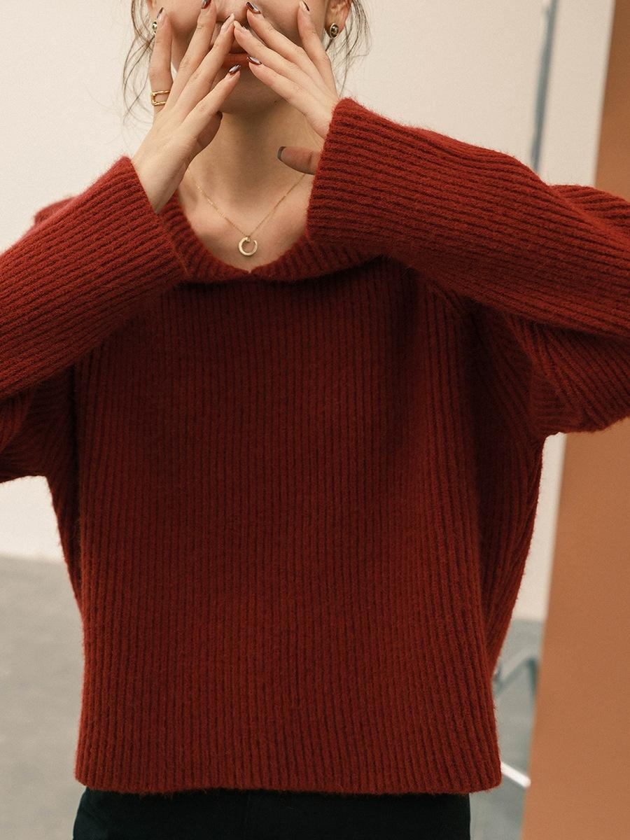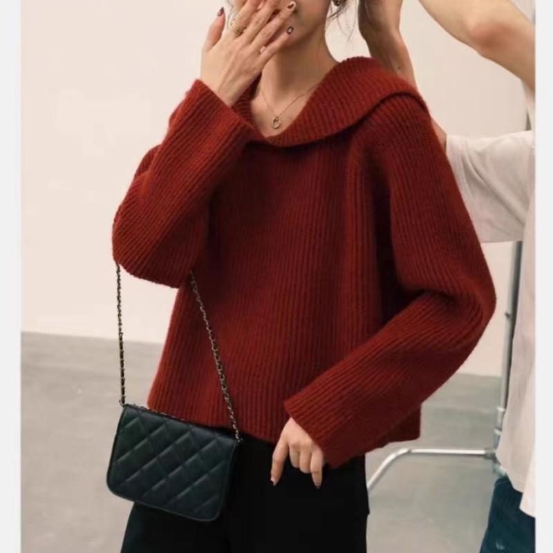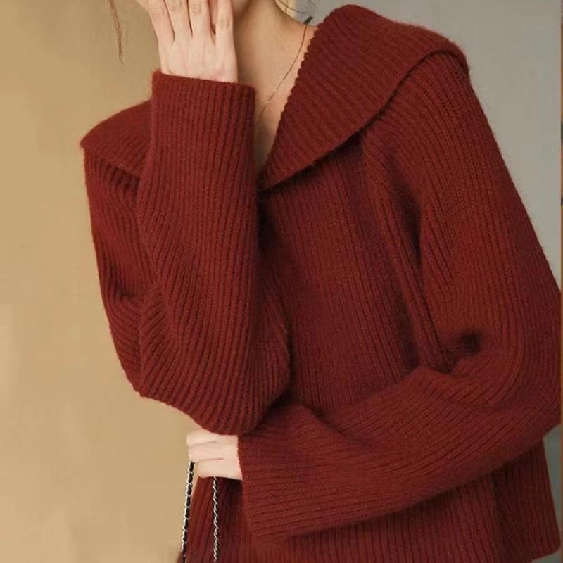 2025 Nuevo Estilo Otoño e Invierno Top de Punto Estilo Pequeño Perezoso Ropa Exterior Suelta Casual Moda Suéter Rojo para Mujer