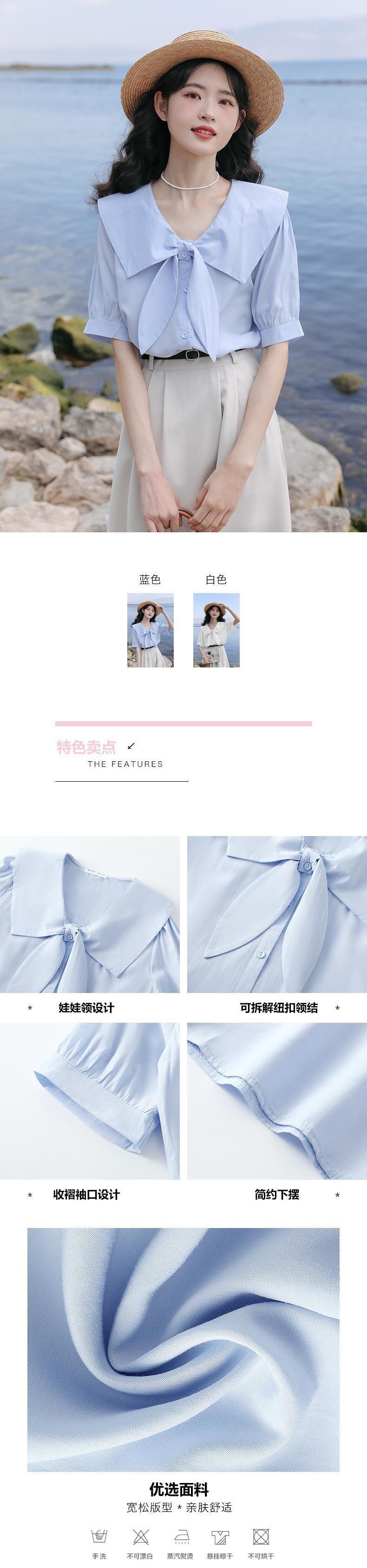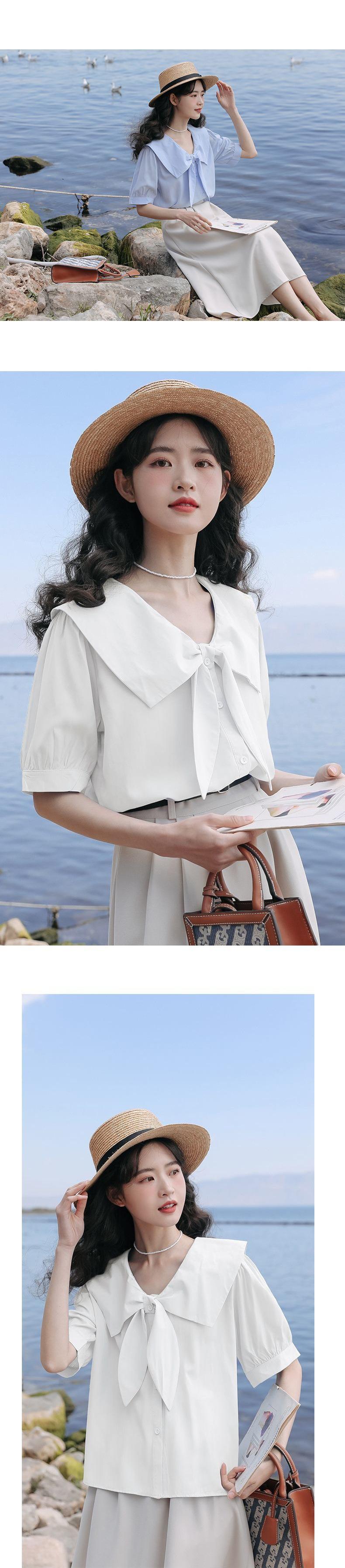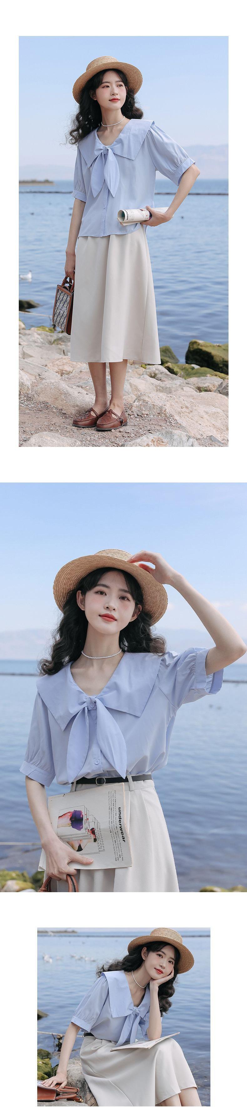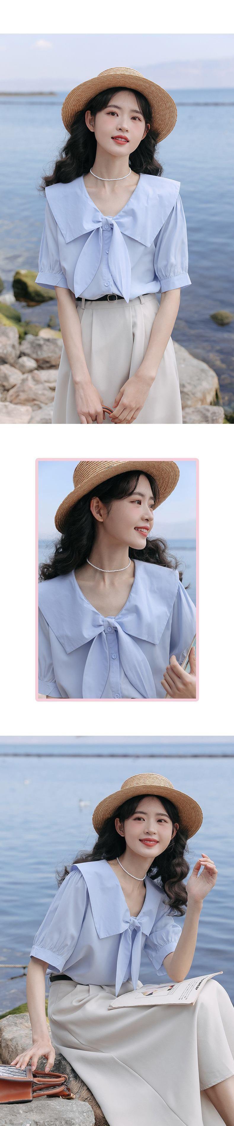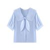 Camisa de Manga Corta para Mujer Verano Diseño Sensorial Nicho Camisa Azul Sensación de Alta Gama Lazo Francés Top Chic