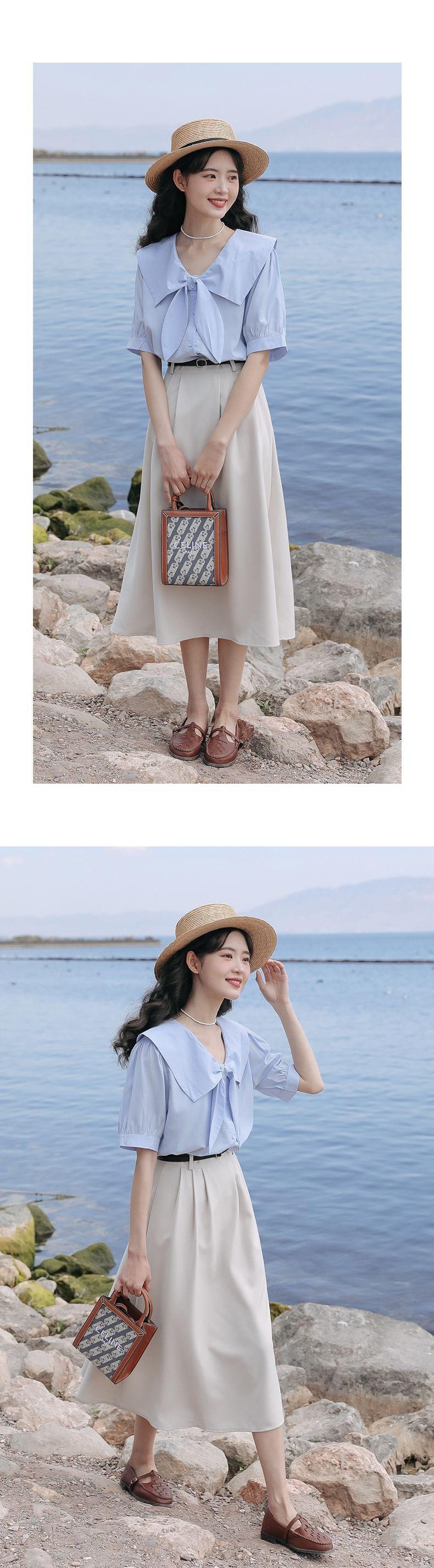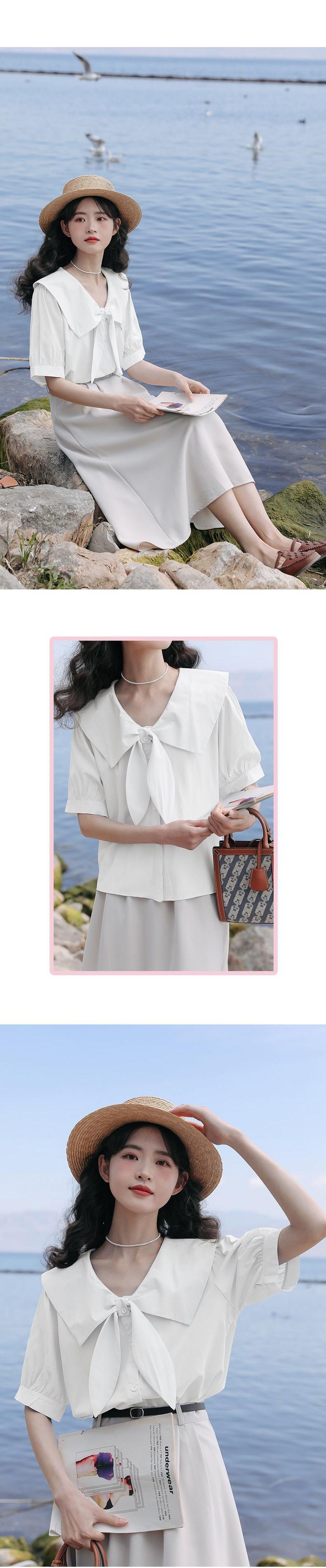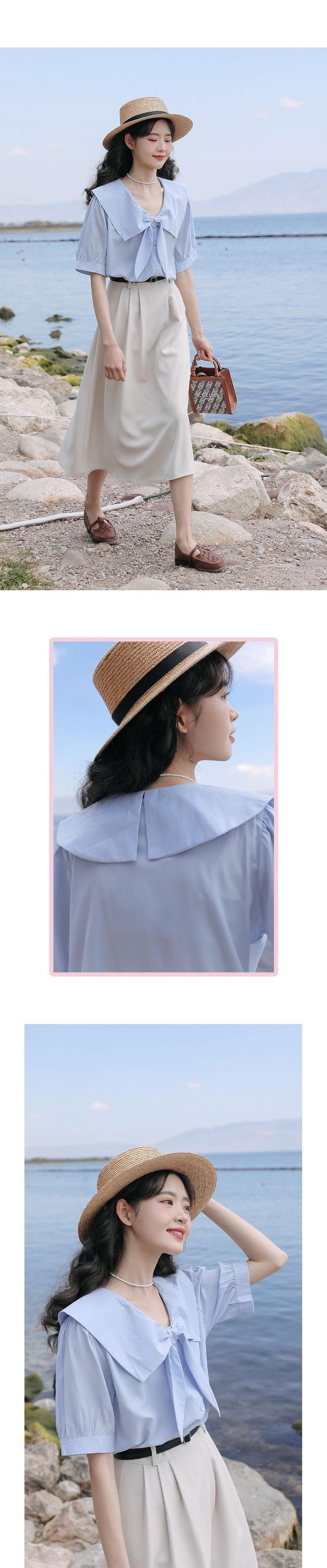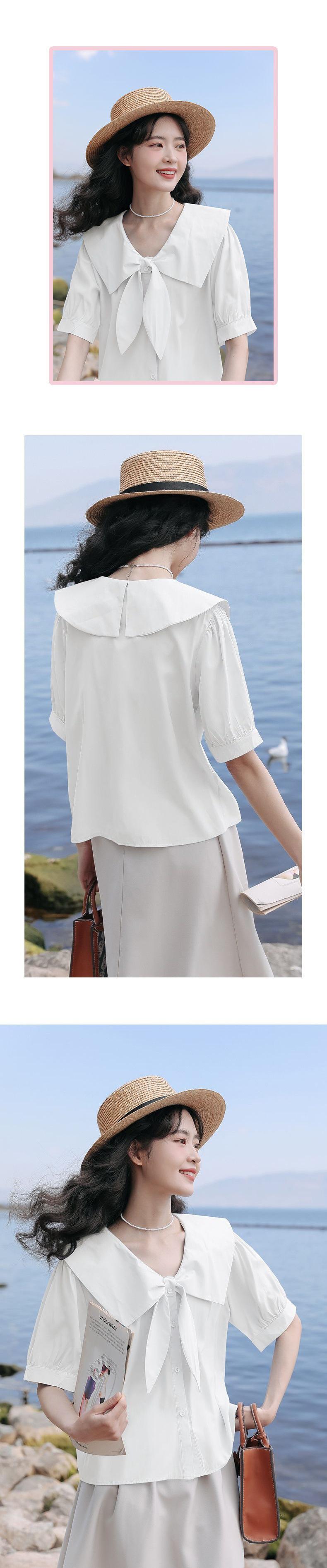 Camisa de Manga Corta para Mujer Verano Diseño Sensorial Nicho Camisa Azul Sensación de Alta Gama Lazo Francés Top Chic