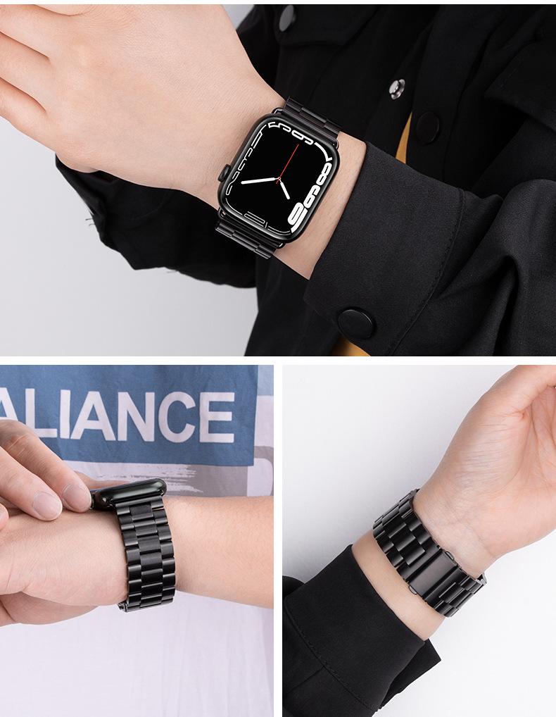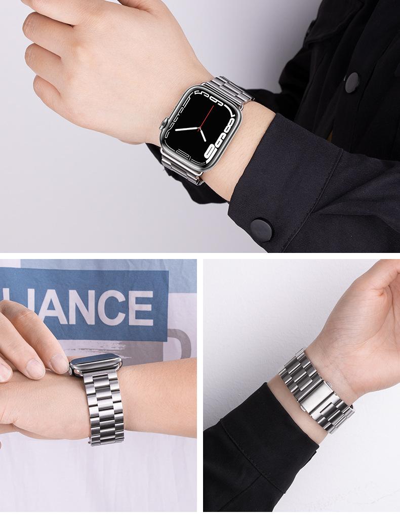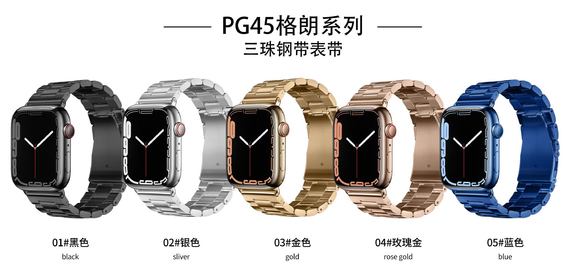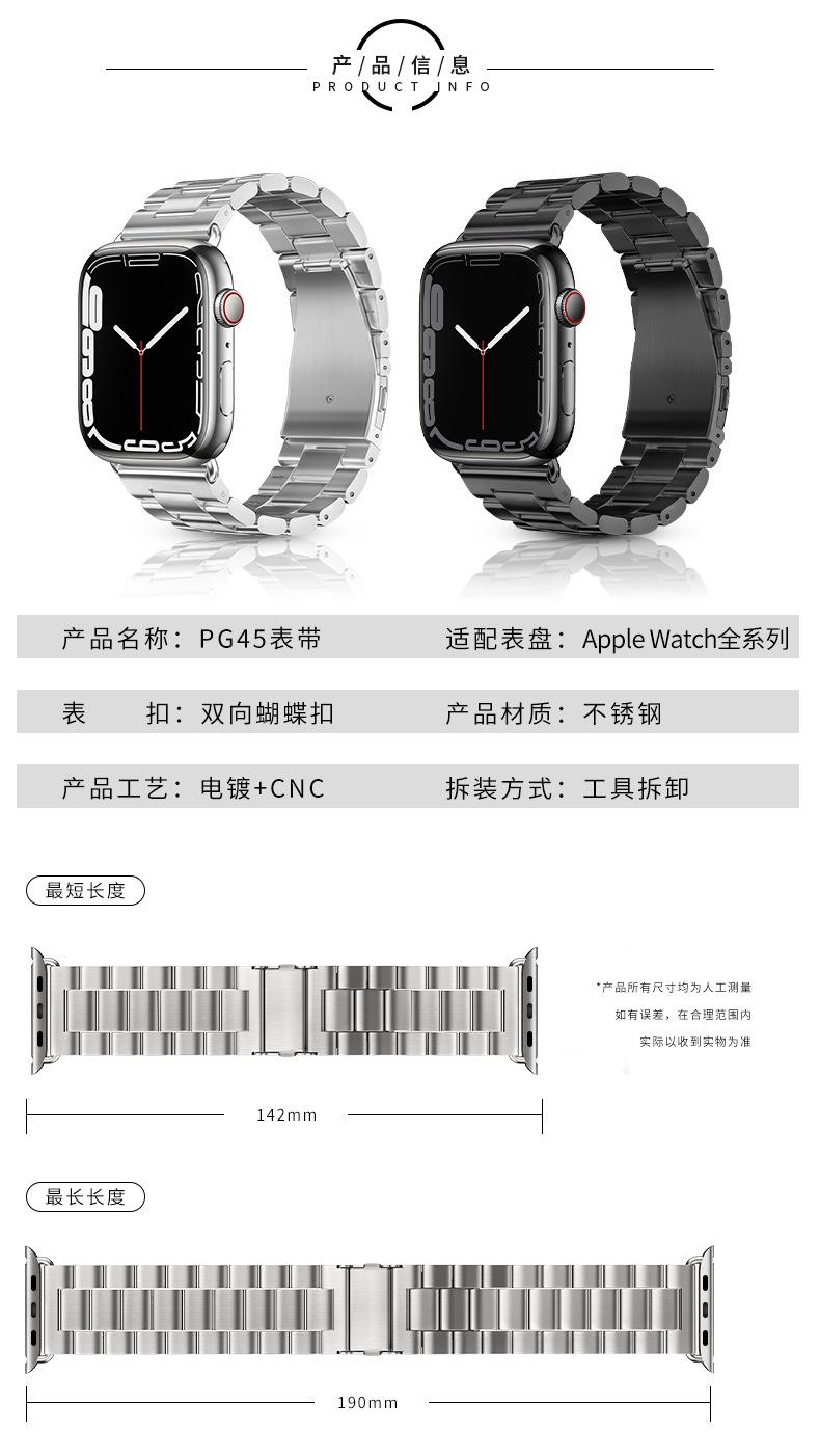 【PG45 Serie Grand Correa de Acero de Tres Eslabones】Compatible con Apple Watch Series 10/SE/9/8/7/6/5/4/3/2/1 38mm/40mm/41mm/42mm/44mm/45mm】