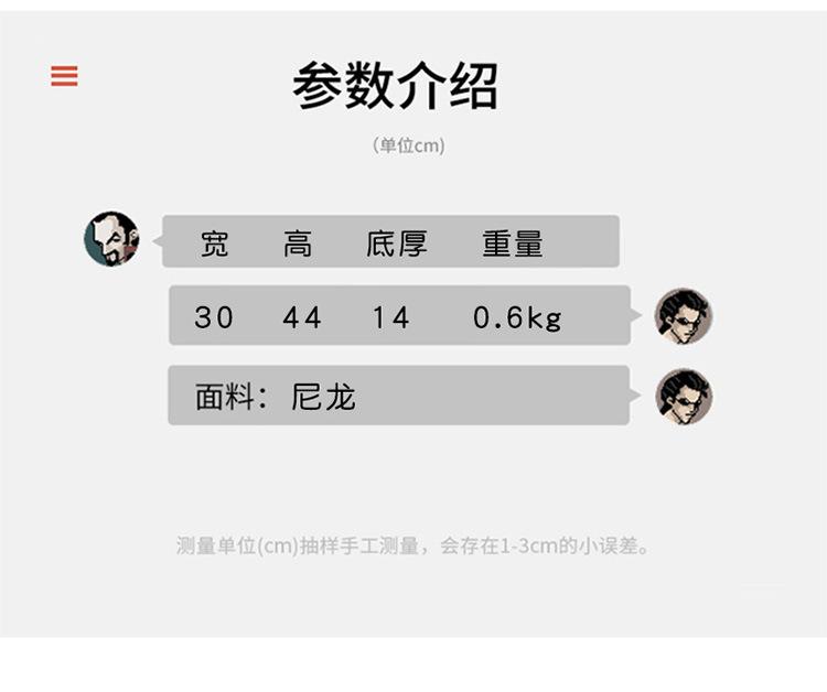 Los precios de los productos vendidos en esta tienda son cotizaciones sin impuestos. Si necesita una factura, póngase en contacto con el servicio de atención al cliente. Los precios de todos los productos de esta tienda no incluyen colgantes. Si necesita colgantes, contacte con atención al cliente.La Fábrica de Bolsos Gaobeidian Sizhuang Tengyun es una empresa especializada en la producción, procesamiento y venta de mochilas, bolsos para mujer, bolsos de hombro y otros productos. Podemos procesar muestras y personalizar logotipos. Invitamos a amigos de todo tipo a visitarnos, orientarnos y negociar. Normalmente, los pedidos antes de las 15:00 se envían el mismo día. Los pedidos después de las 15:00 se envían al día siguiente.。