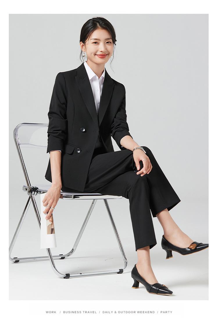 Chaqueta de traje negro cruzado para mujer, traje profesional, ropa de trabajo para gerente, traje formal para entrevista de funcionario público