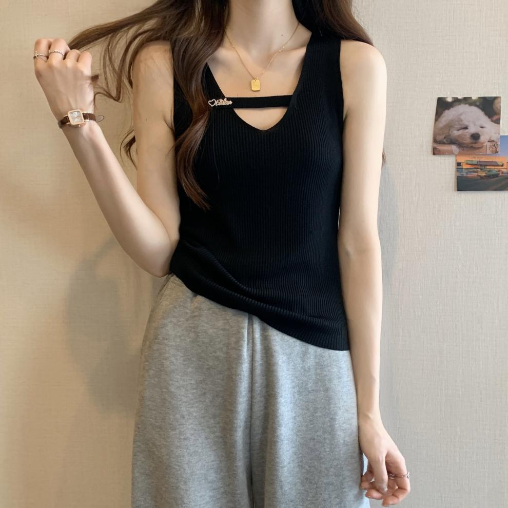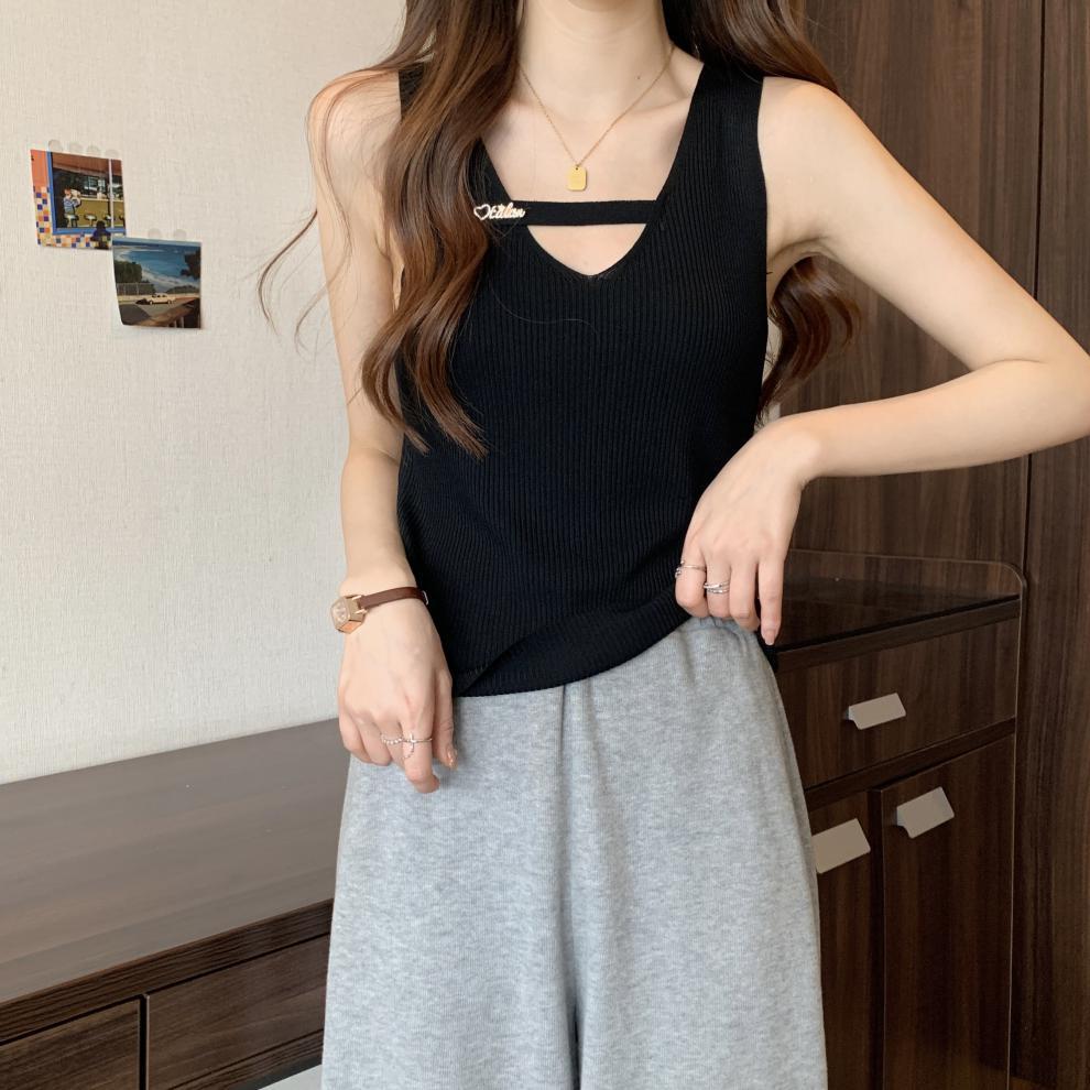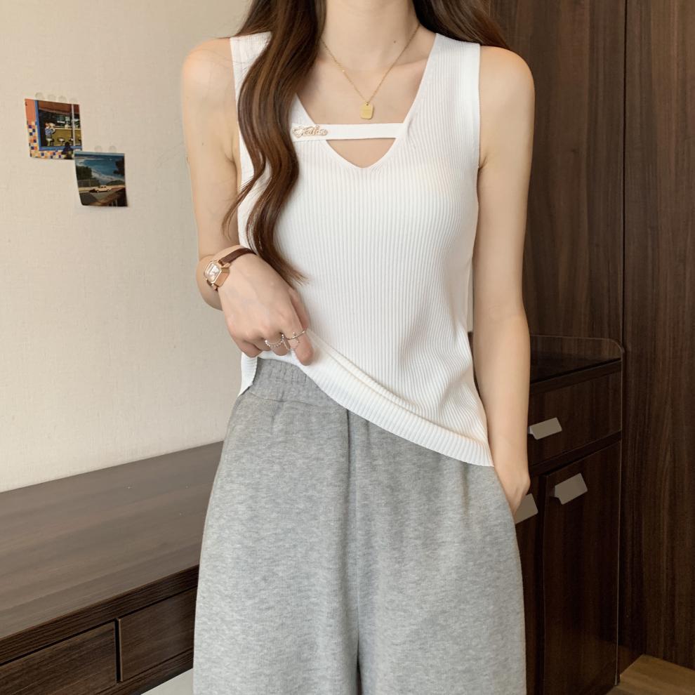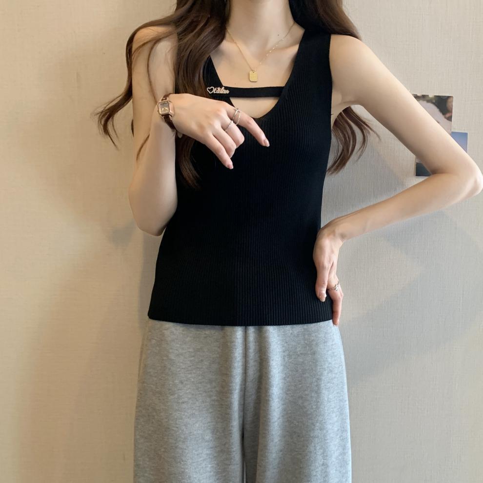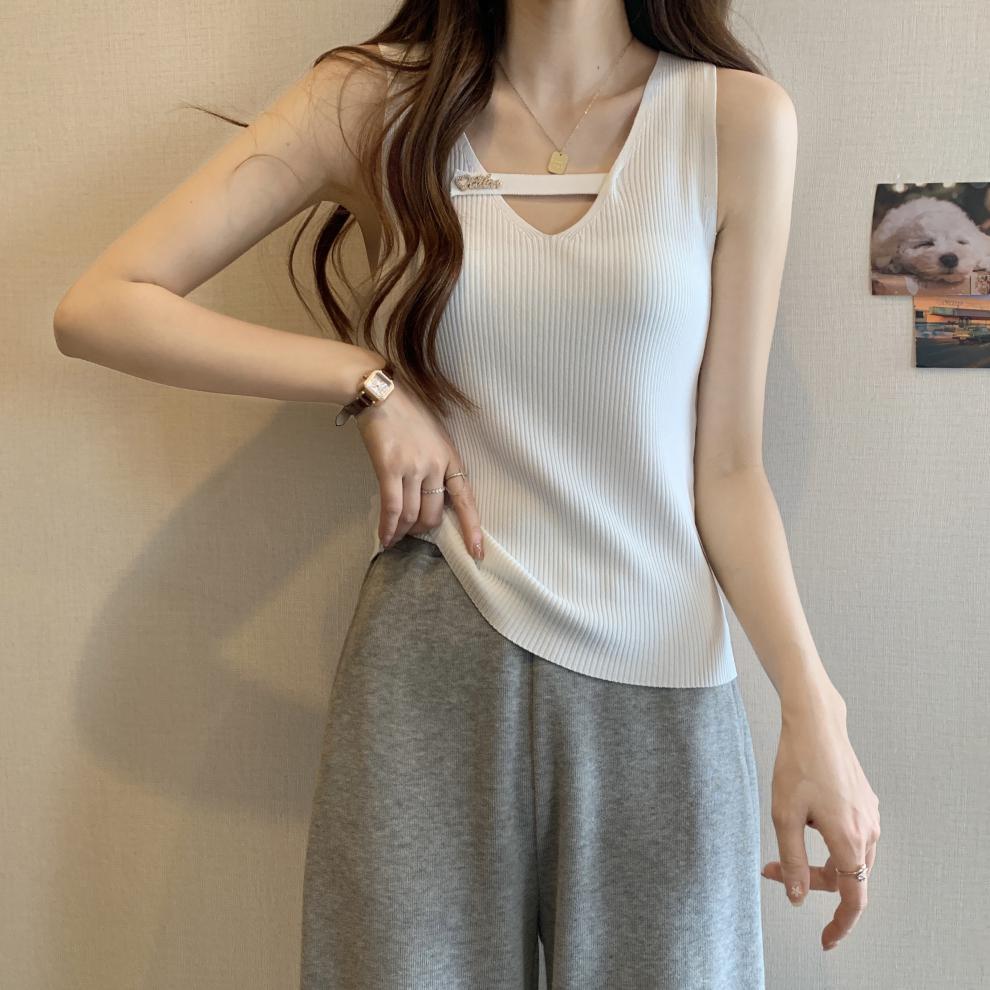 Chaleco Interior de Punto de Seda de Hielo para Mujer 2024 Verano Nuevo Fat mm Suelto Tirantes Camiseta sin Mangas Top