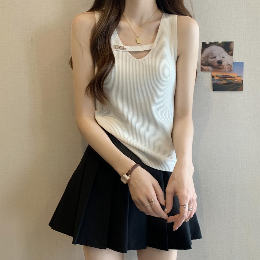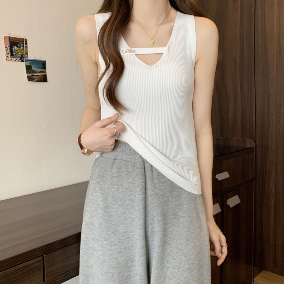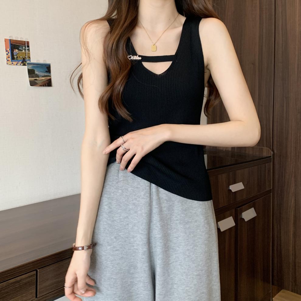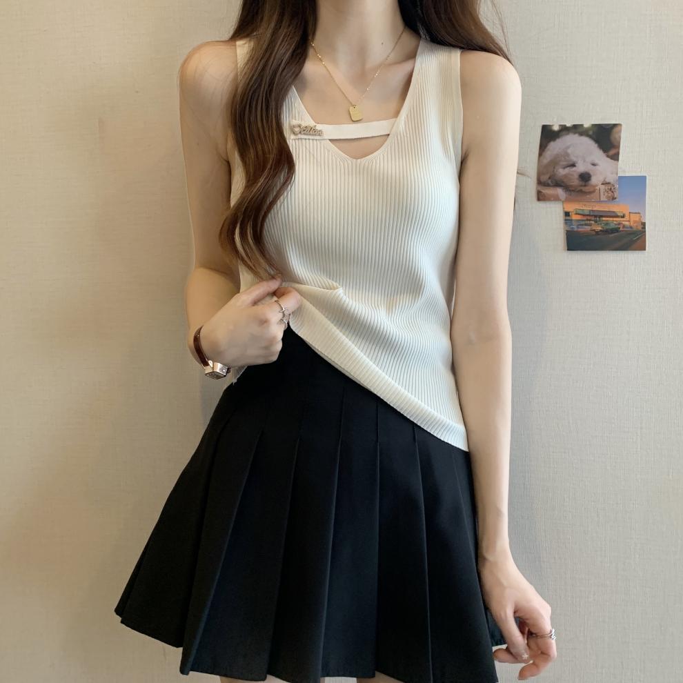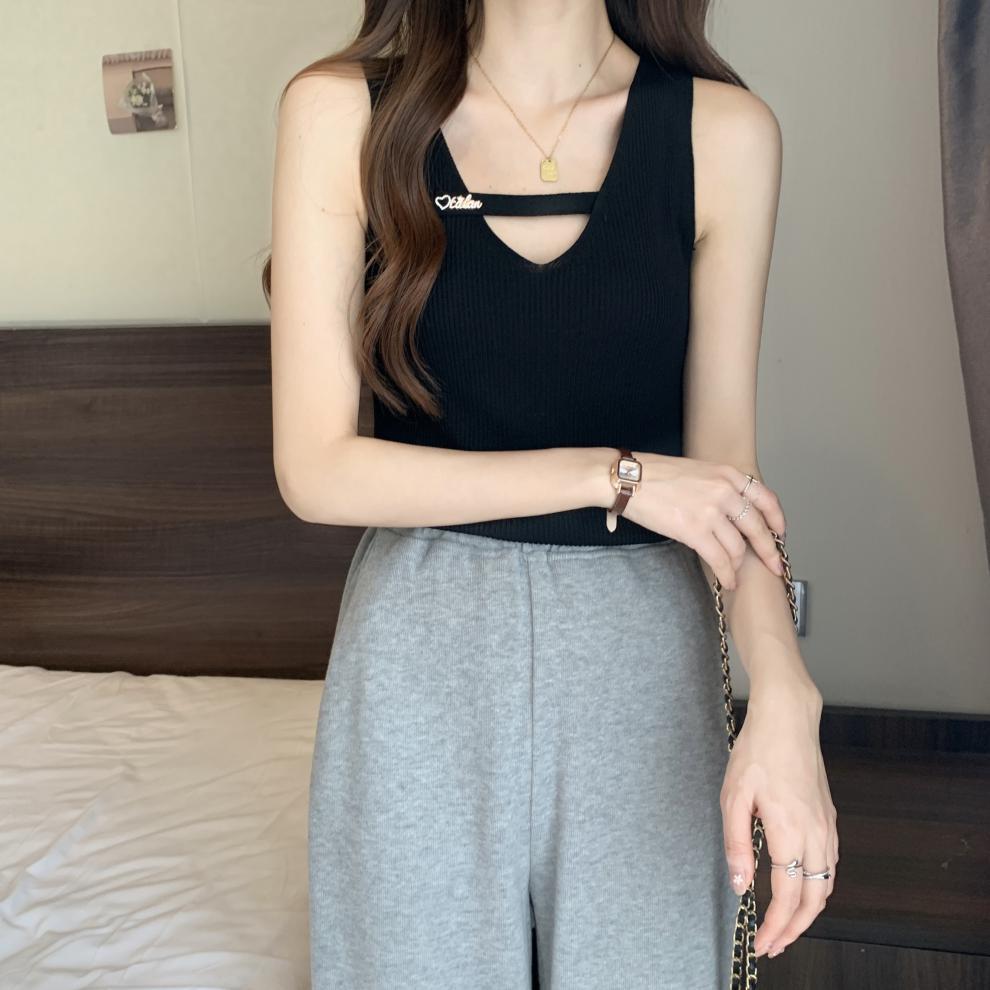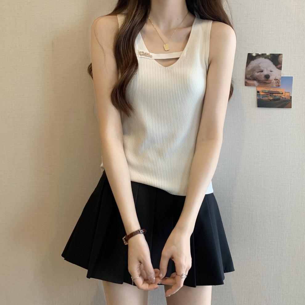 Chaleco Interior de Punto de Seda de Hielo para Mujer 2024 Verano Nuevo Fat mm Suelto Tirantes Camiseta sin Mangas Top