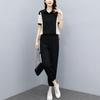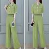 Traje de moda blanco para mujer, informal, de manga corta, elegante, top, pantalones de verano a la moda, conjunto de dos piezas