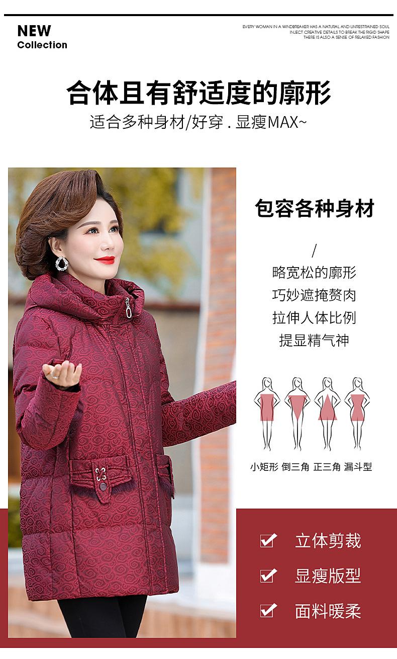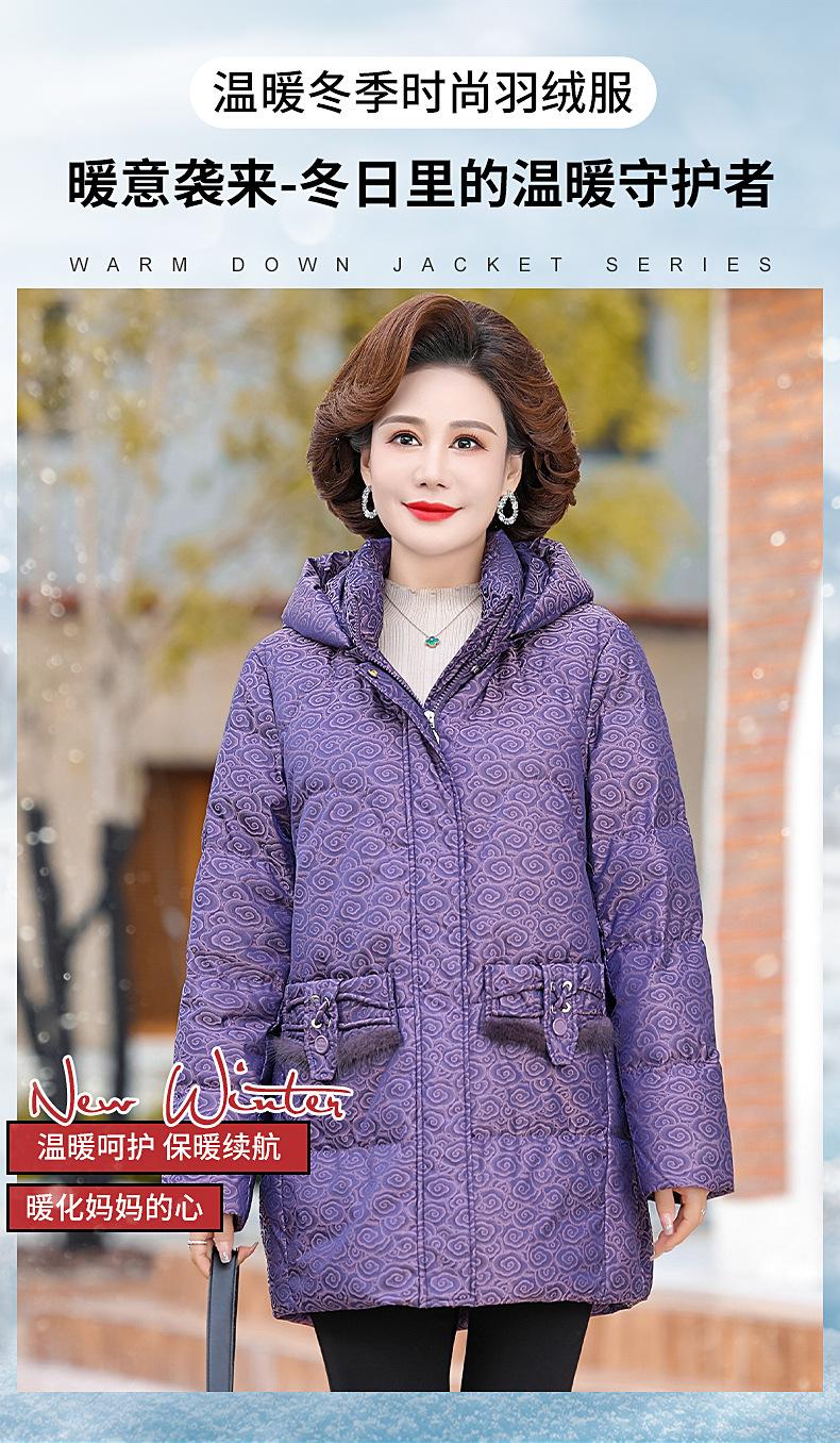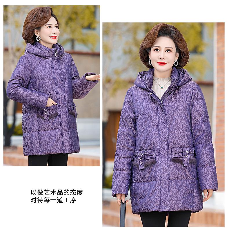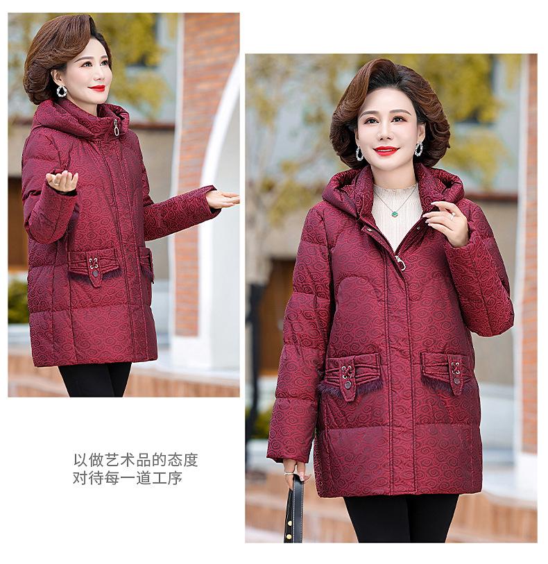 Chaqueta de plumón para mujer de mediana edad y anciana, abrigo de plumón de pato de estilo noble y occidental para nueva madre, otoño e invierno 2024, abrigo cálido acolchado de algodón