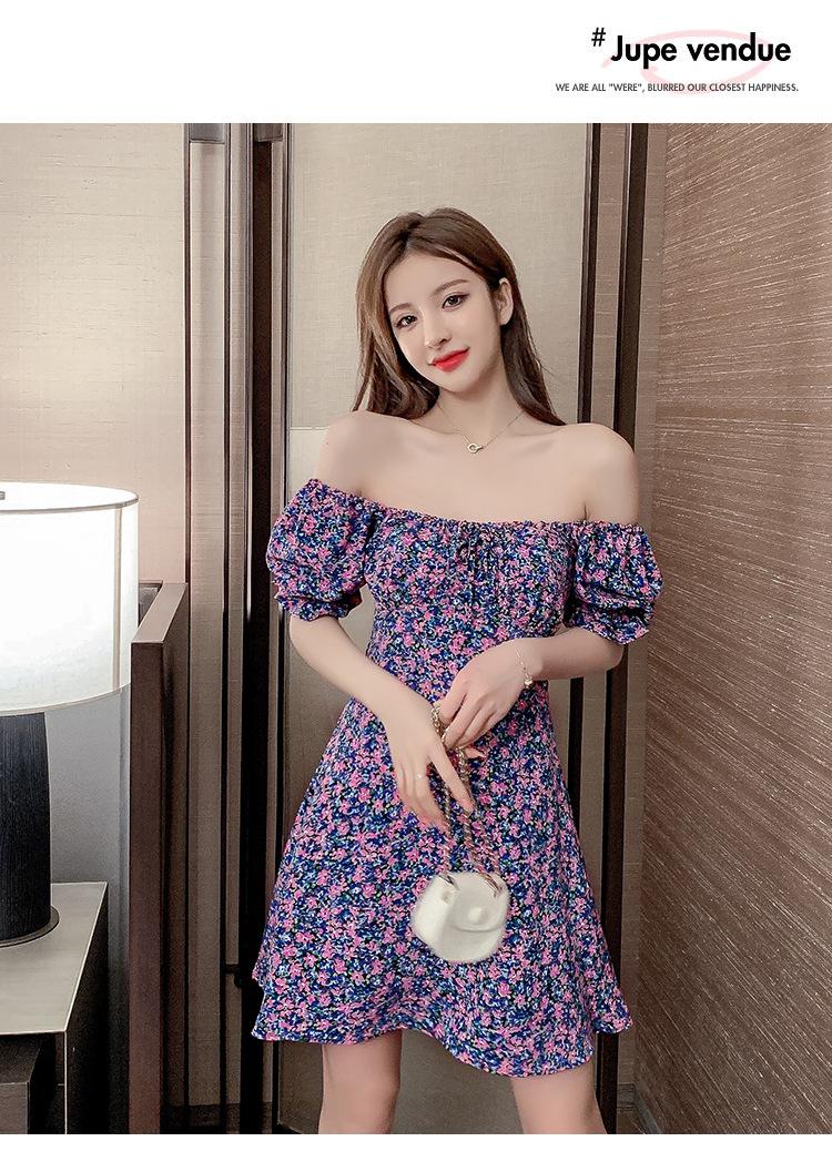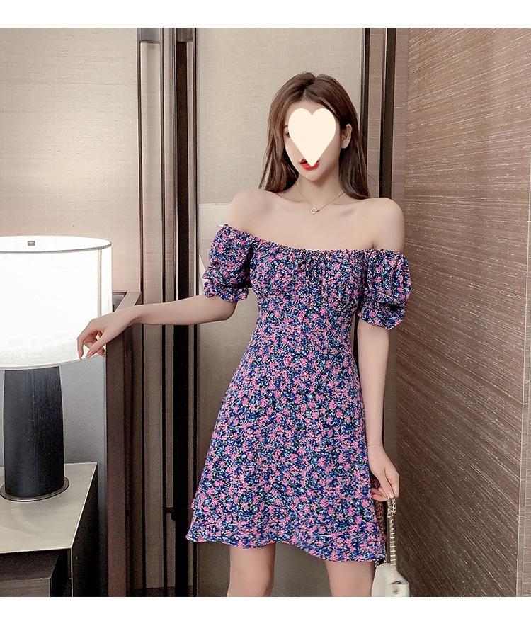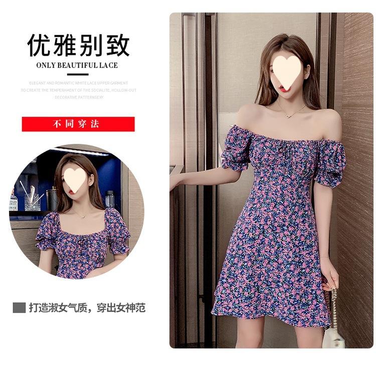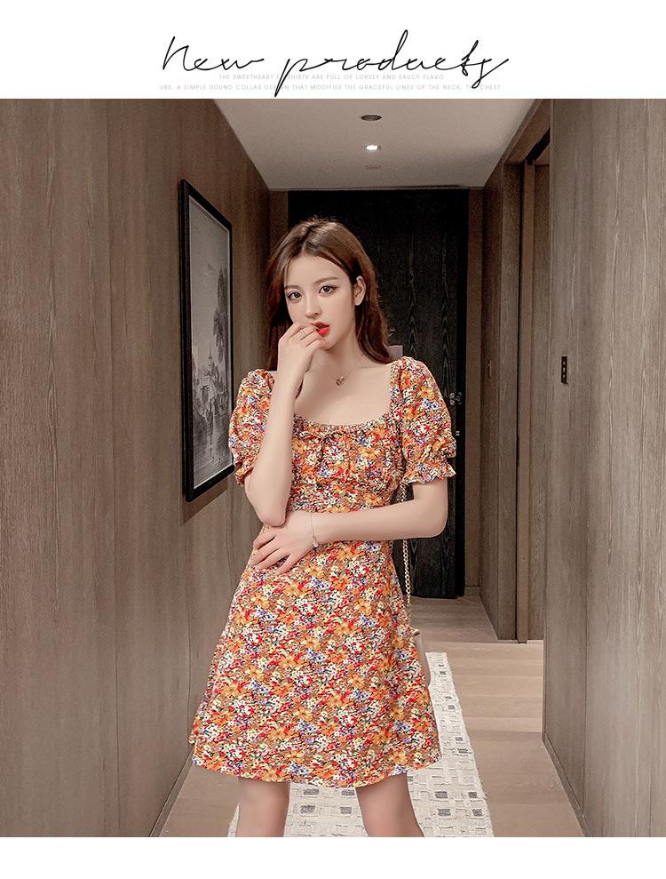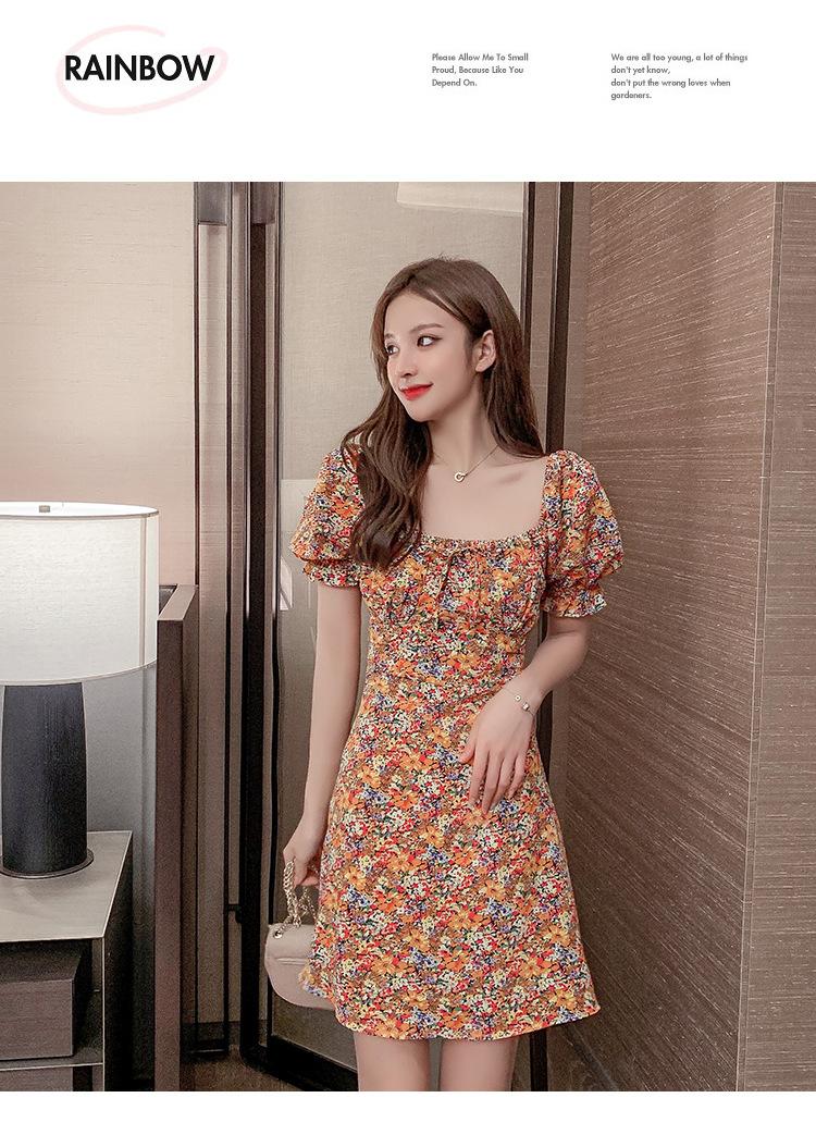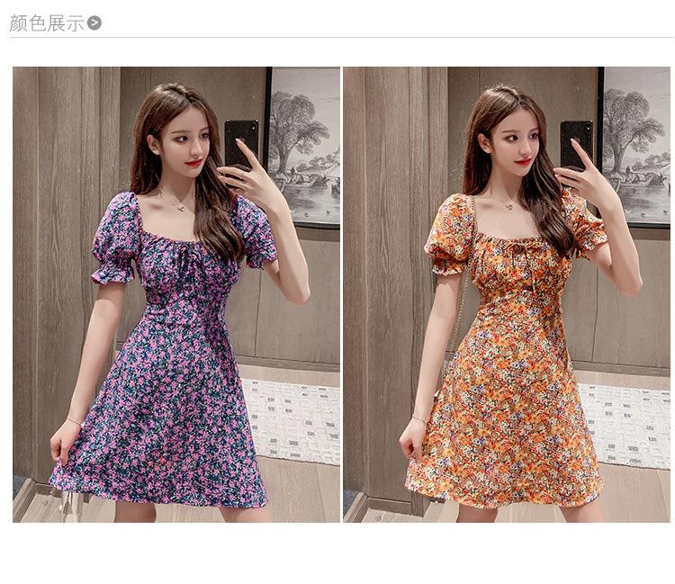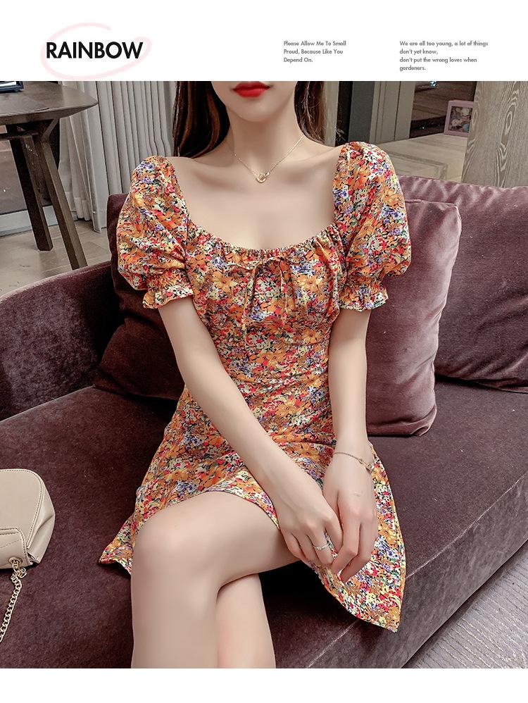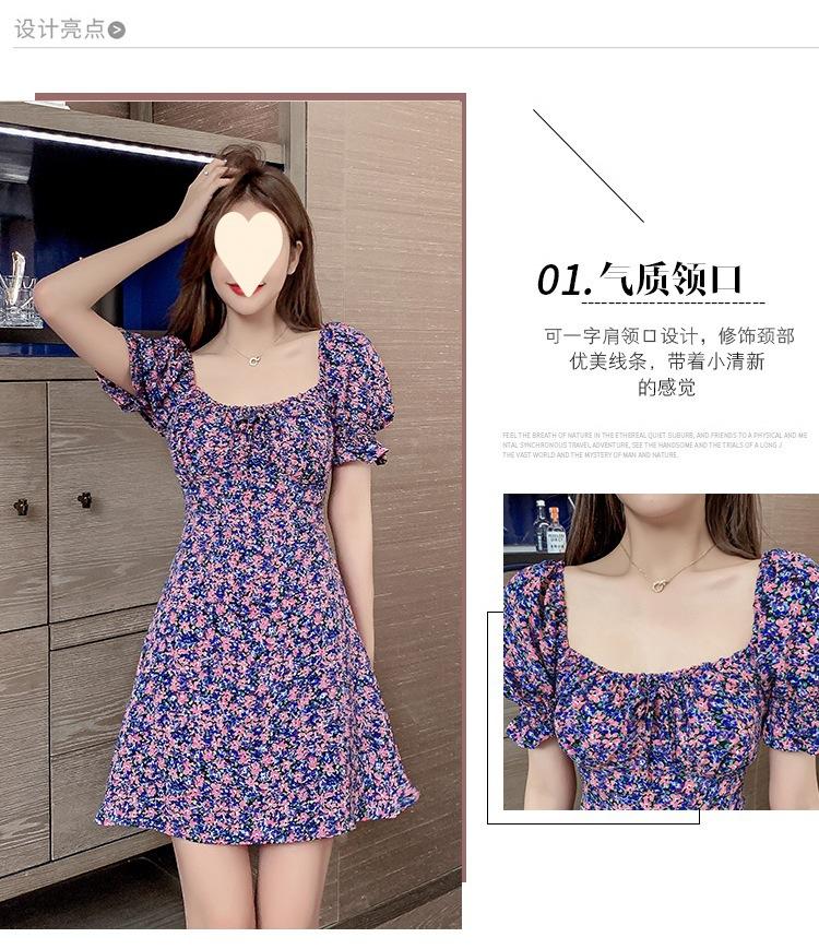 Vestido de Moda Talla Grande para Mujer Verano Nuevo Estilo Retro Francés Cuello Cuadrado Cubre Vientre Adelgazante Manga Corta Abullonada Falda Floral