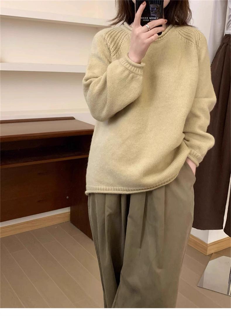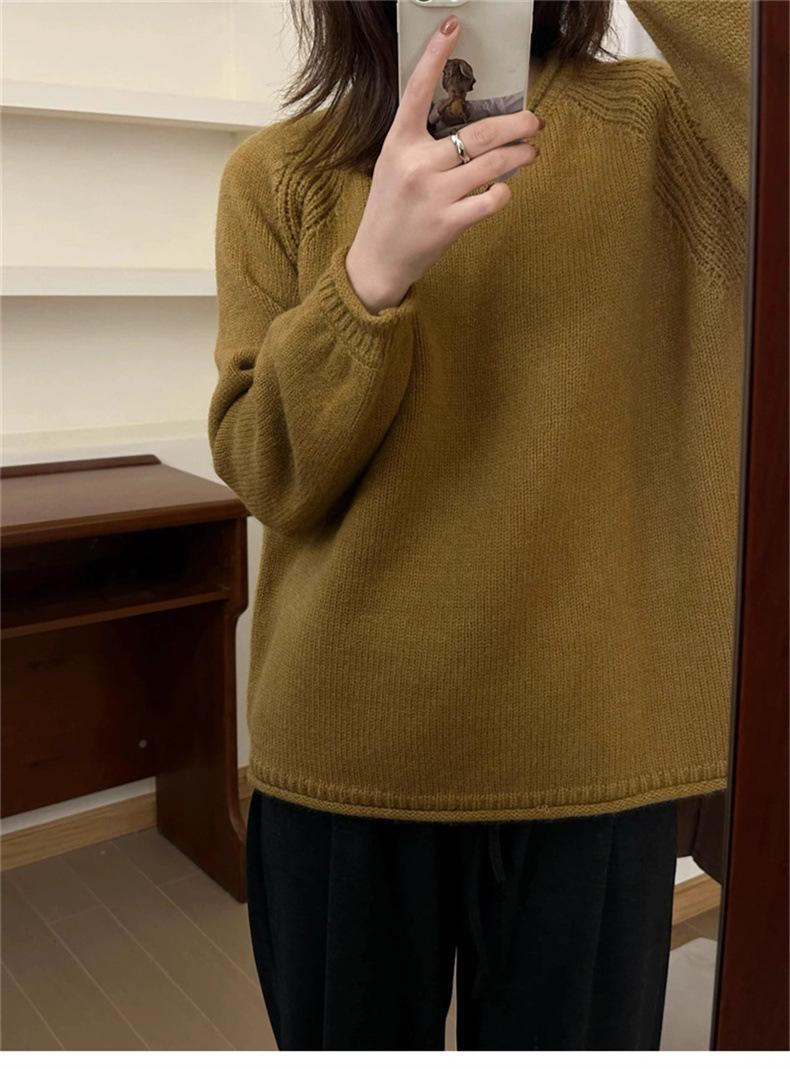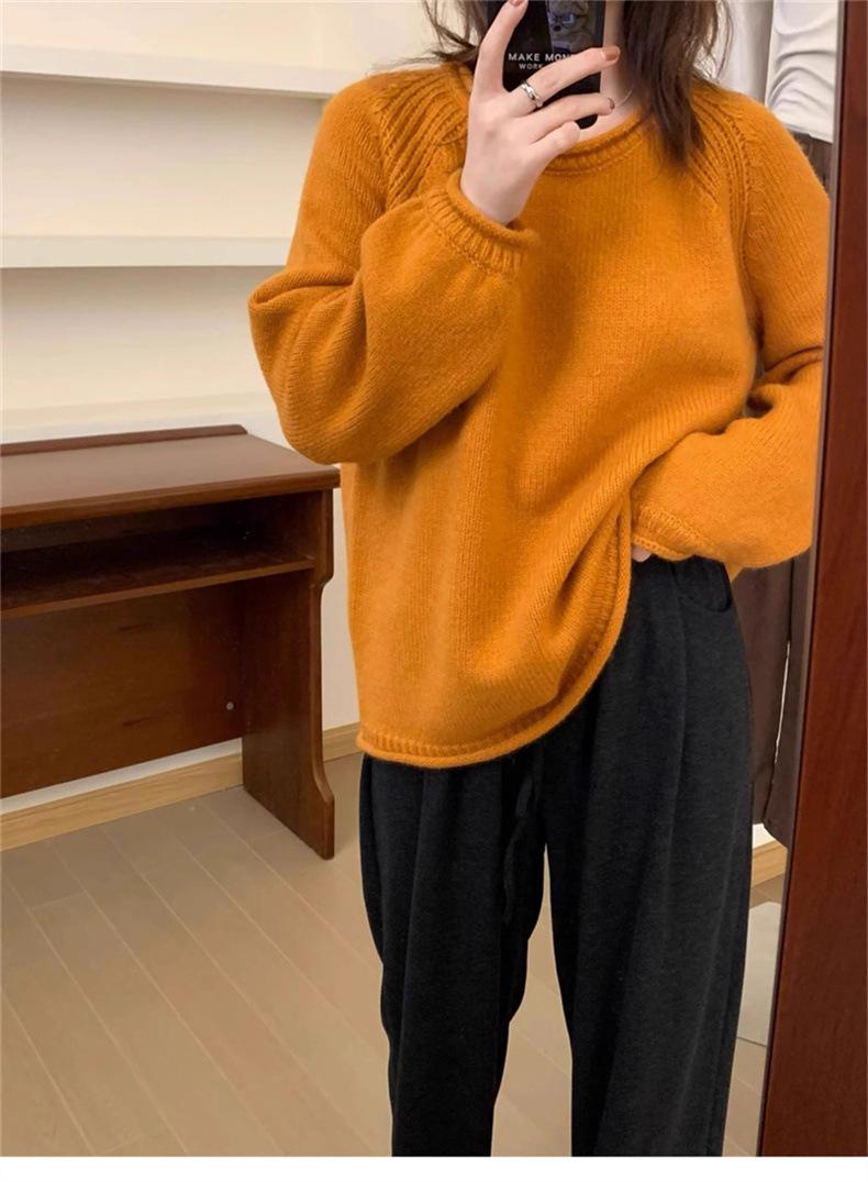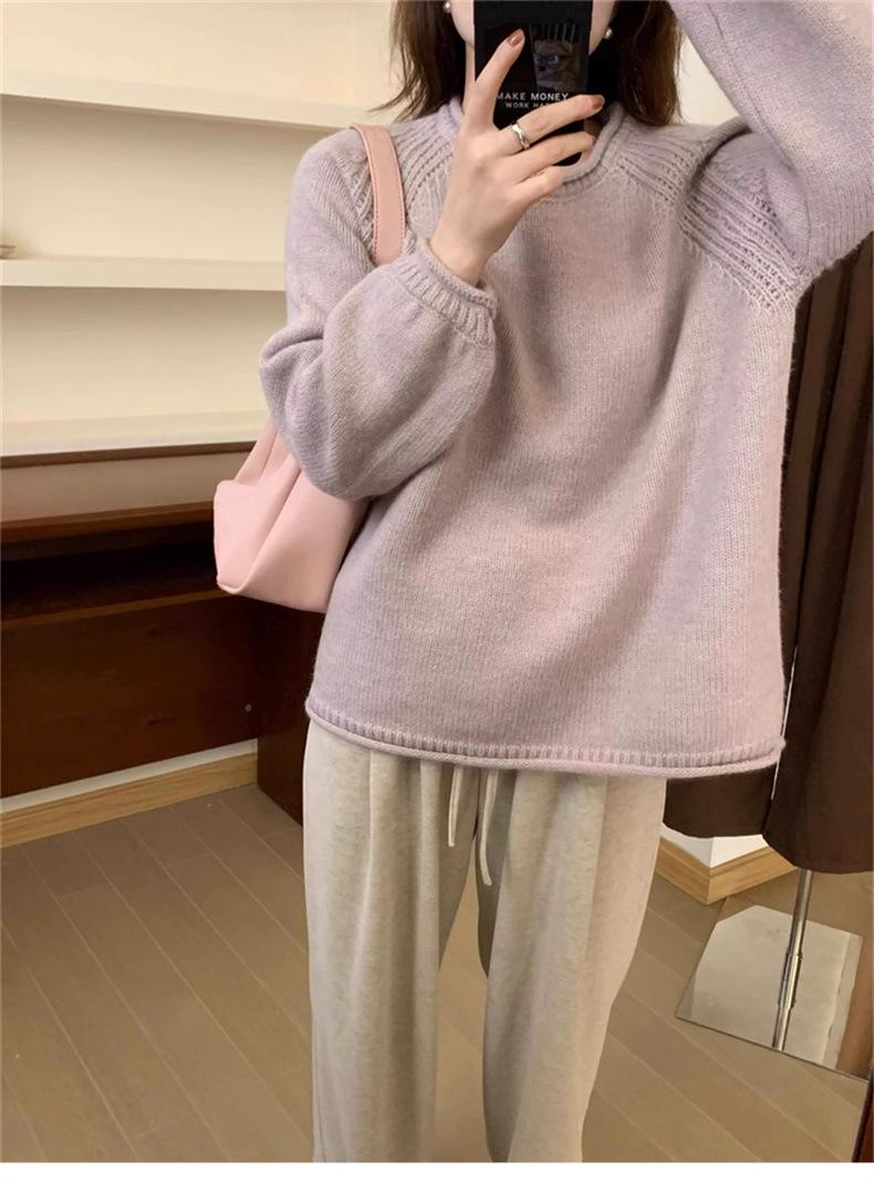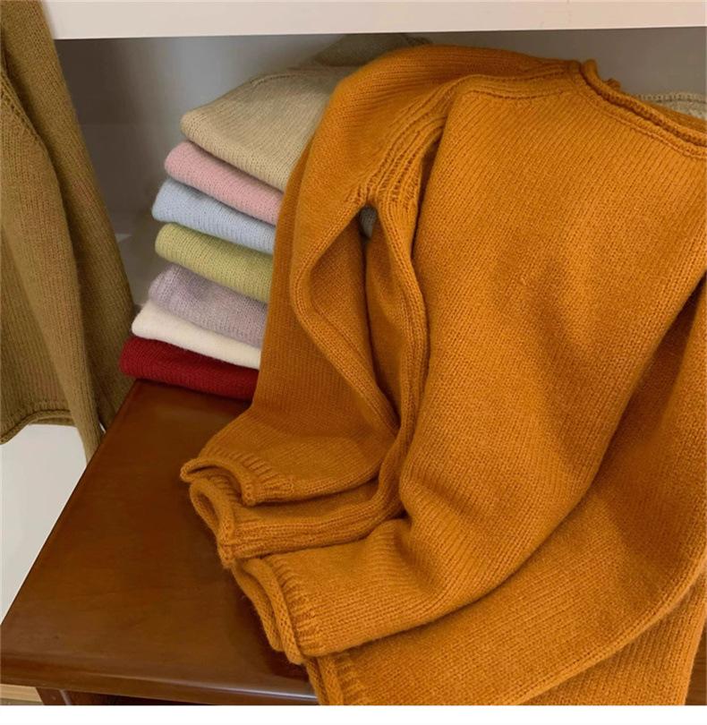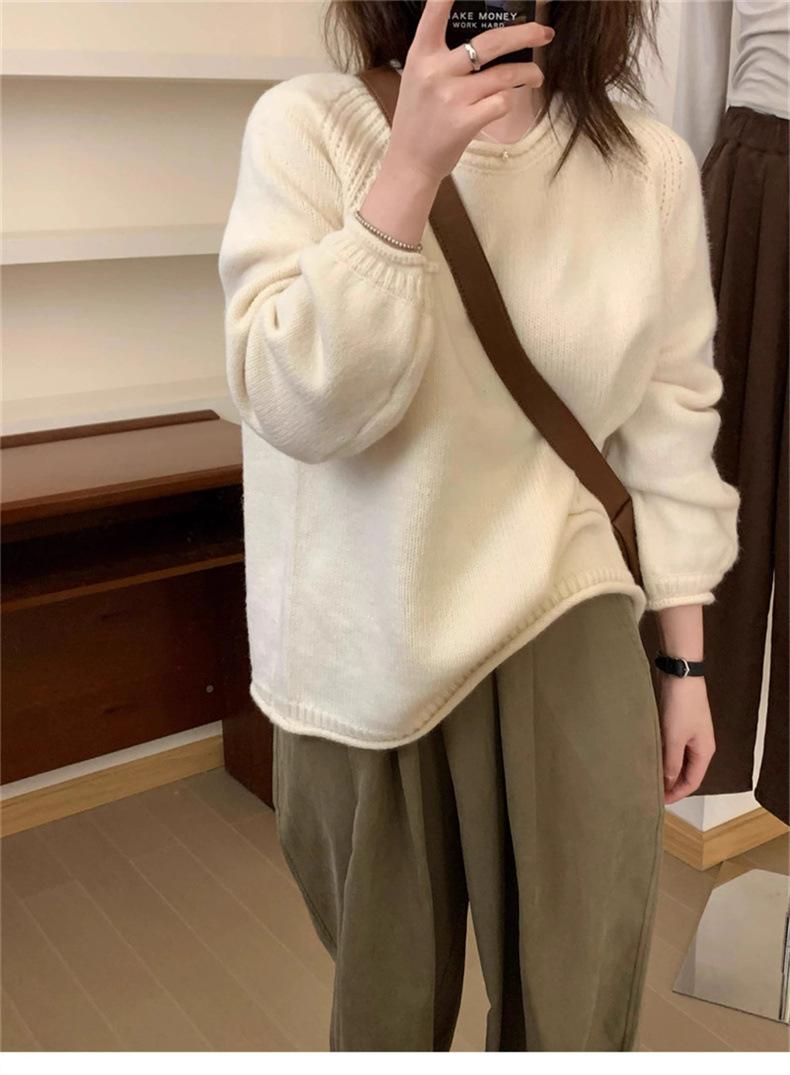 Suéter de Punto de Color Puro Estilo Francés para Mujer Nuevo Otoño e Invierno Estilo Holgado Perezoso Casual Top Interior para Mujer