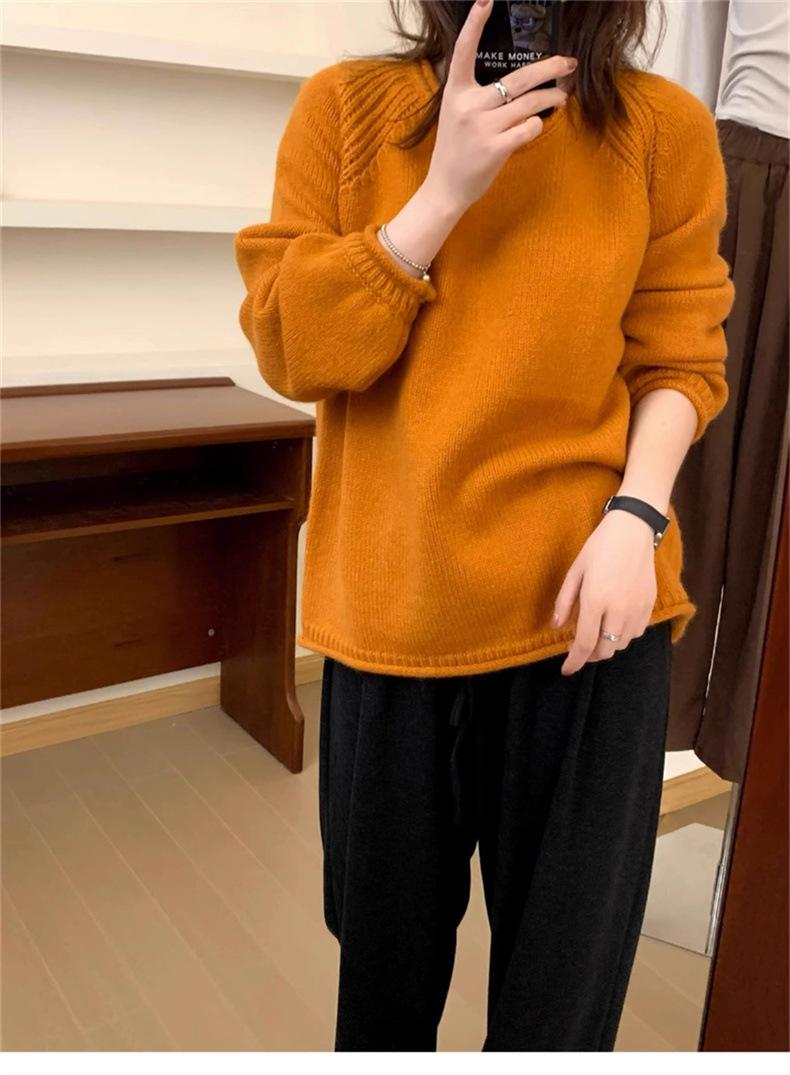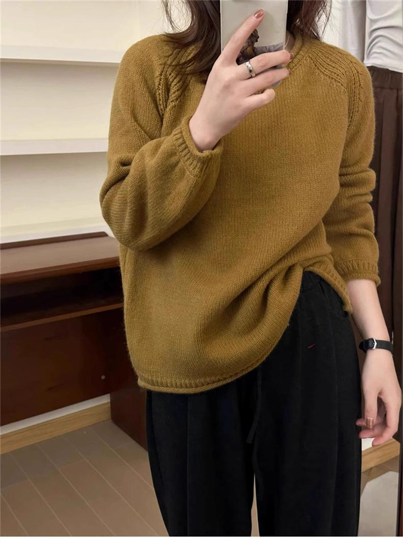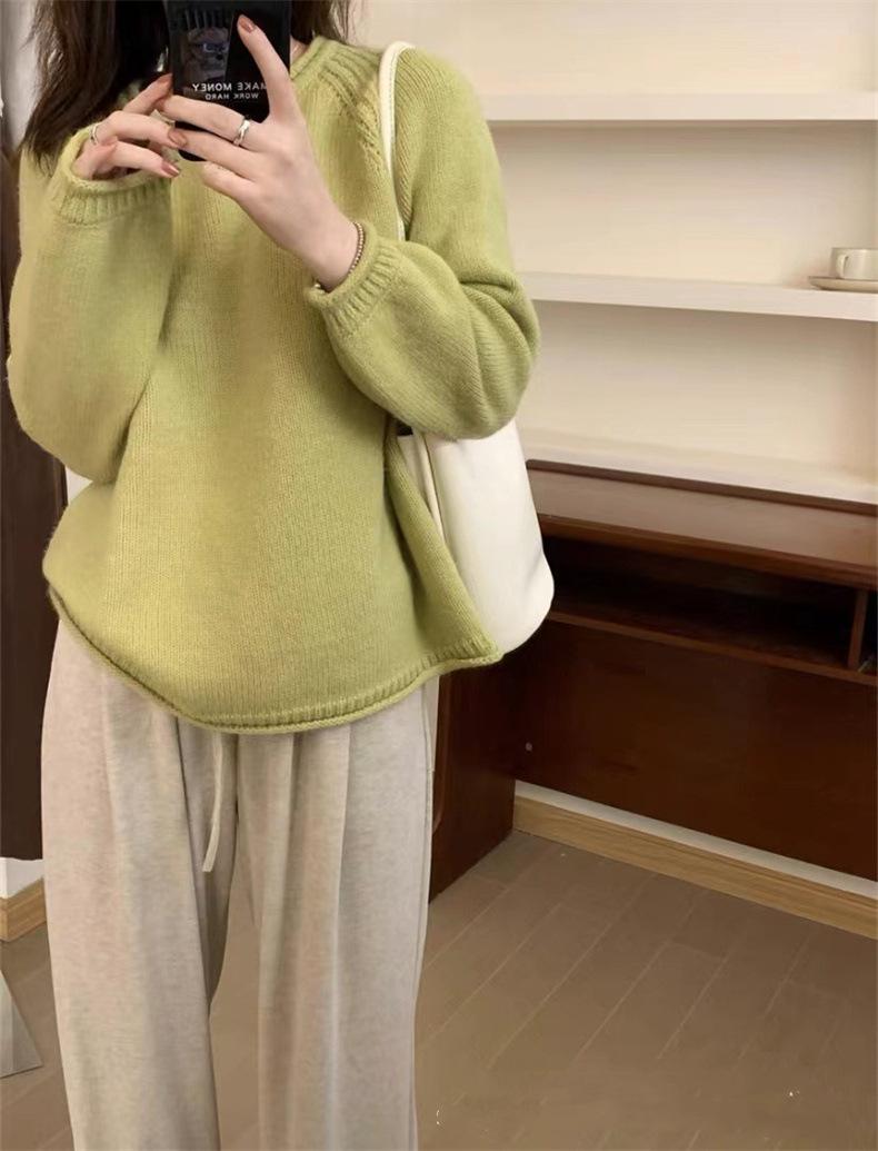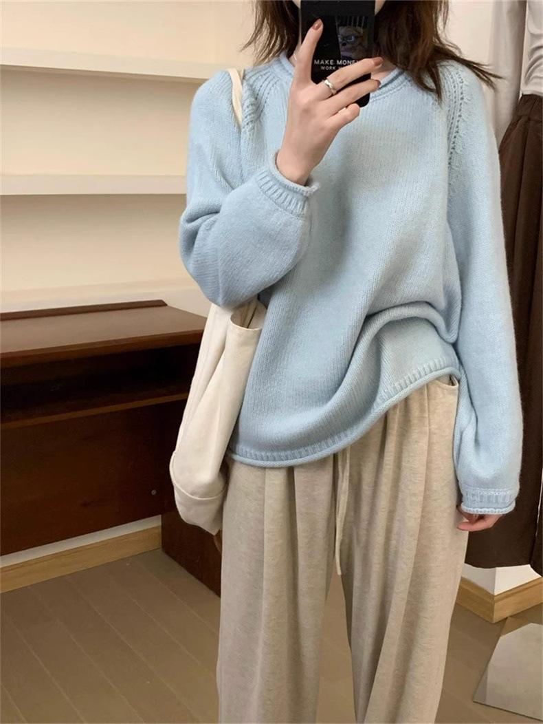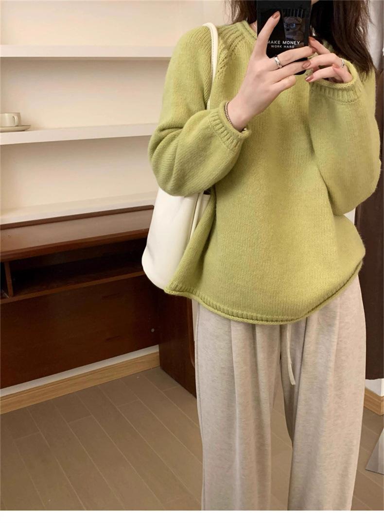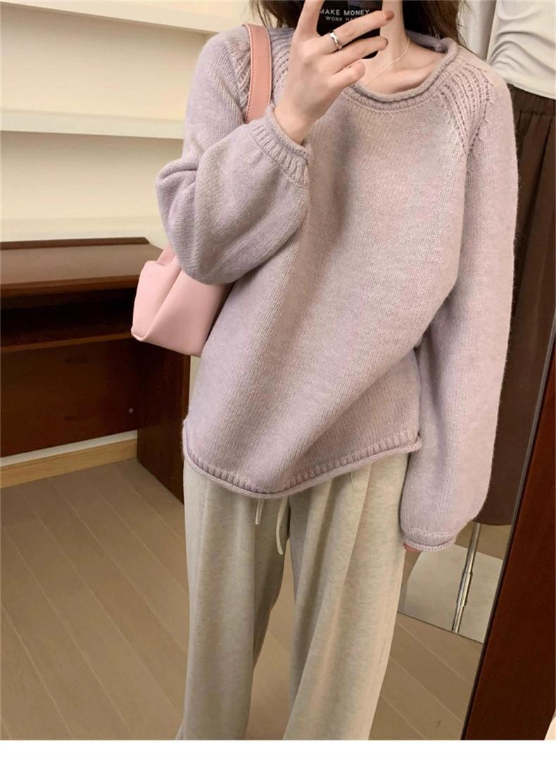 Suéter de Punto de Color Puro Estilo Francés para Mujer Nuevo Otoño e Invierno Estilo Holgado Perezoso Casual Top Interior para Mujer