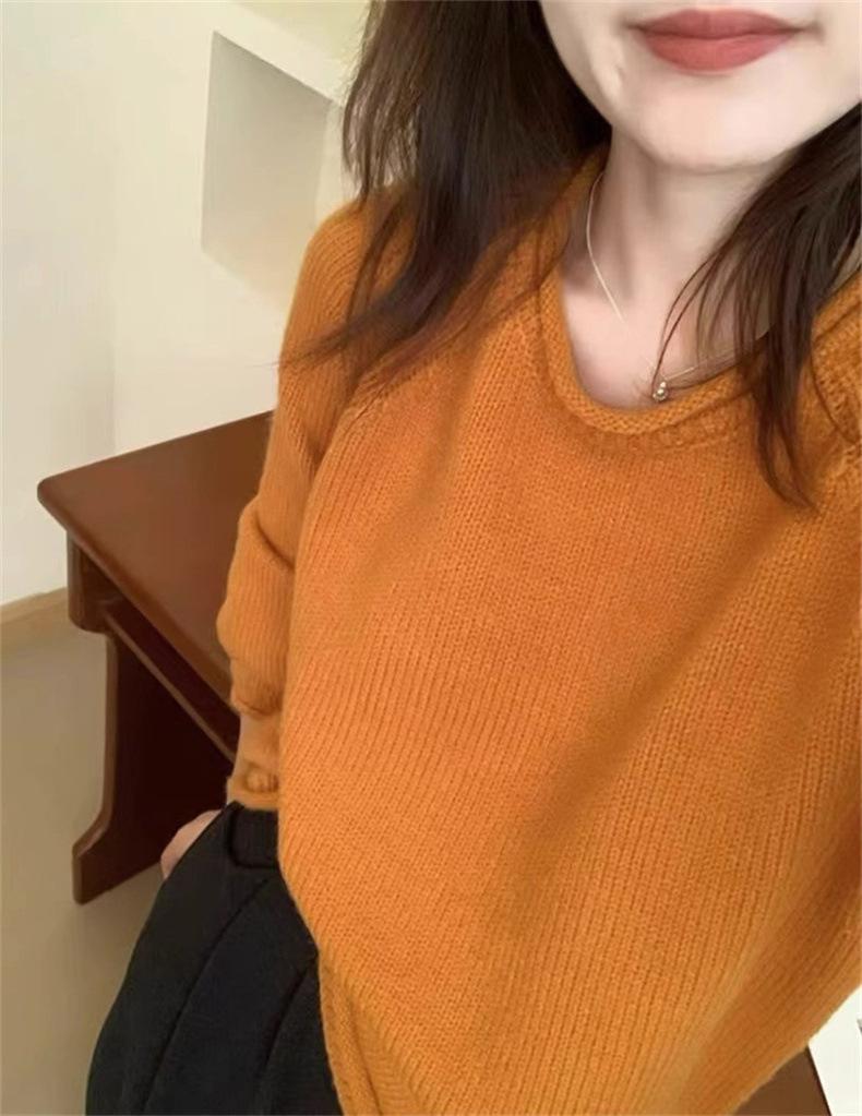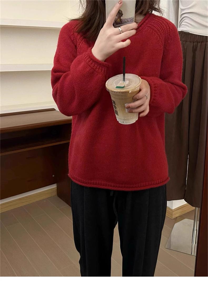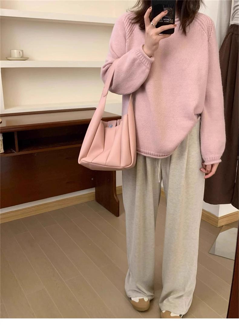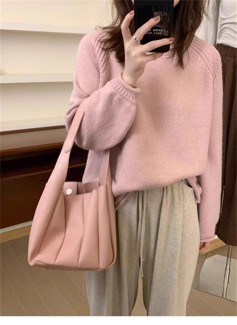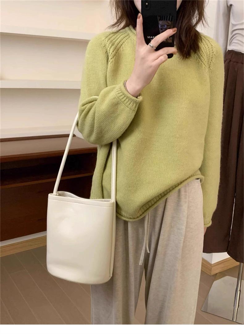 Suéter de Punto de Color Puro Estilo Francés para Mujer Nuevo Otoño e Invierno Estilo Holgado Perezoso Casual Top Interior para Mujer