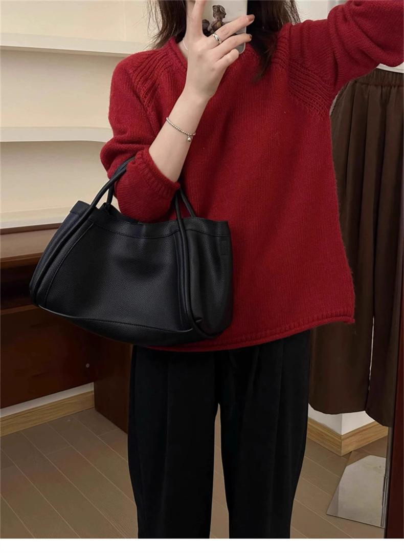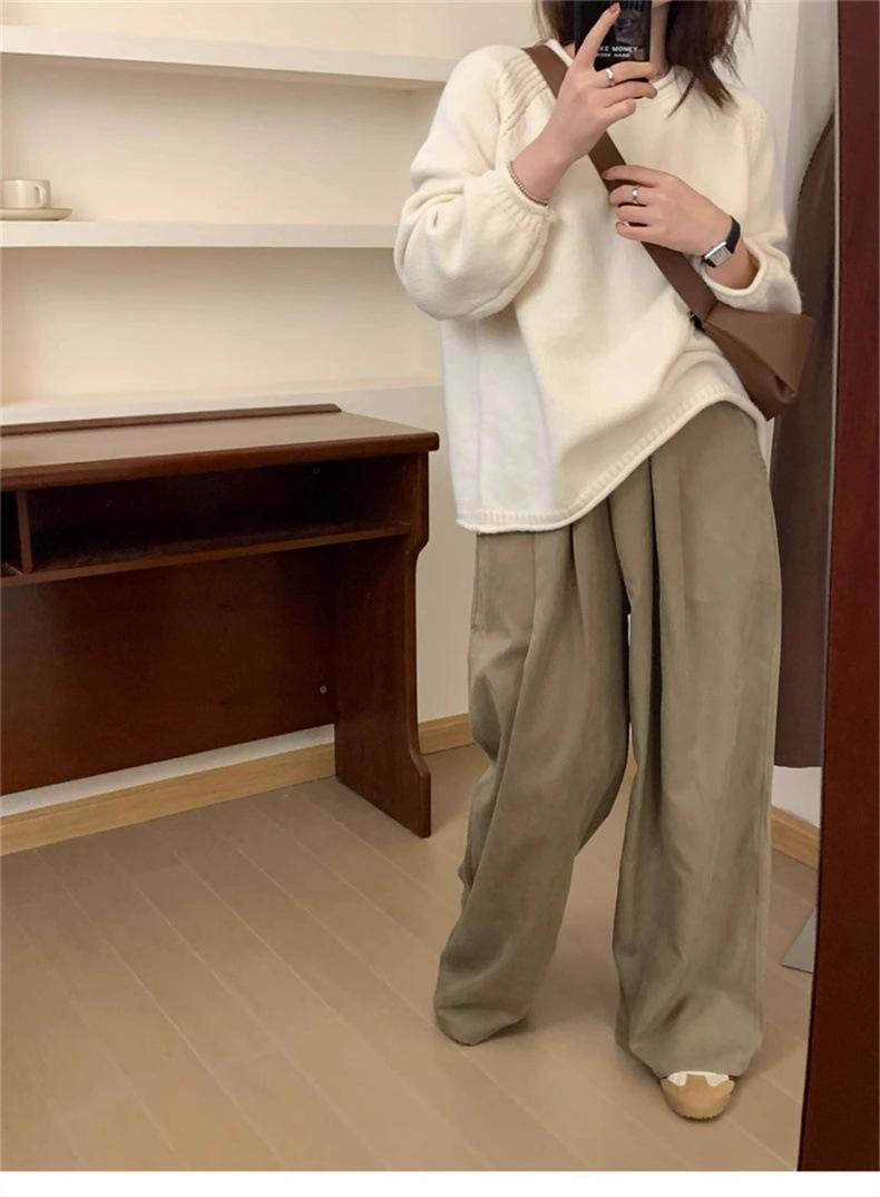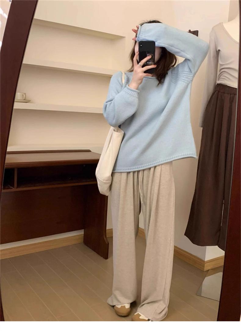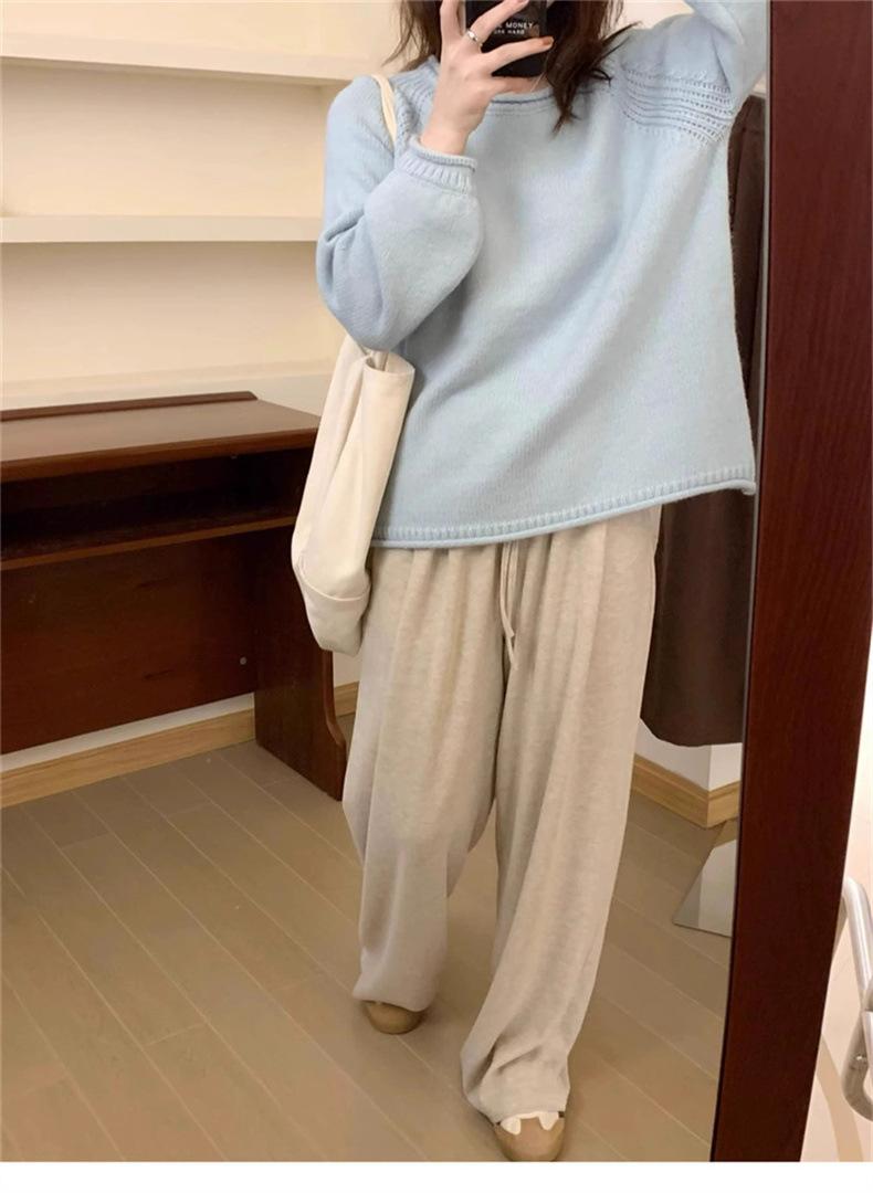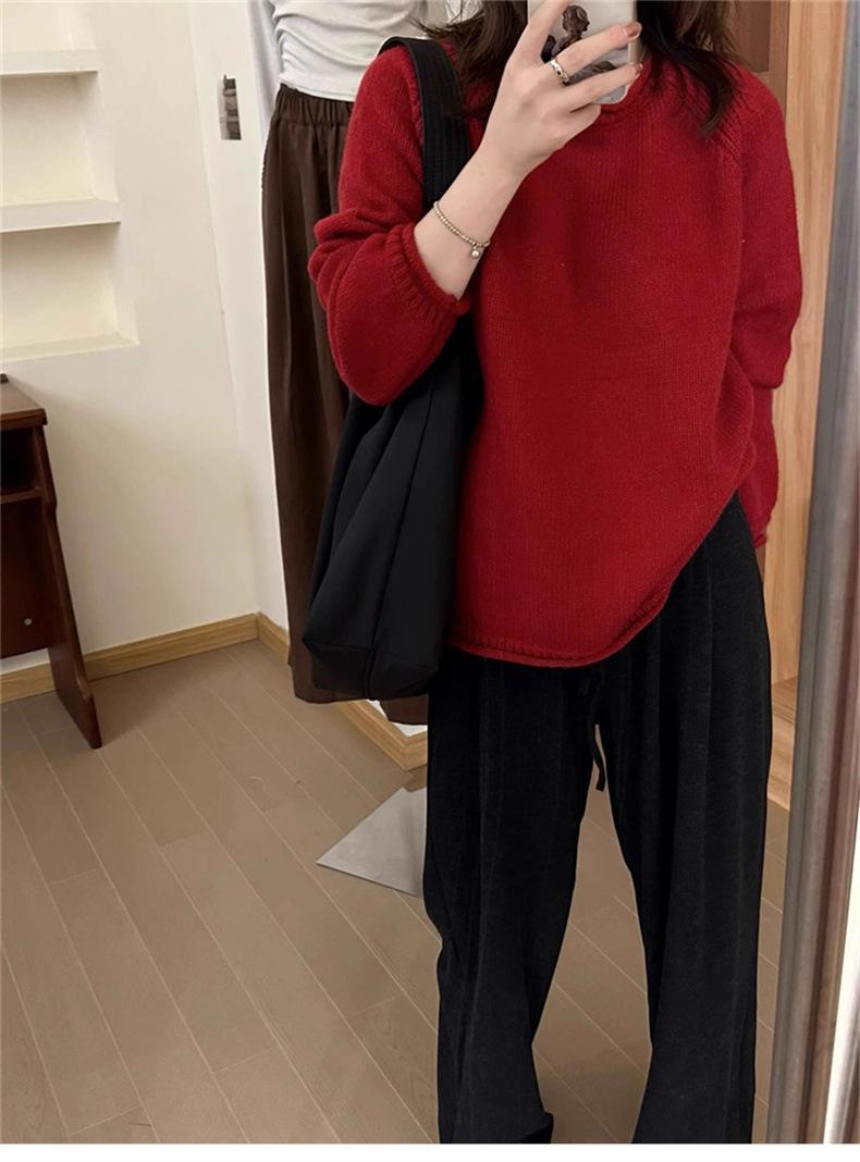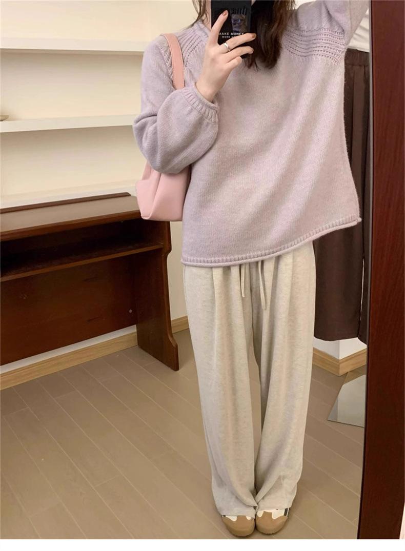 Suéter de Punto de Color Puro Estilo Francés para Mujer Nuevo Otoño e Invierno Estilo Holgado Perezoso Casual Top Interior para Mujer