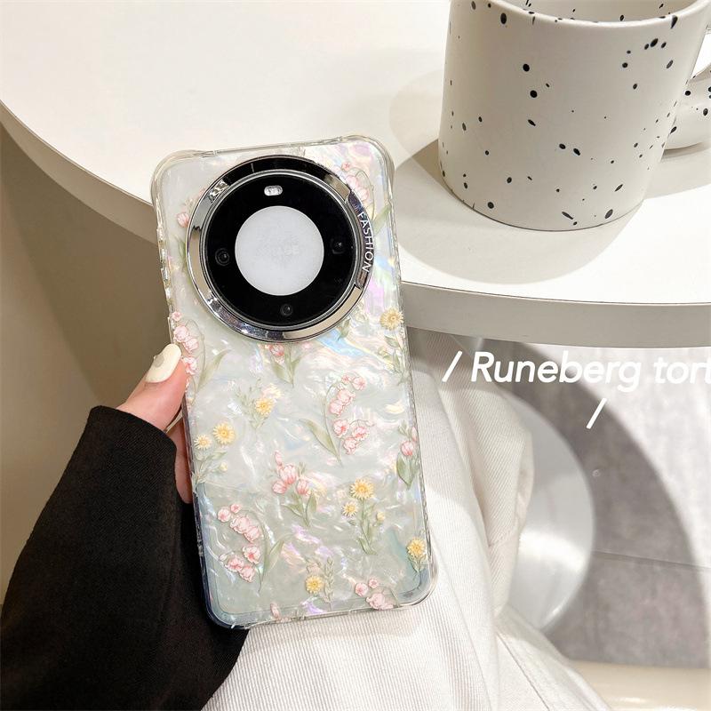 Funda para teléfono móvil Han Feng con diseño de flores y concha para Huawei Mate60 Pro, Mate40/50, resistente a caídas, P60, para mujer, M60