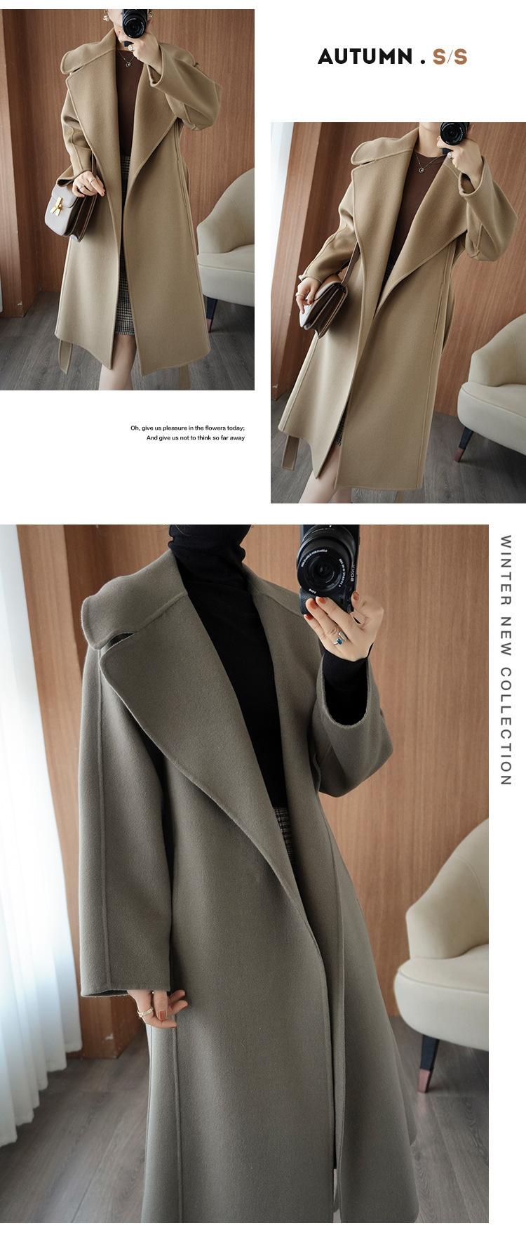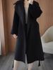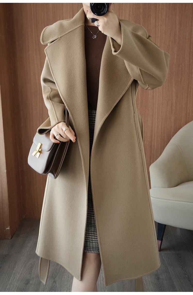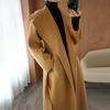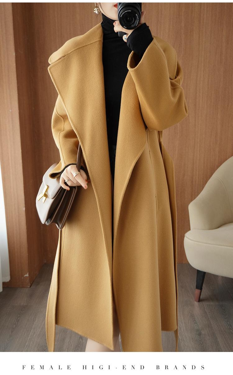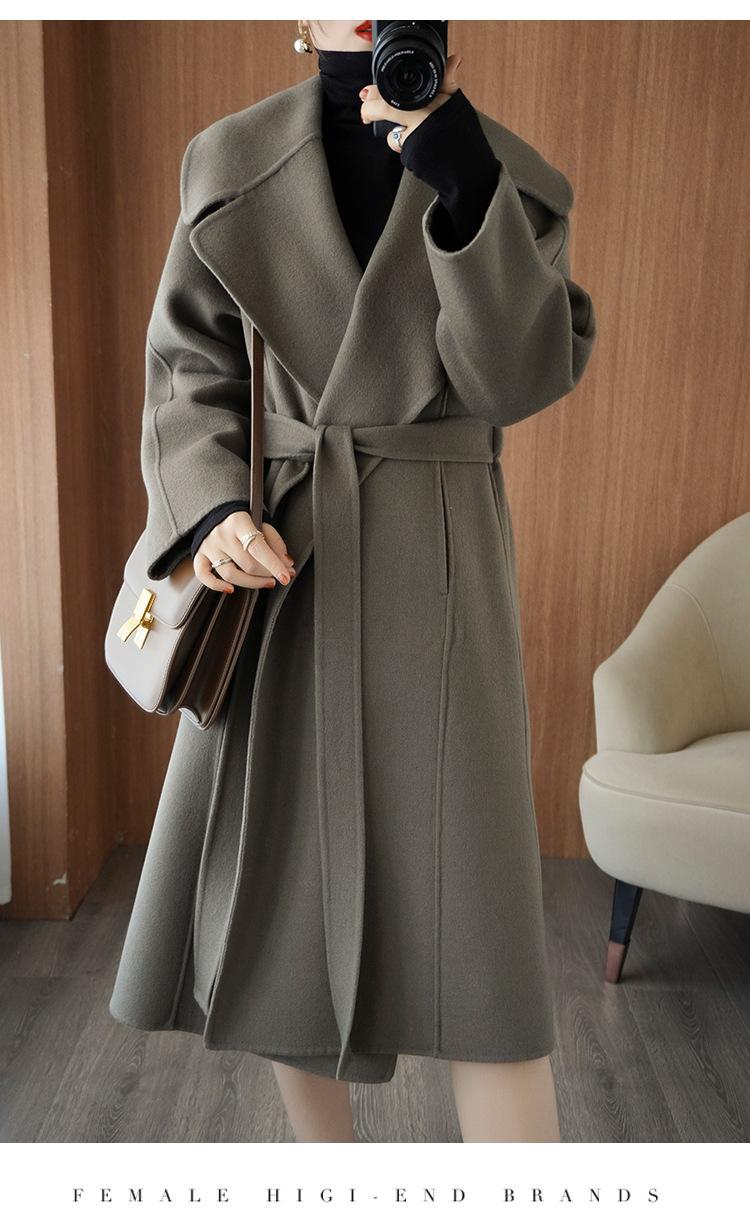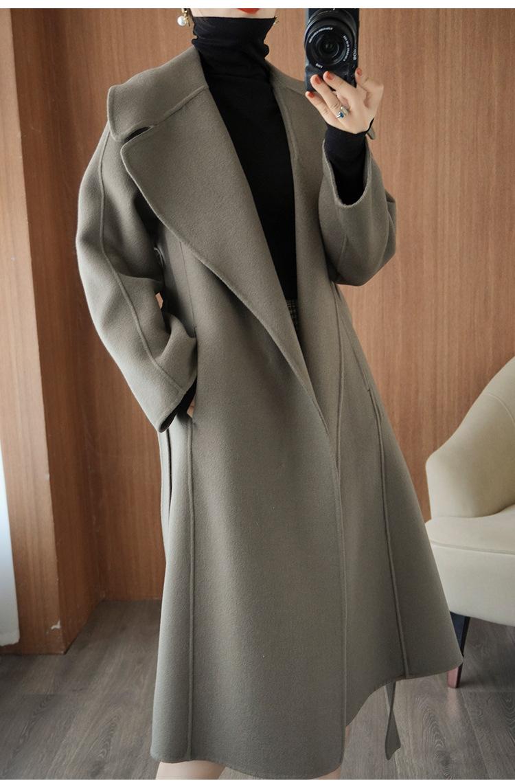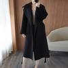 Abrigo de cachemira de doble cara de alta gama para otoño e invierno 2023, abrigo de lana 100 % holgado con cordones de longitud media para mujer