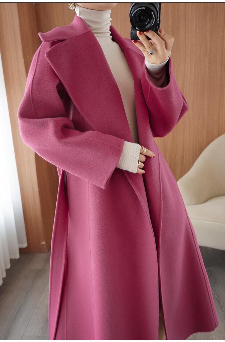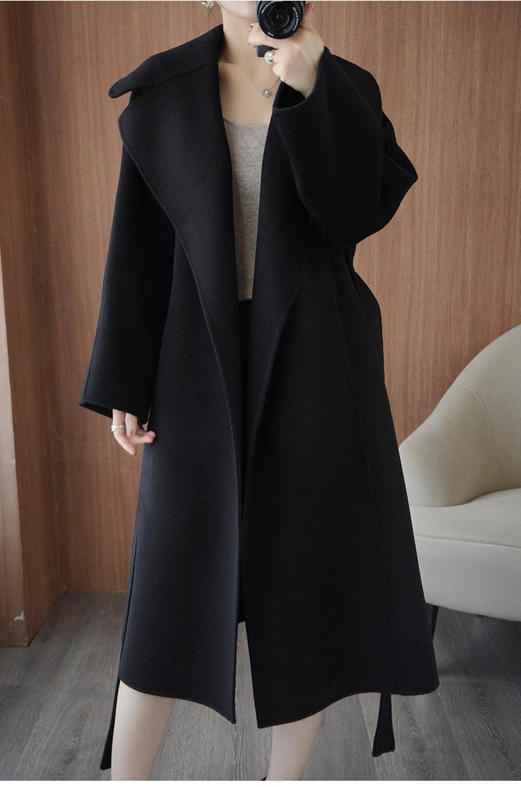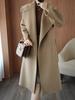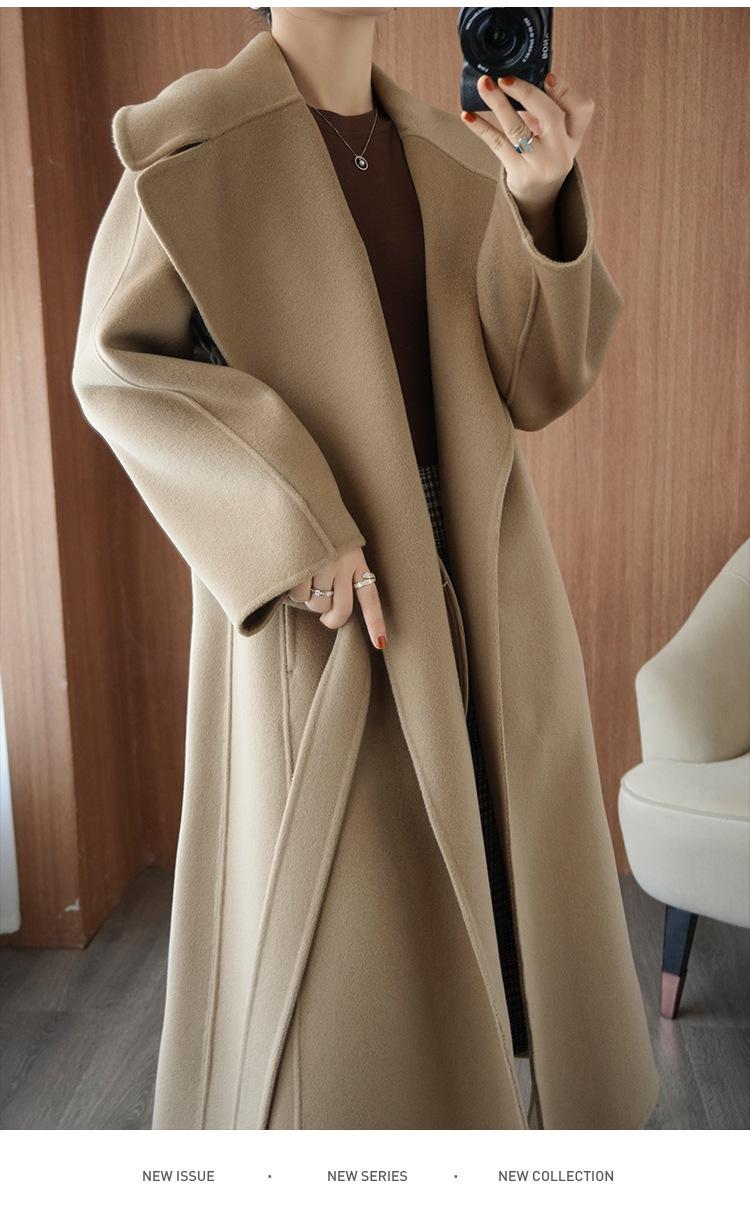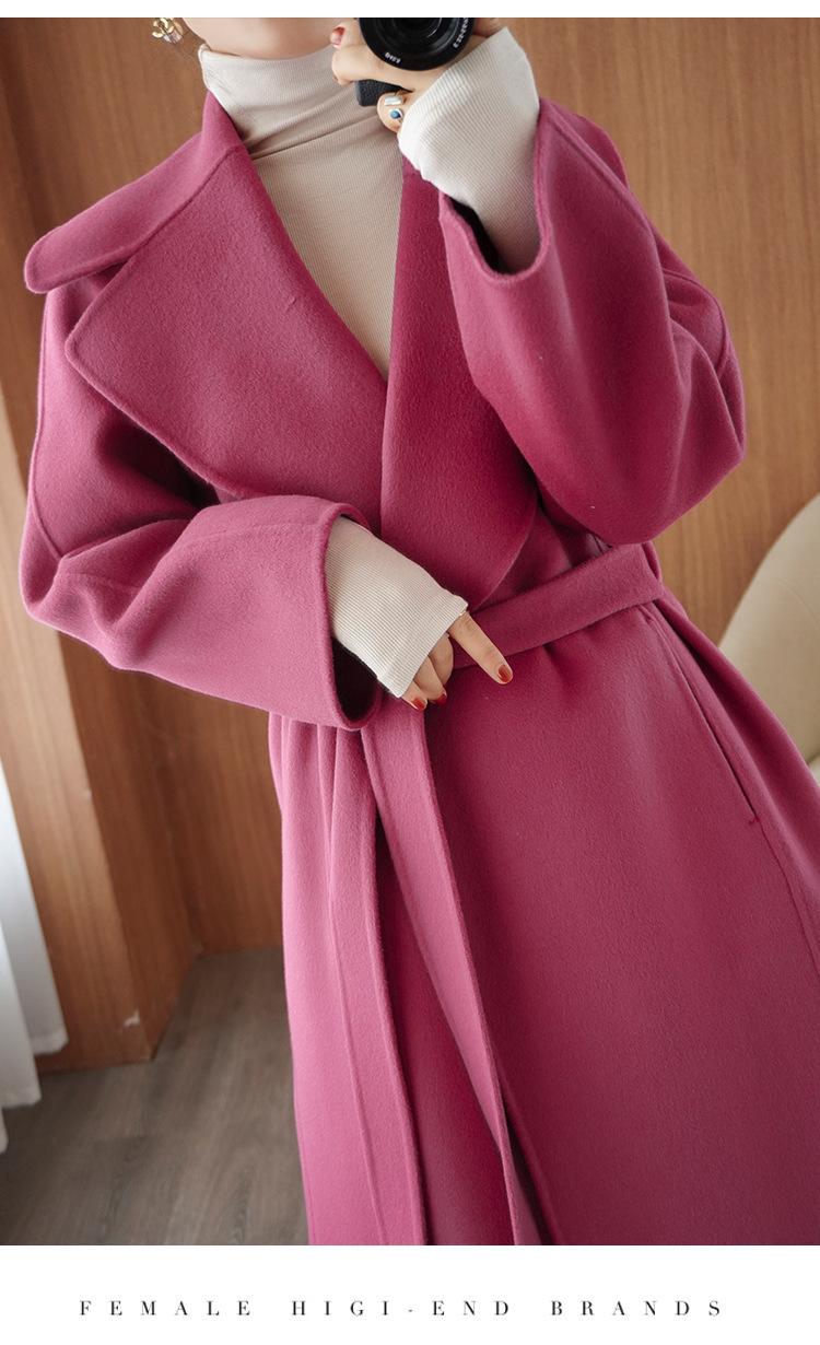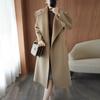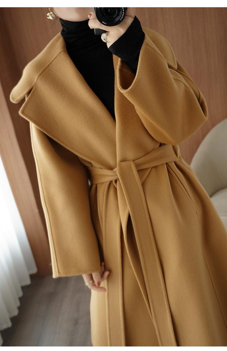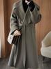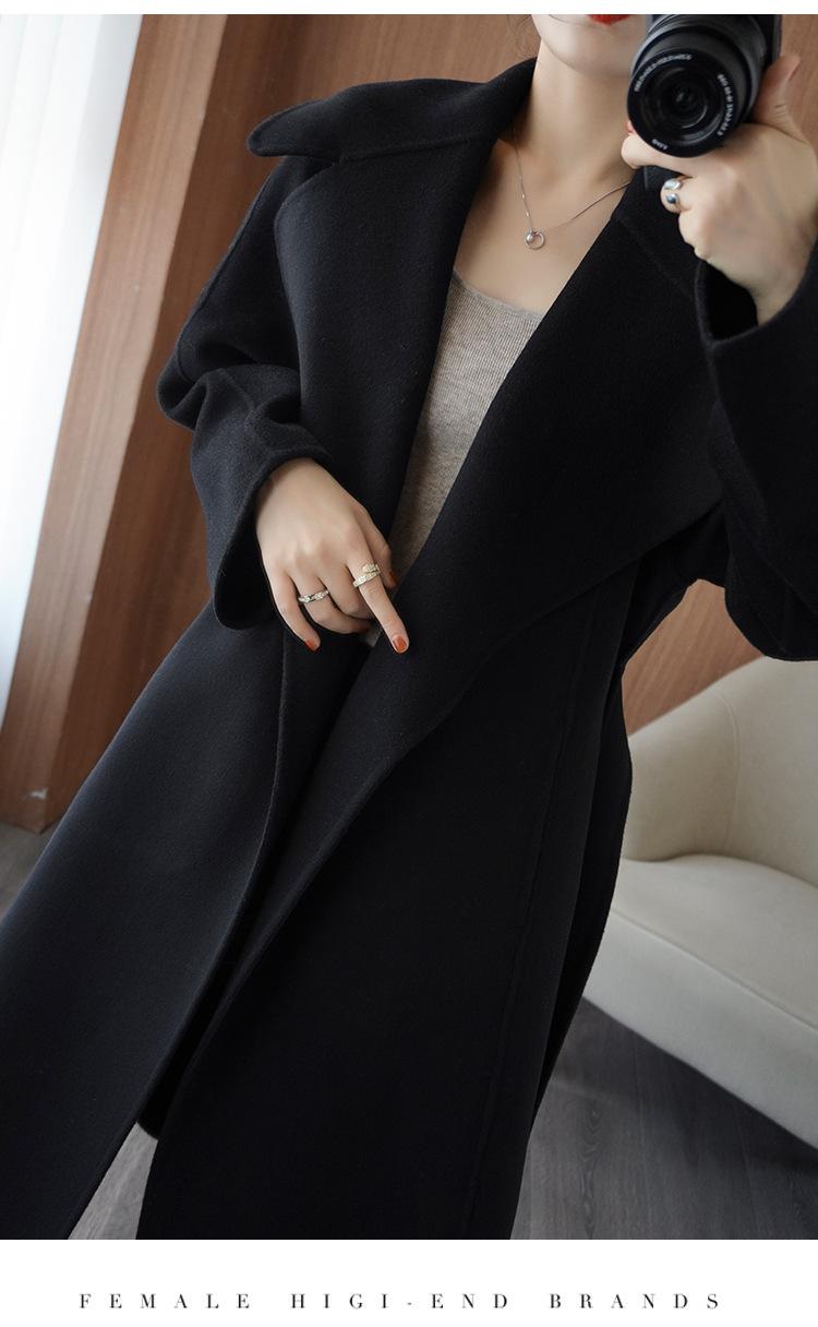 Abrigo de cachemira de doble cara de alta gama para otoño e invierno 2023, abrigo de lana 100 % holgado con cordones de longitud media para mujer