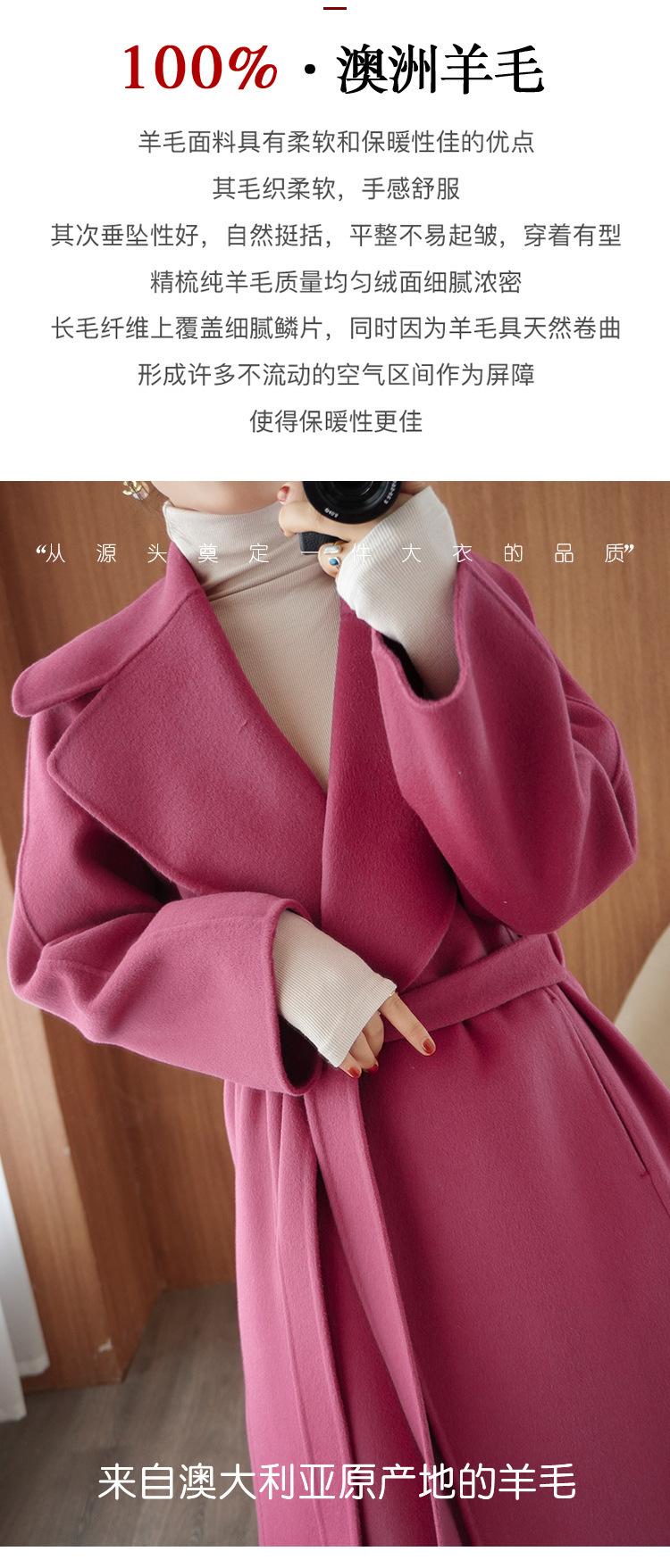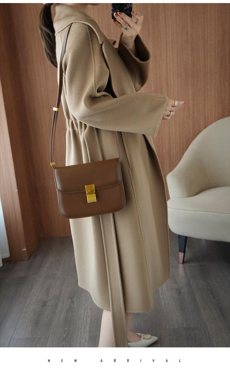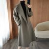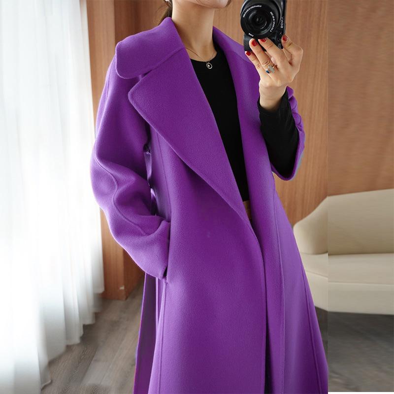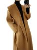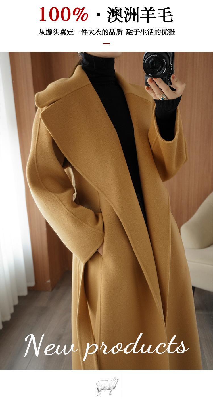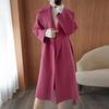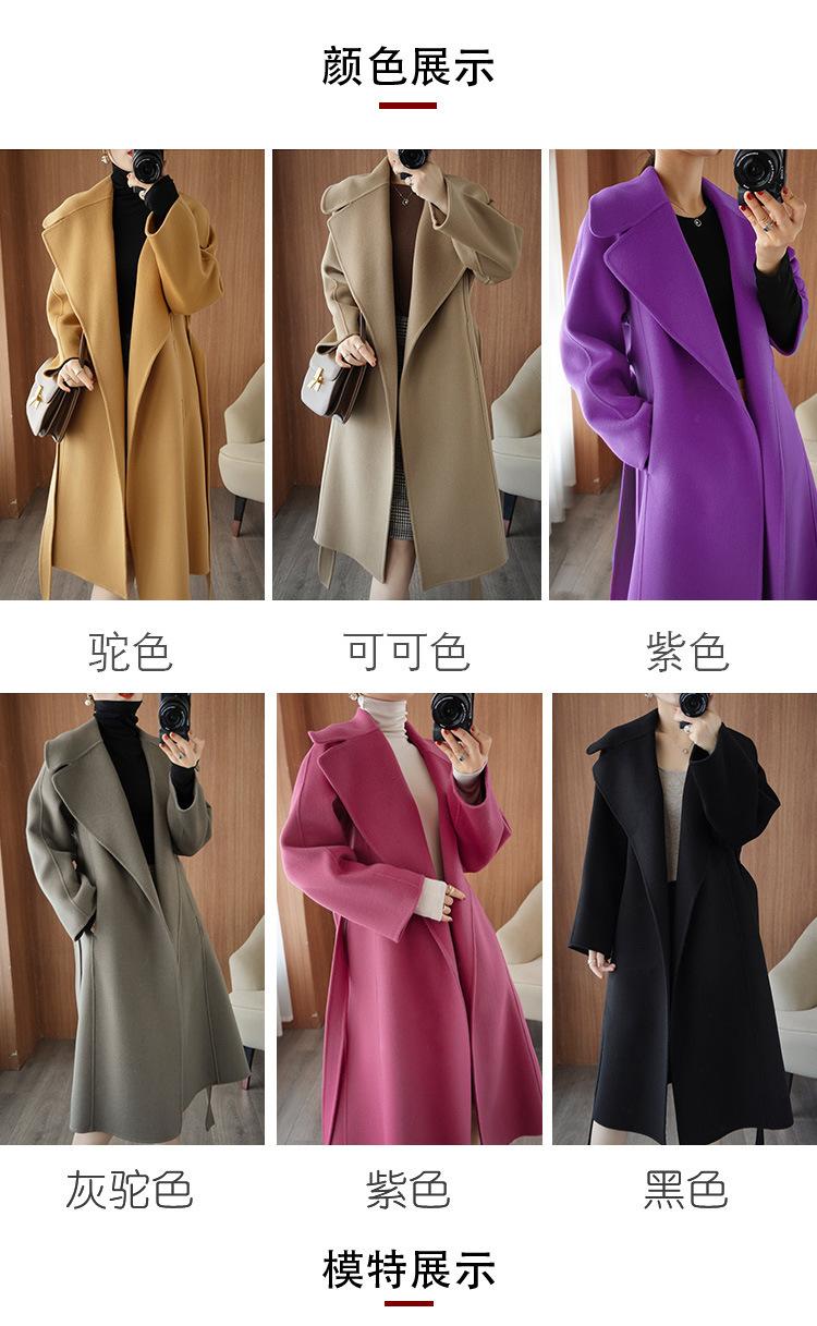 Abrigo de cachemira de doble cara de alta gama para otoño e invierno 2023, abrigo de lana 100 % holgado con cordones de longitud media para mujer