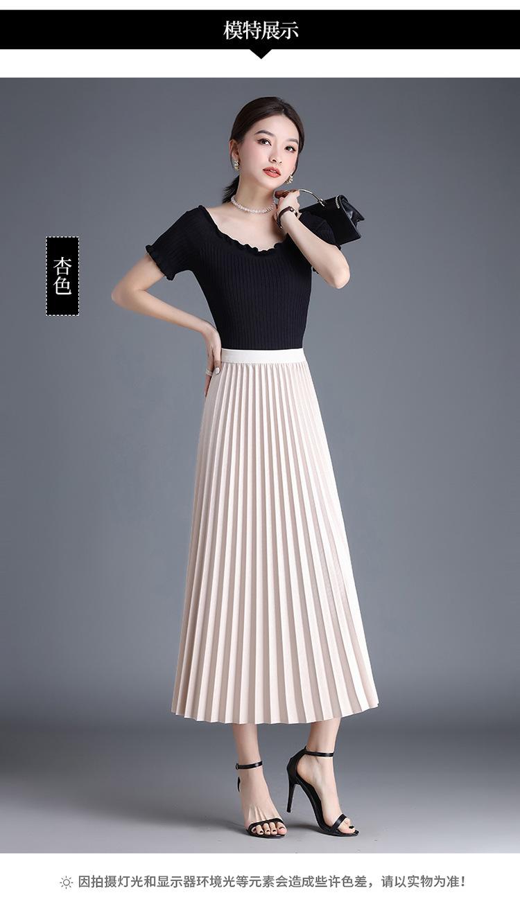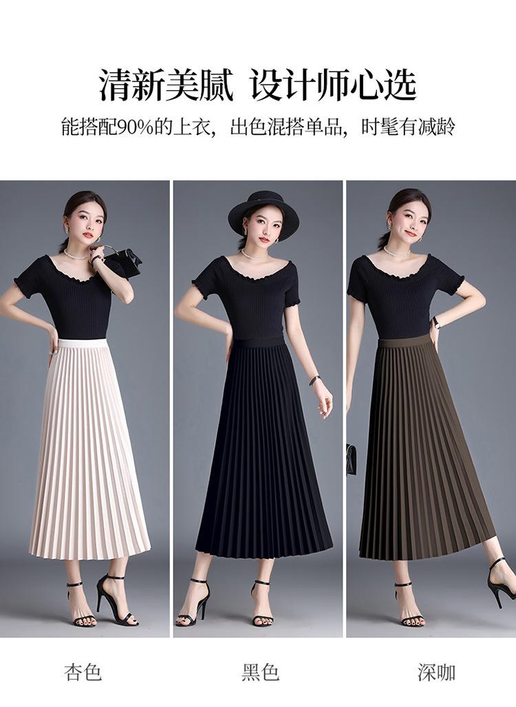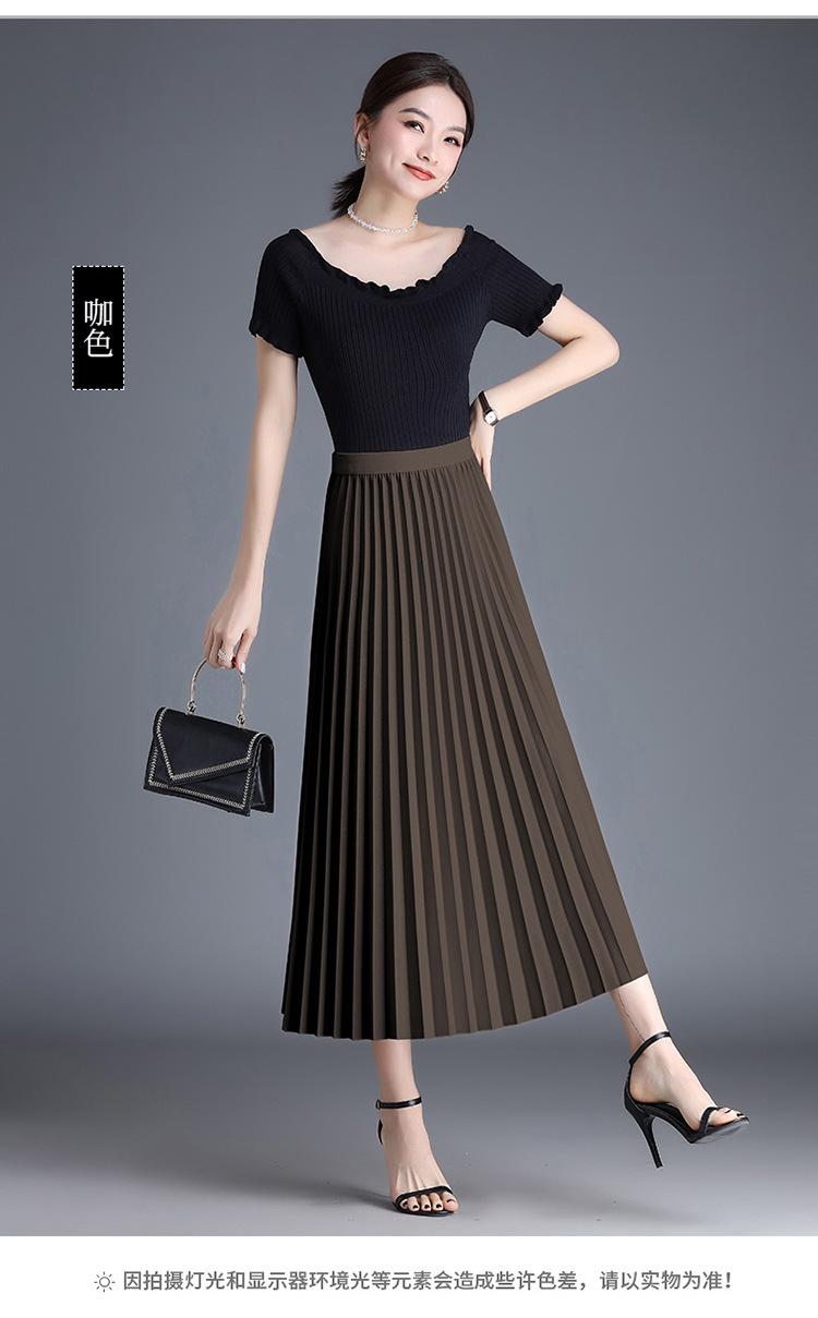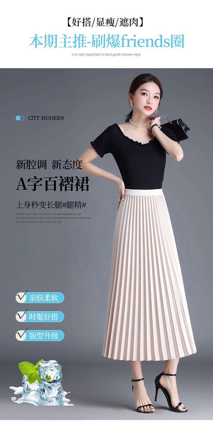 Falda plisada de cintura elástica a la moda para mujer Verano 2025 Nuevo estilo coreano Falda de cintura alta Falda acampanada Look adelgazante Falda midi
