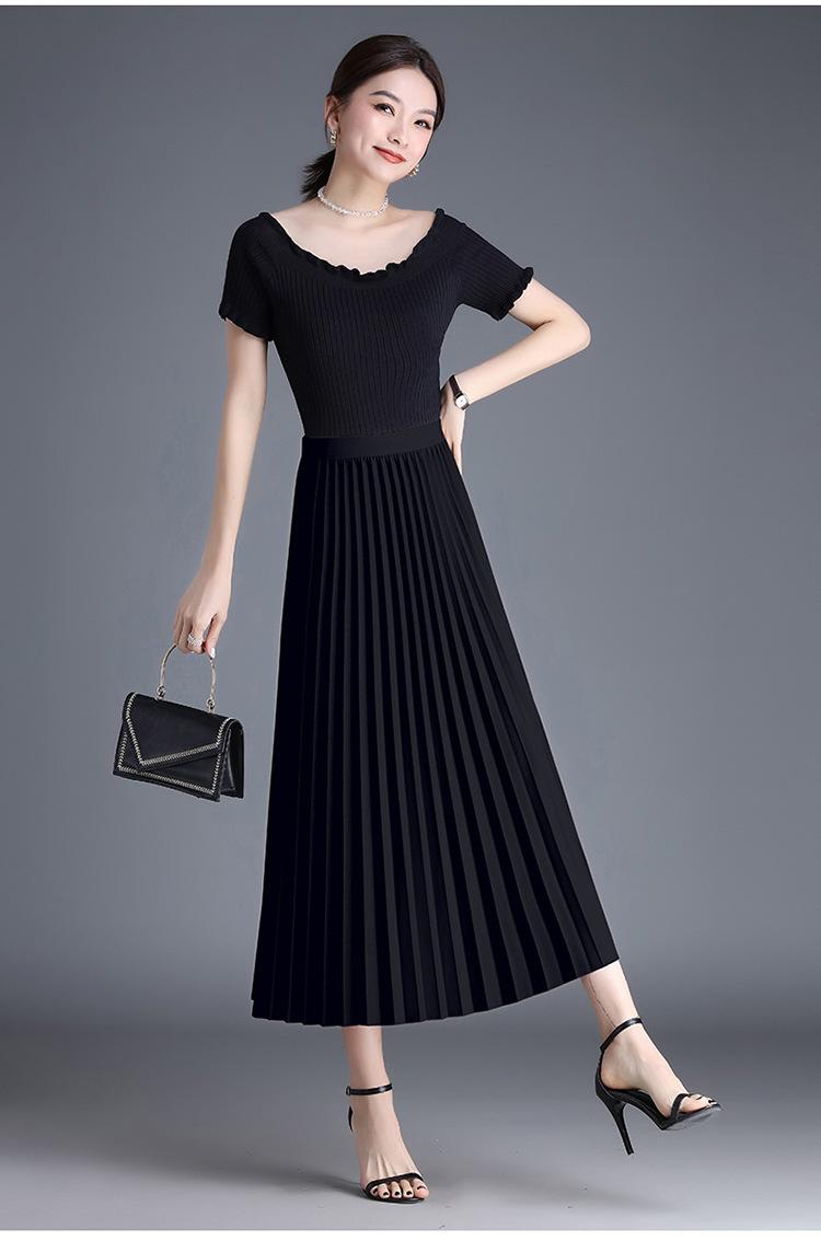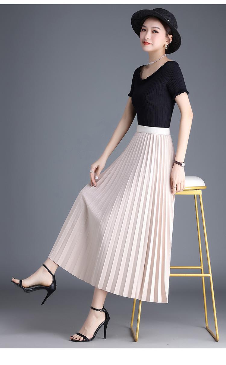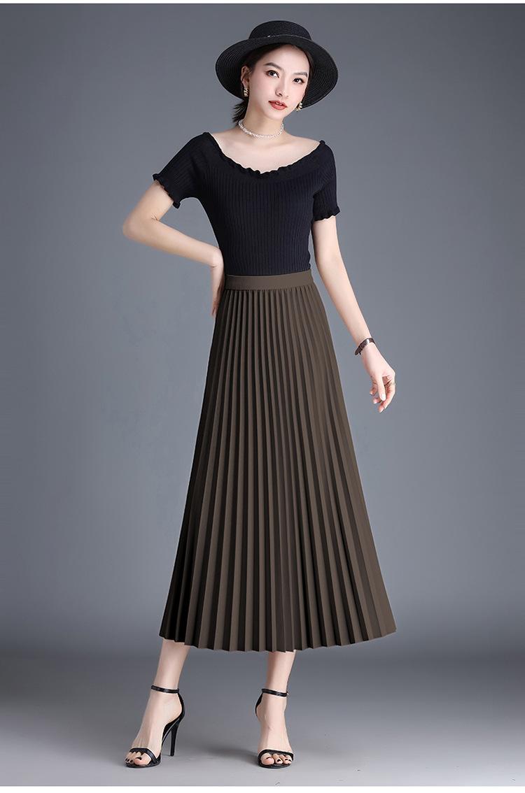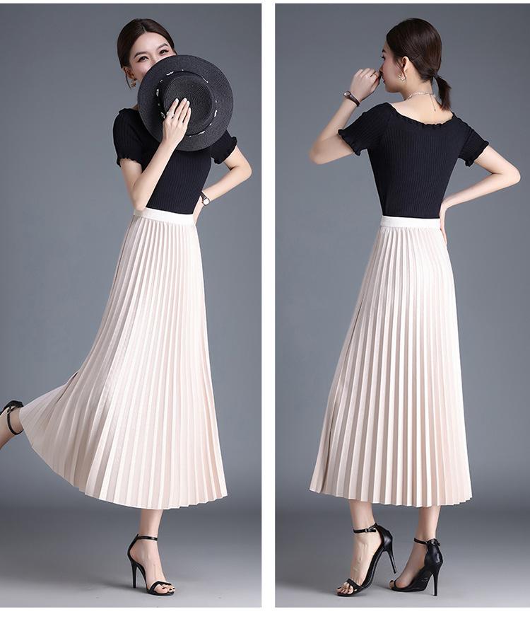 Falda plisada de cintura elástica a la moda para mujer Verano 2025 Nuevo estilo coreano Falda de cintura alta Falda acampanada Look adelgazante Falda midi
