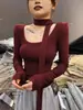Camiseta de cuello cuadrado de color liso para chica americana, para mujer, otoño e invierno 2023, nueva camiseta ajustada plisada de manga corta y adelgazante