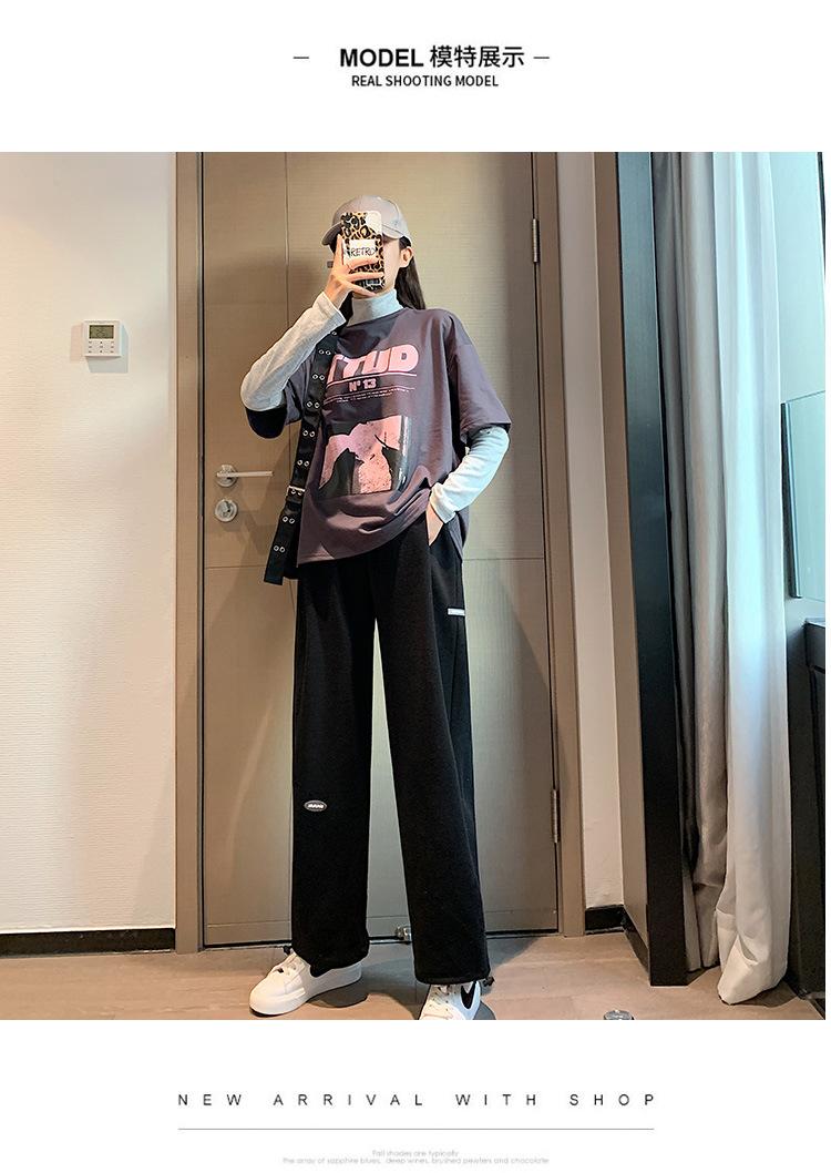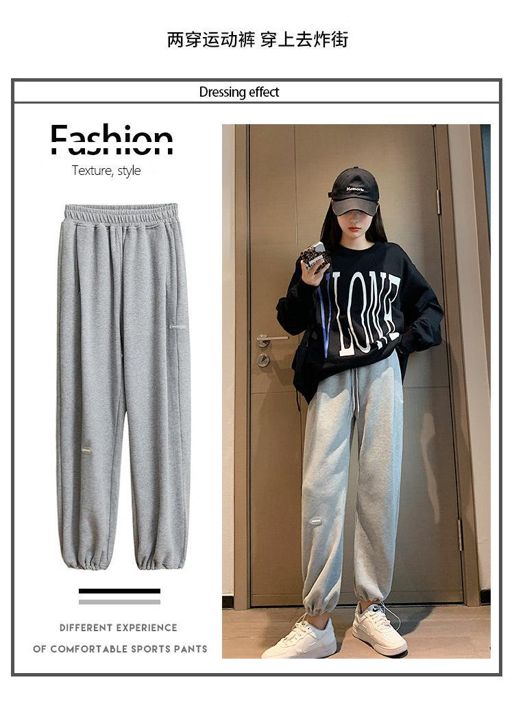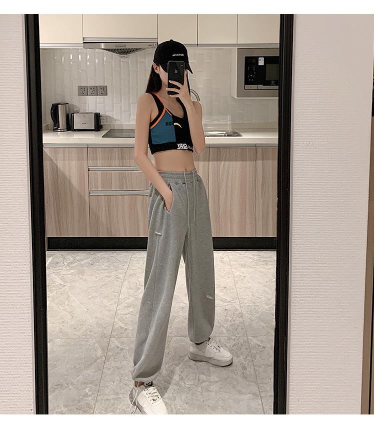 Pantalones deportivos grises Pantalones casuales para mujer Pantalones de pierna ancha Pantalones de mujer Delgados Liquidación Puesto Remanentes de Comercio Exterior