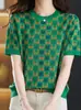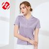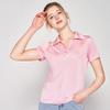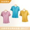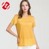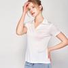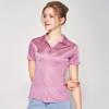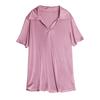 Playera de Manga Corta de Seda para Mujer Color Puro Primavera y Verano Nuevo Seda de Morera Tejido Solapa en Forma de V Suelta Talla Grande Camisa Top