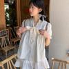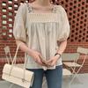 Camisa de gasa de manga corta con mangas abullonadas y diseño bordado hueco de crochet suelto estilo coreano 2024