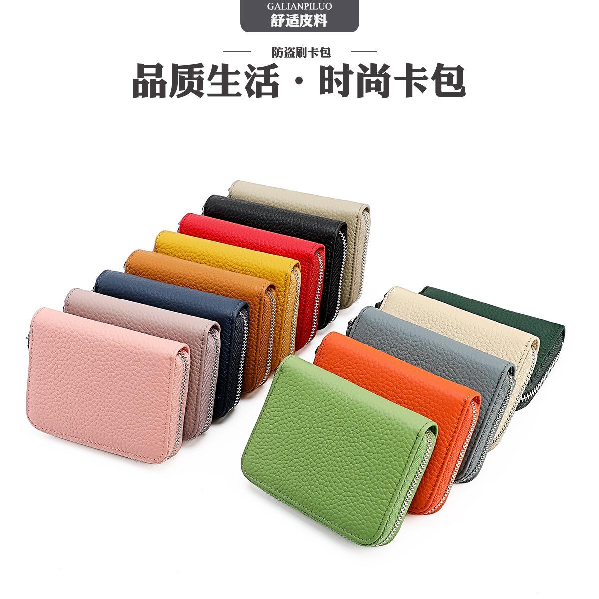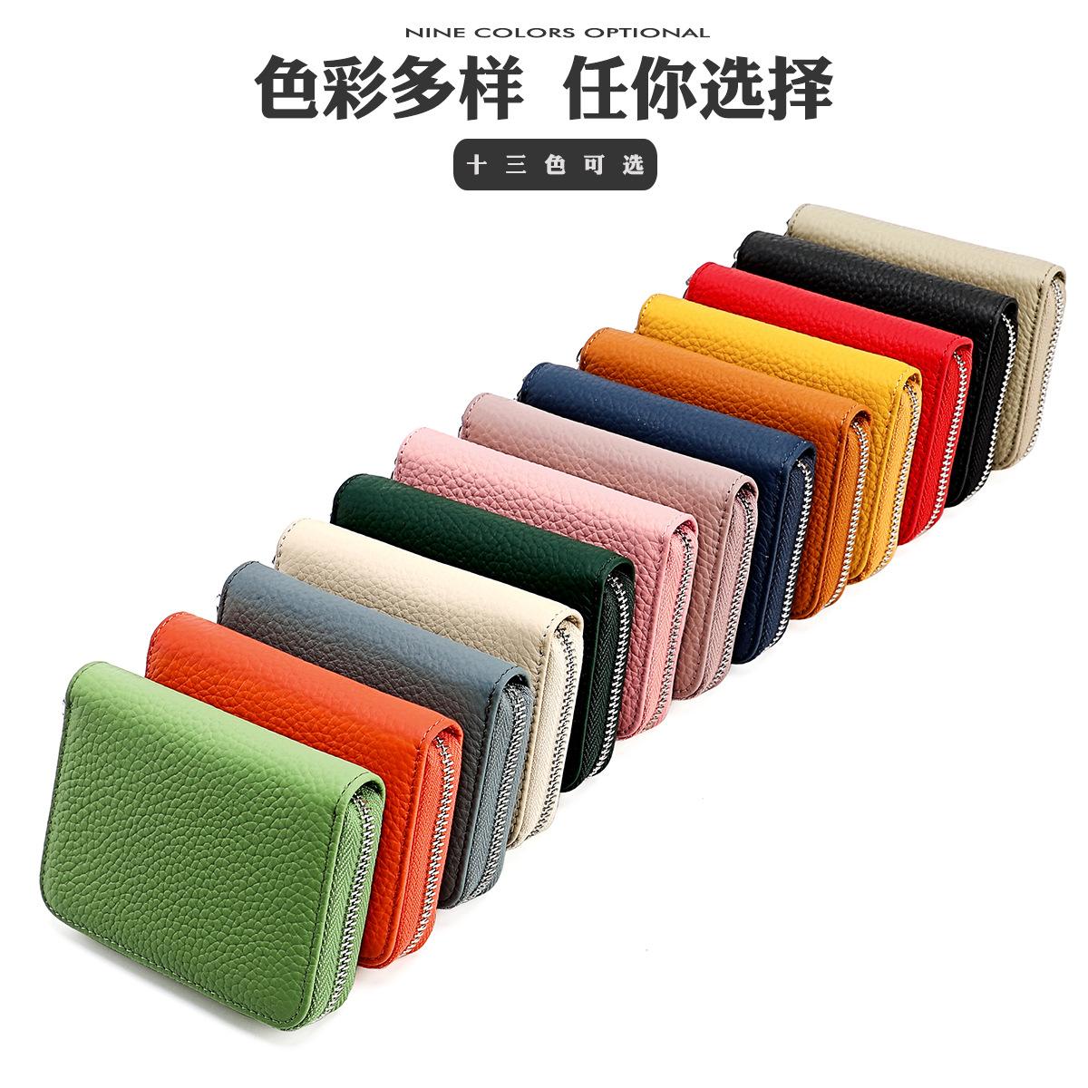 Tarjetero de cuero genuino japonés y coreano de Amazon, billetera para hombre y mujer, monedero corto, tarjetero con cremallera, monedero de piel de vaca