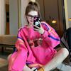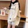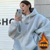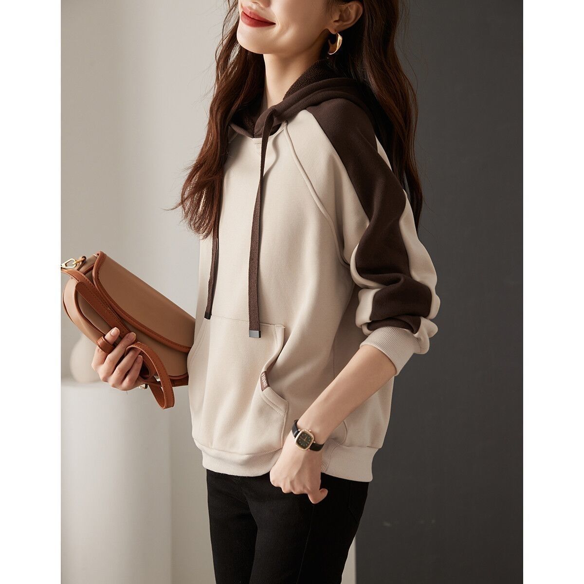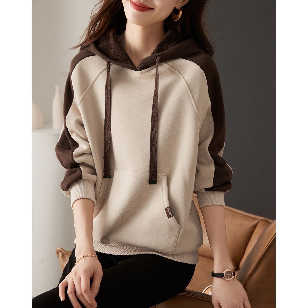 Sudadera con Capucha de Color Contrastante para Mujer en Otoño e Invierno Americano Retro Largo Medio Oversize Holgada Lazy Top Forrado de Felpa y Engrosado