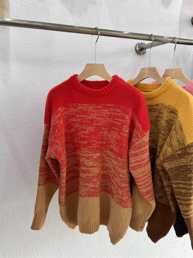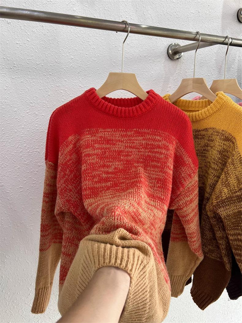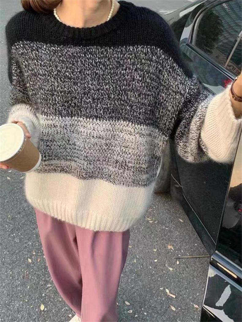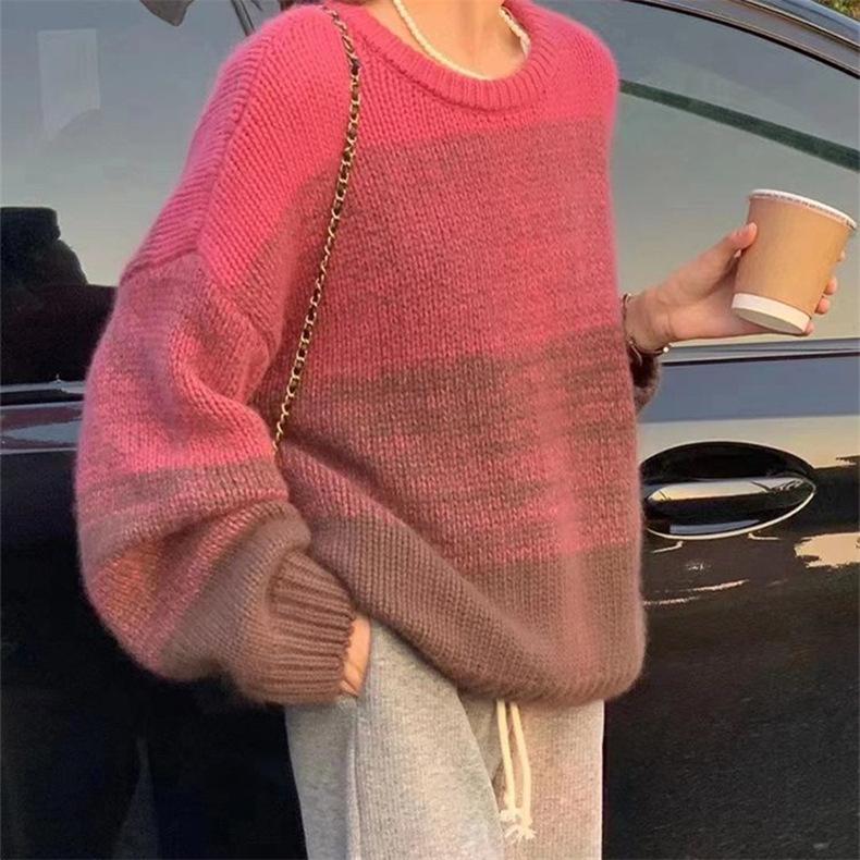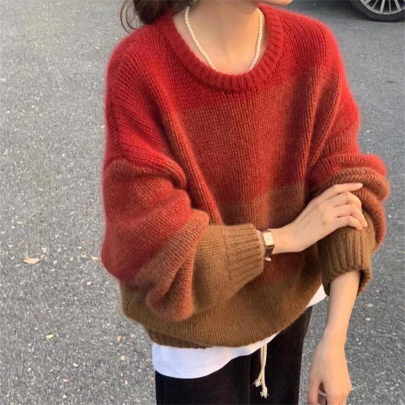 Suéter de cuello redondo con degradado de color, suéter de aguja gruesa, ropa de abrigo holgada y perezosa para mujer, estilo coreano, otoño e invierno, nuevo