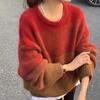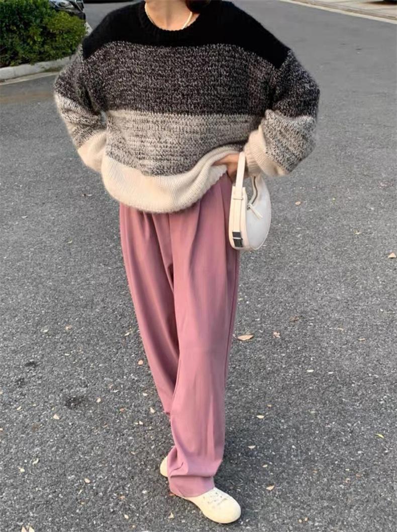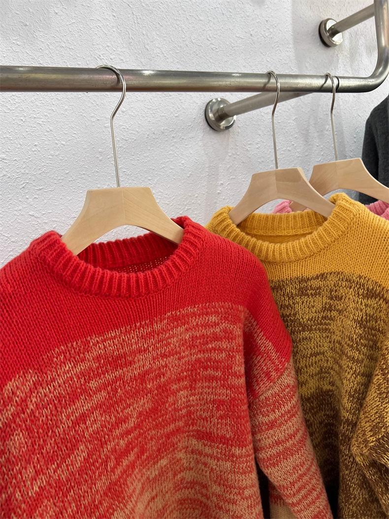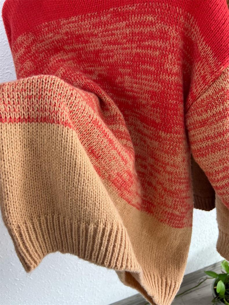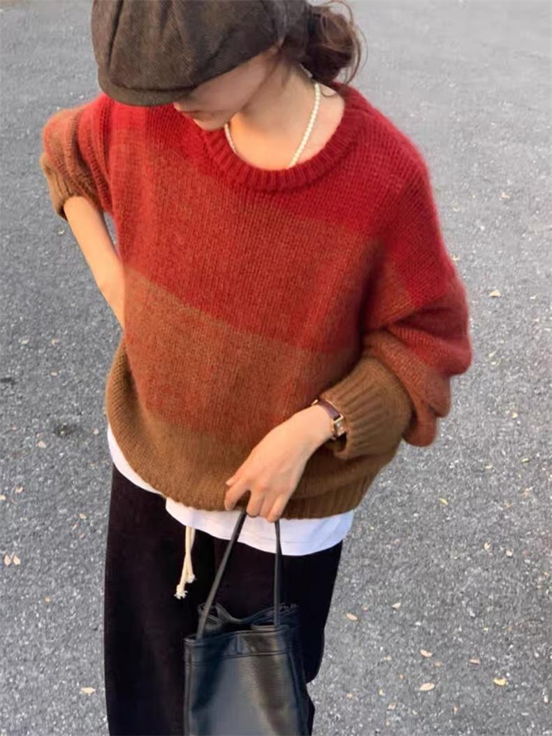 Suéter de cuello redondo con degradado de color, suéter de aguja gruesa, ropa de abrigo holgada y perezosa para mujer, estilo coreano, otoño e invierno, nuevo