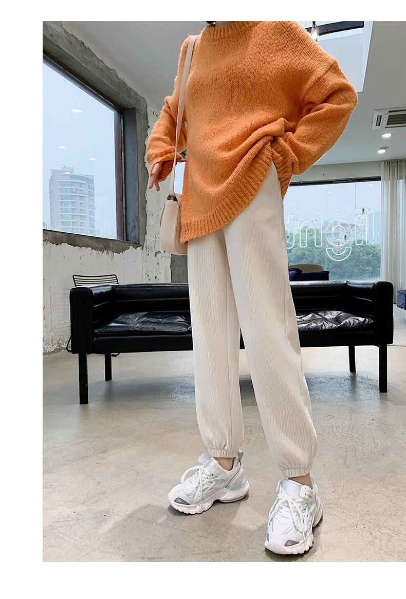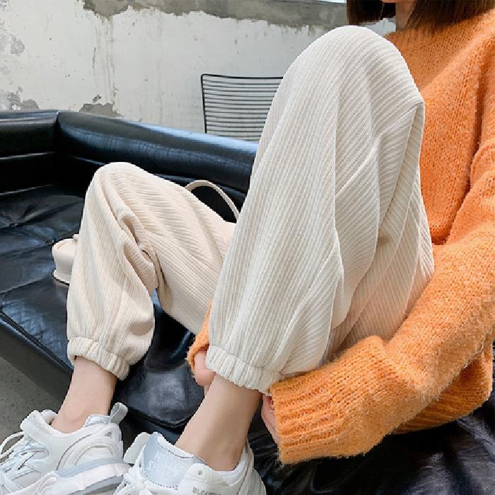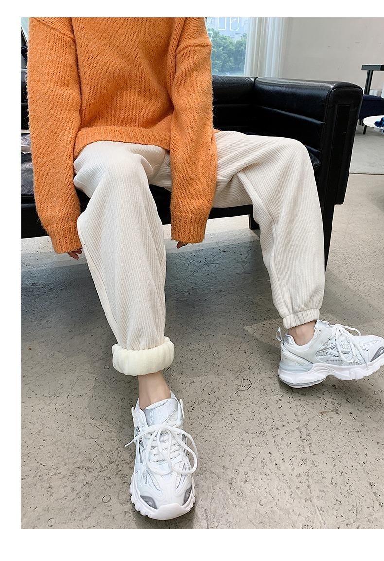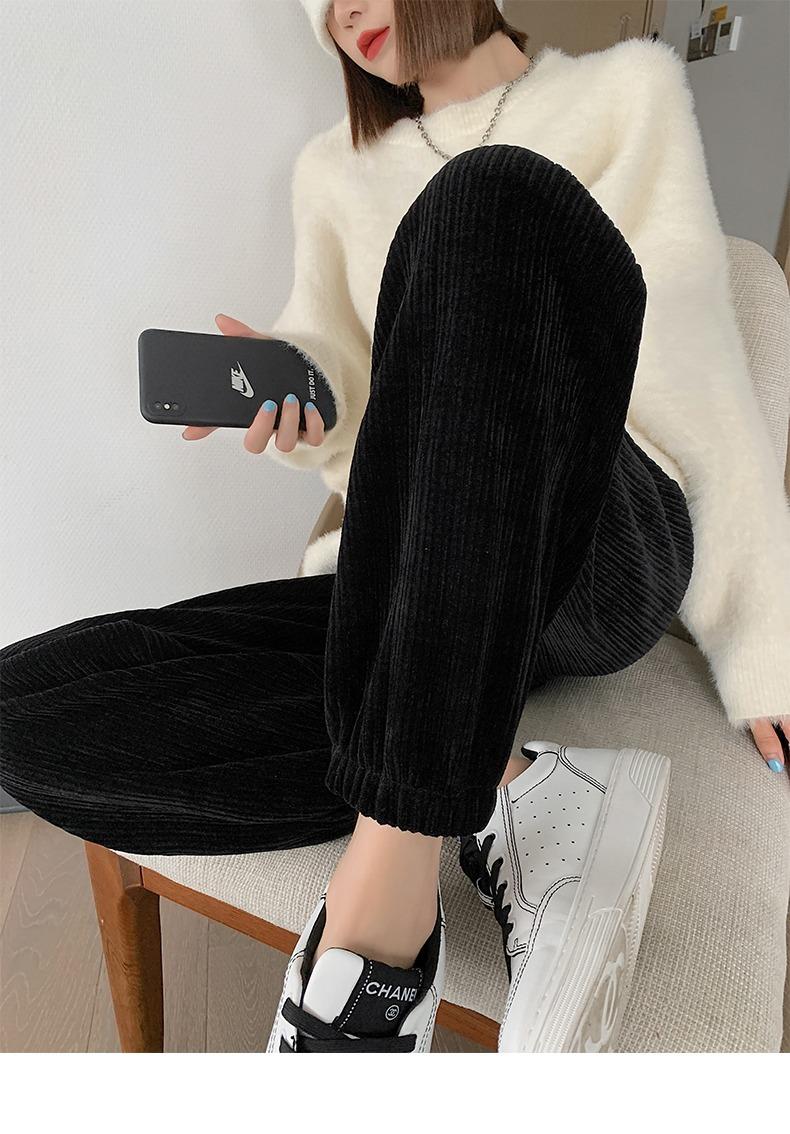 Pantalones casuales deportivos de pana para mujer otoño e invierno forrados de felpa engrosados nuevos adelgazantes holgados harén para niña tobilleros