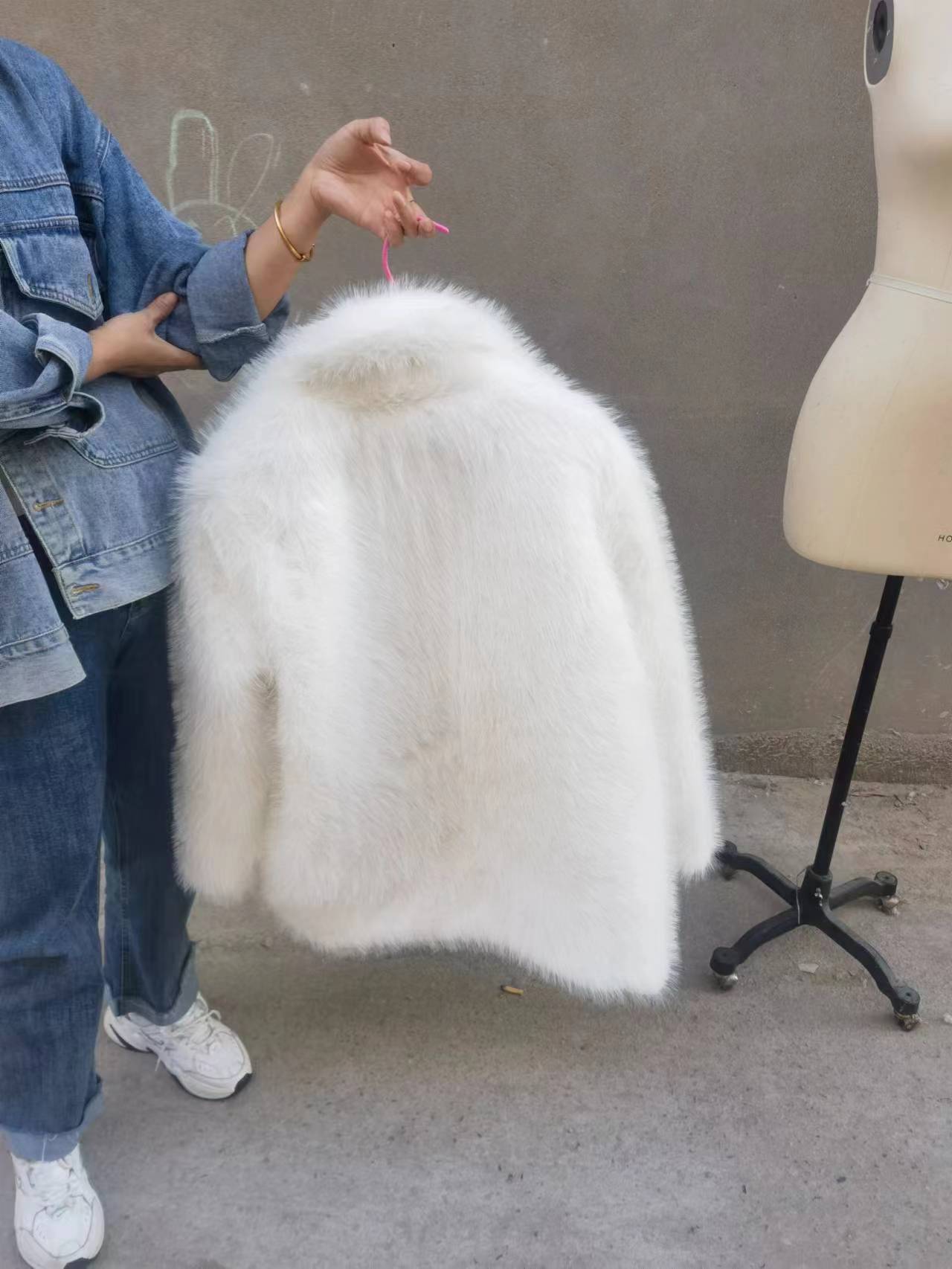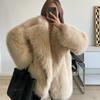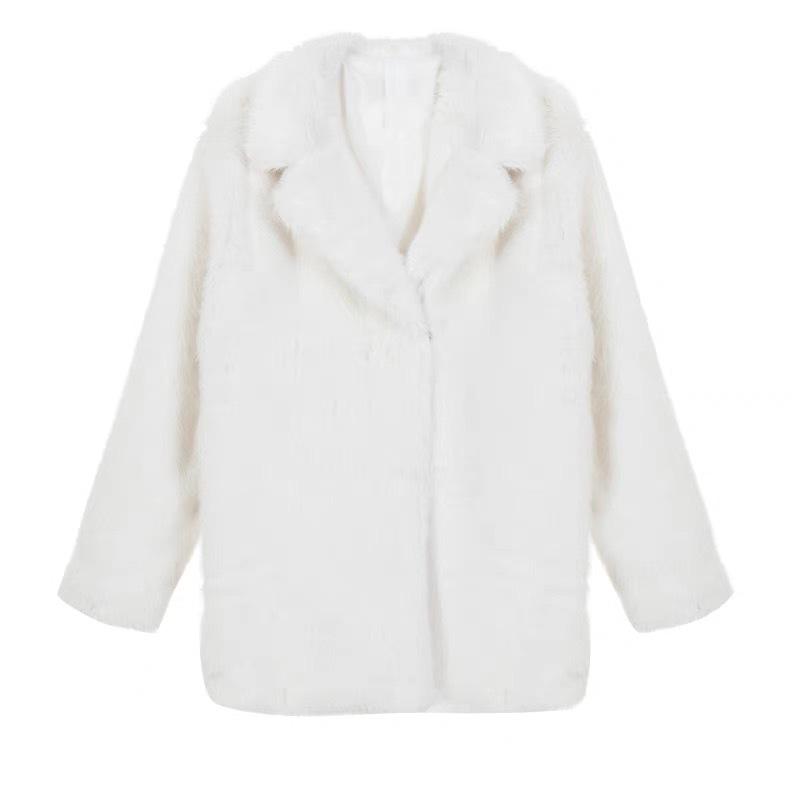 Abrigo de Imitación de Piel Toscana de Aliexpress con Cuello de Traje, Abrigo de Piel Sintética de Largo Medio para Mujer, Elegante y con Clase