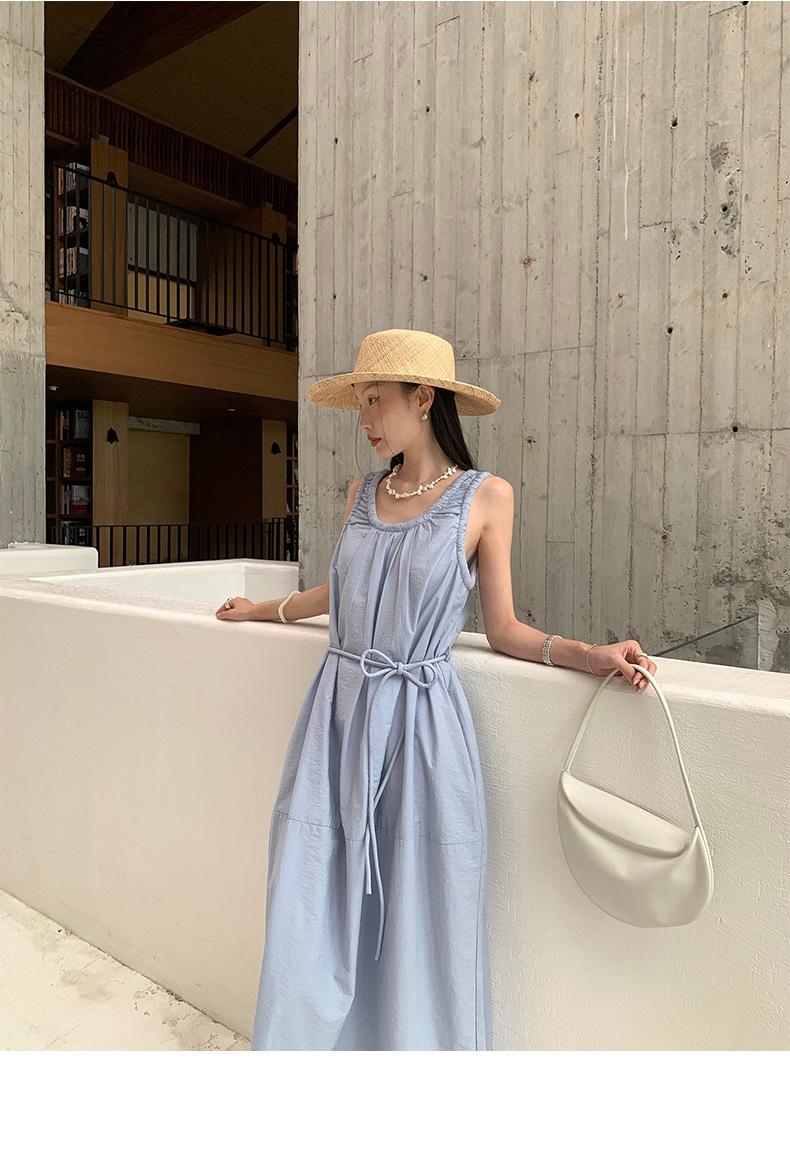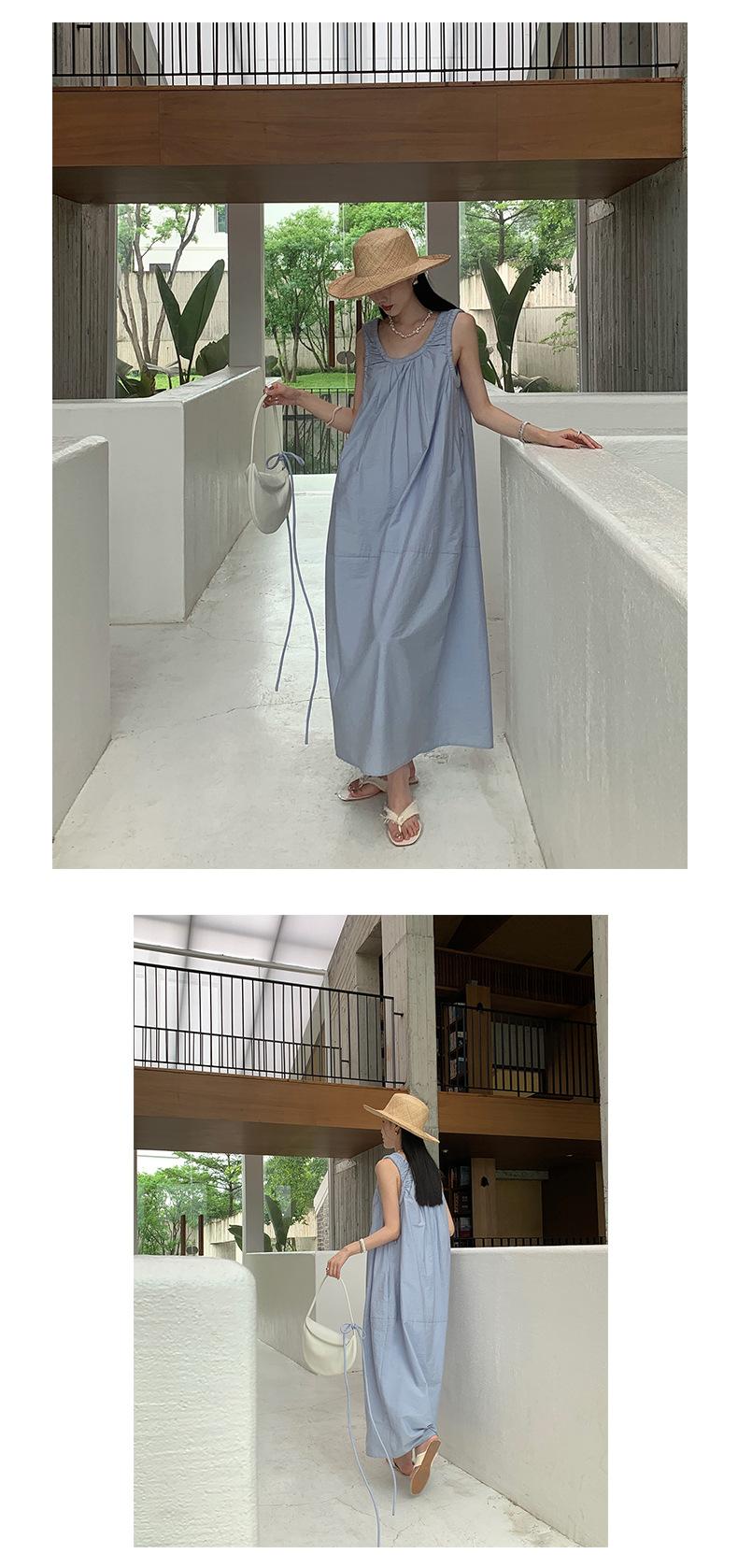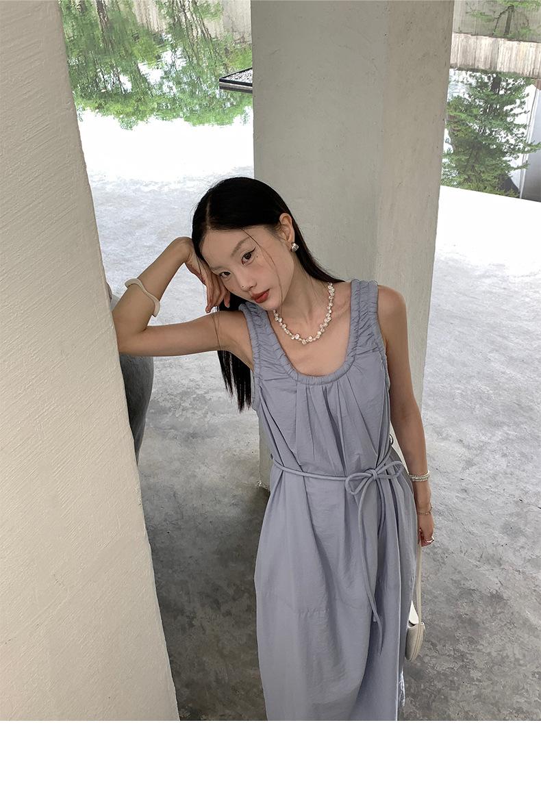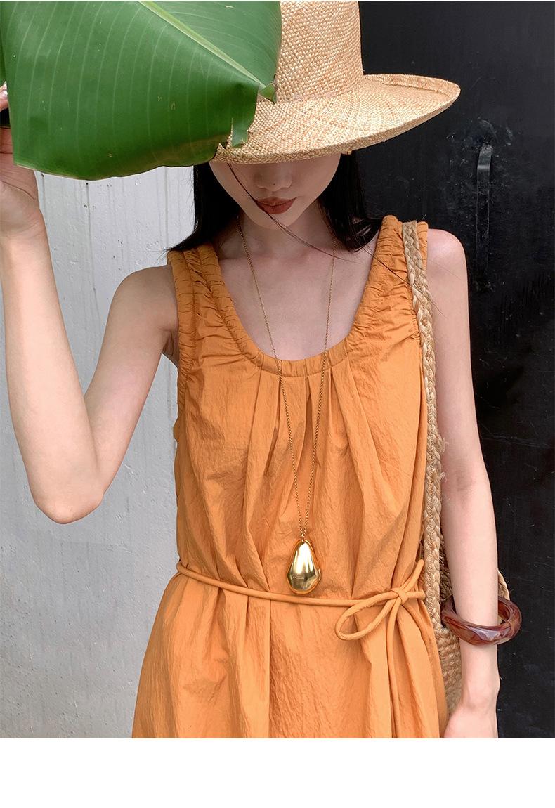 Vestido minimalista Dreaming DT ETOLIE sin mangas con escote en U, vestido de verano con tirantes plisados, vestido largo elegante con cintura