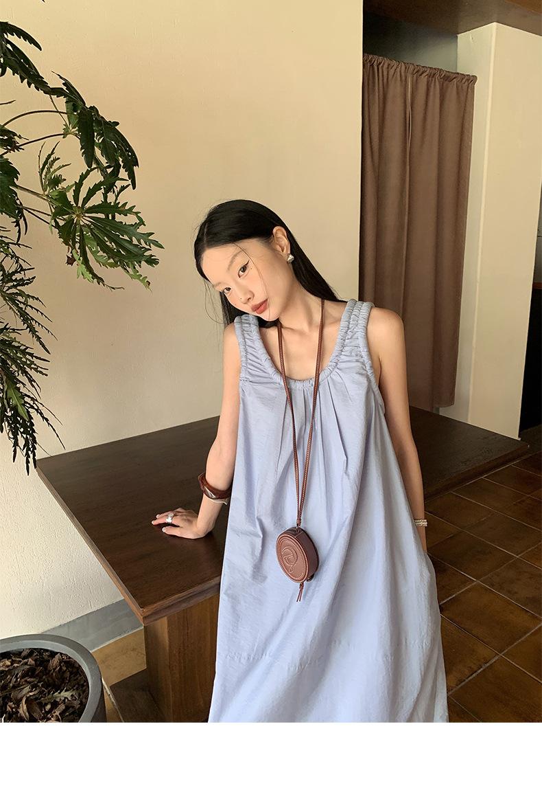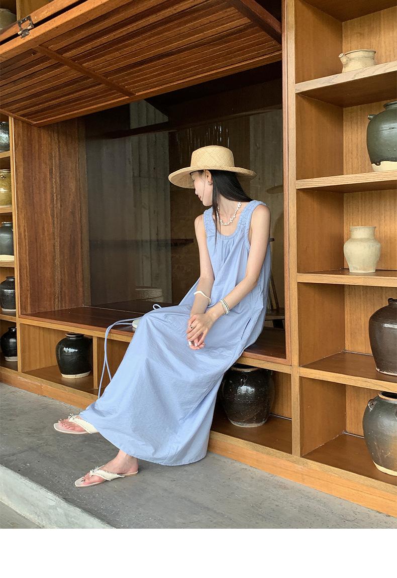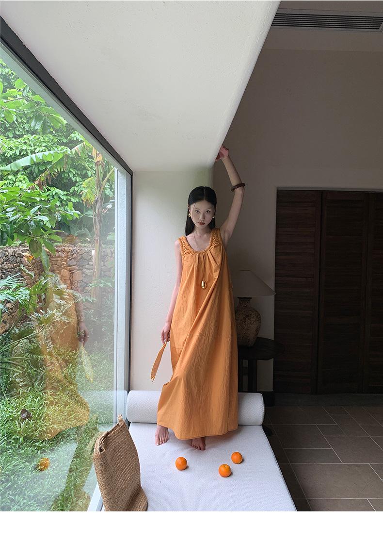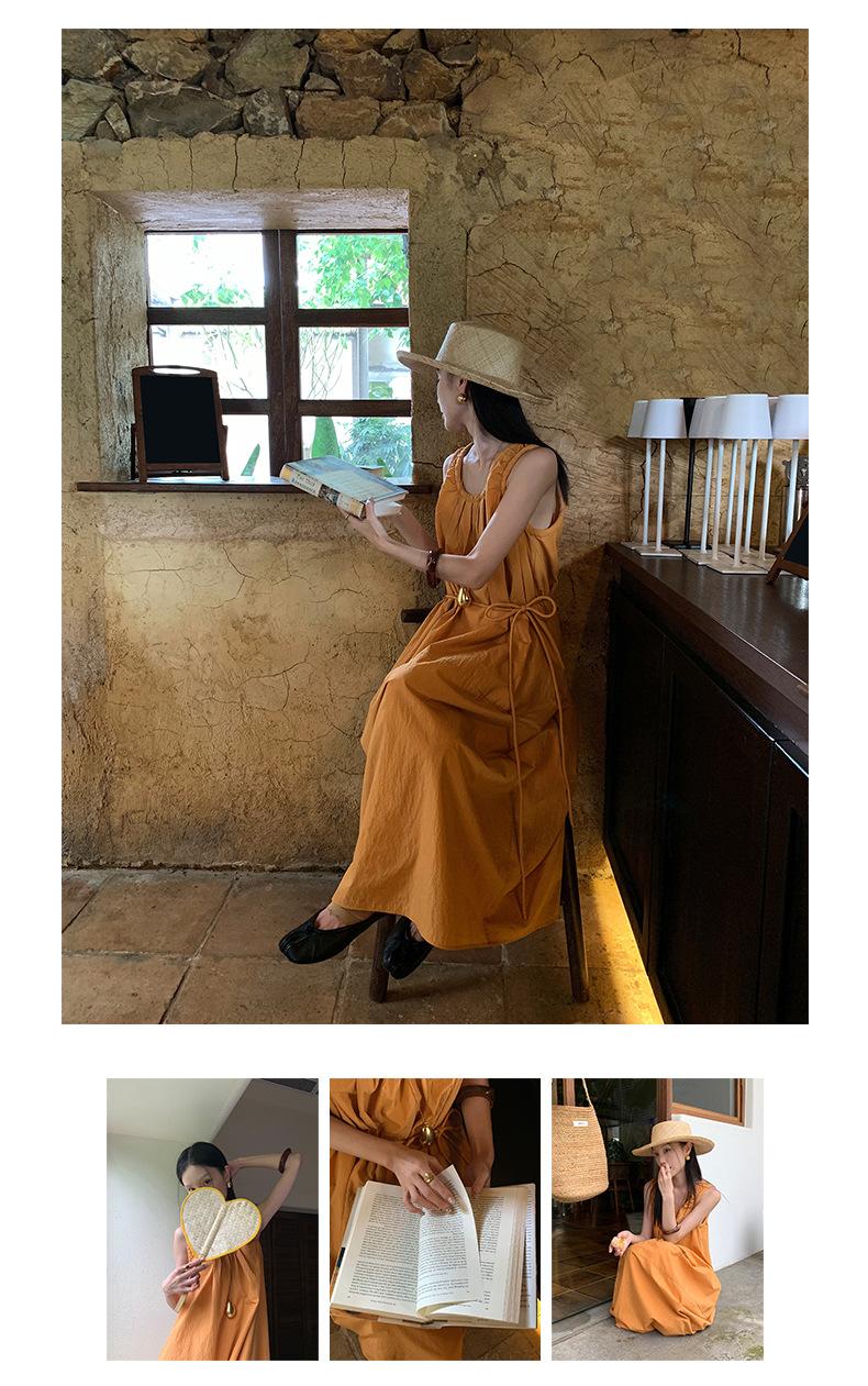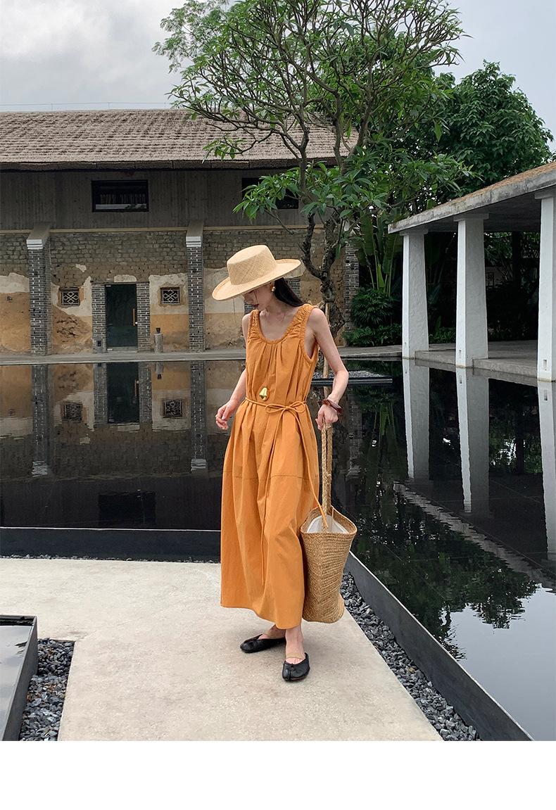Vestido minimalista Dreaming DT ETOLIE sin mangas con escote en U, vestido de verano con tirantes plisados, vestido largo elegante con cintura