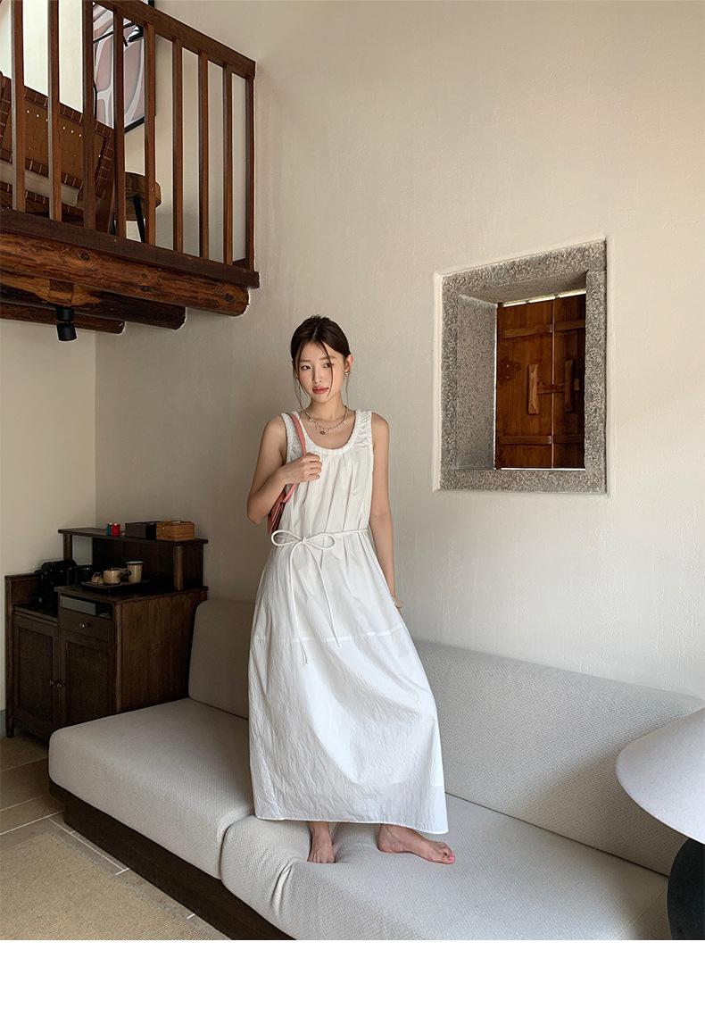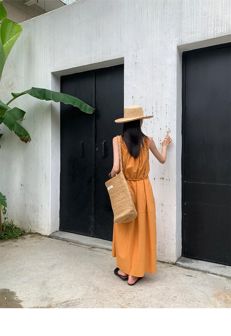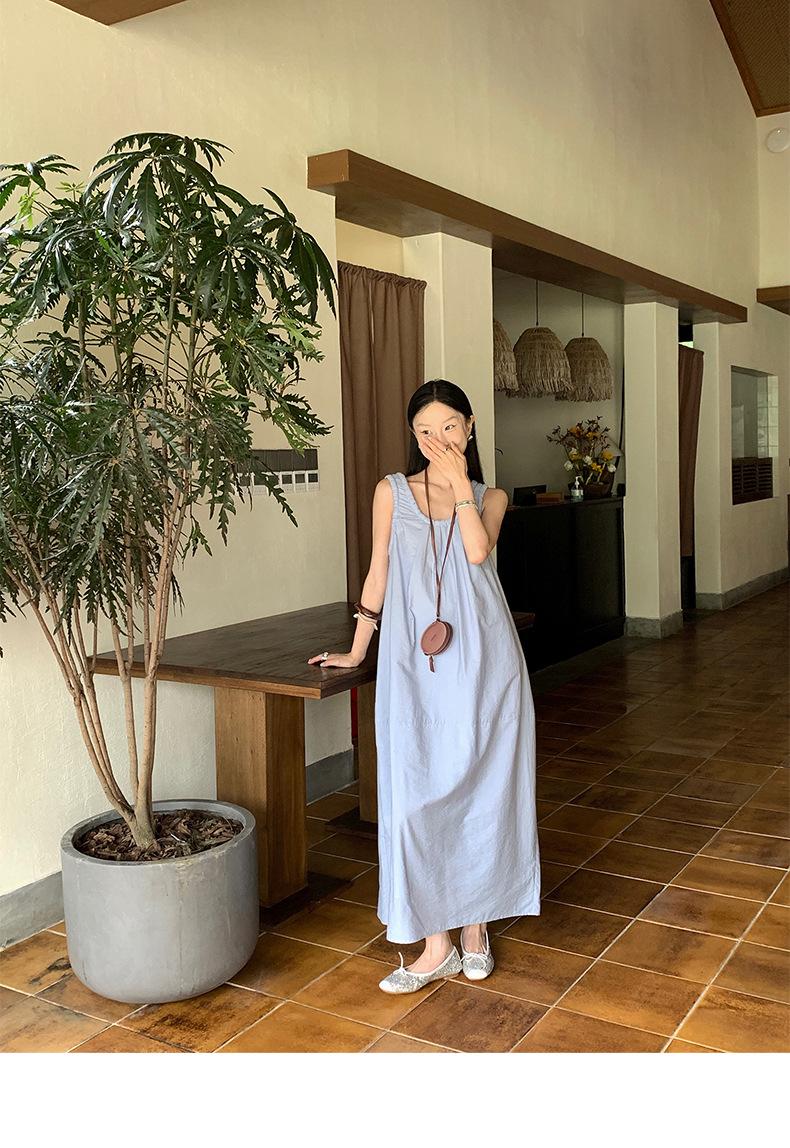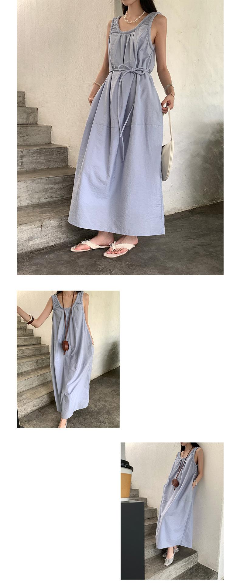 Vestido minimalista Dreaming DT ETOLIE sin mangas con escote en U, vestido de verano con tirantes plisados, vestido largo elegante con cintura
