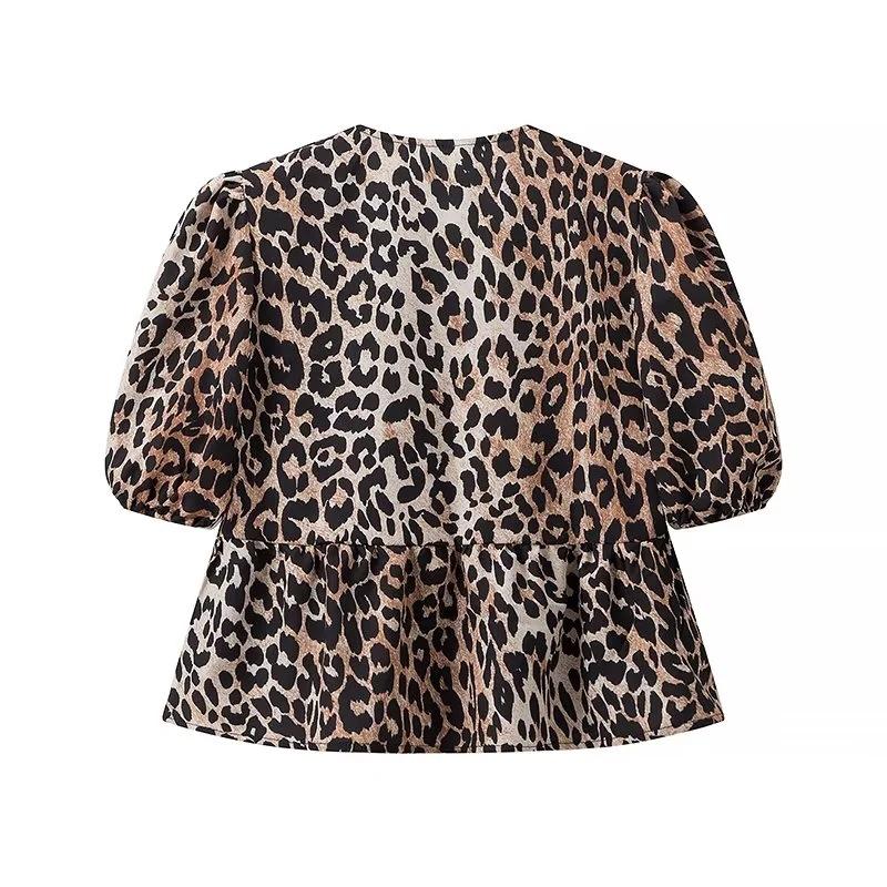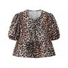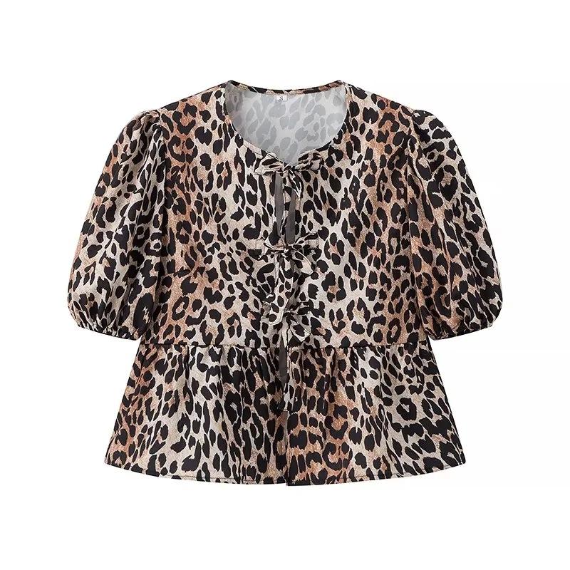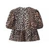 Ropa de Mujer Transfronteriza Europea y Americana al por Mayor Primavera 2024 Nueva Camiseta de Manga Corta con Estampado de Leopardo Camiseta Corta de Cuello Redondo para Mujer