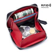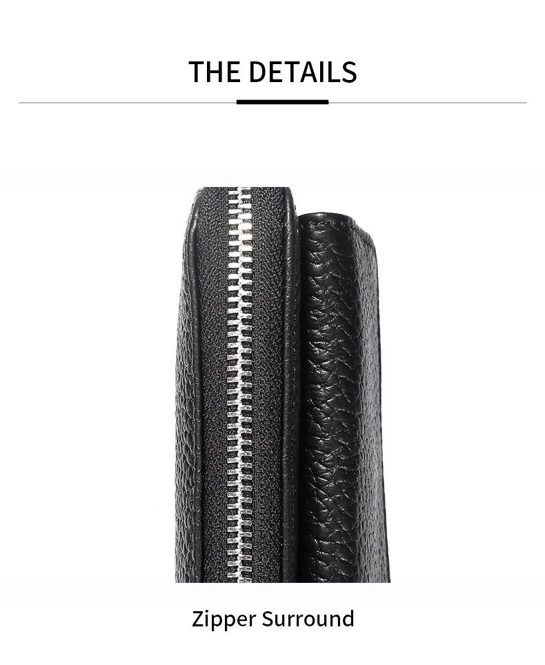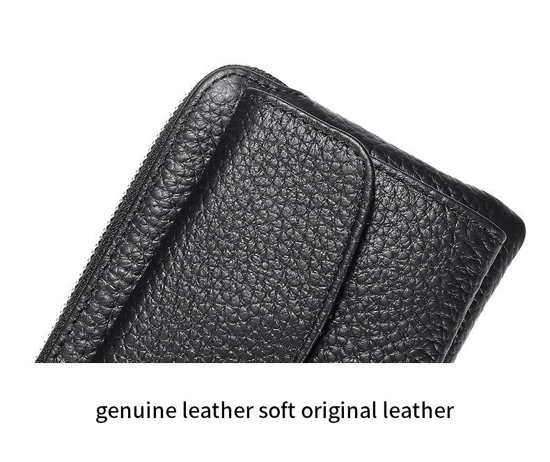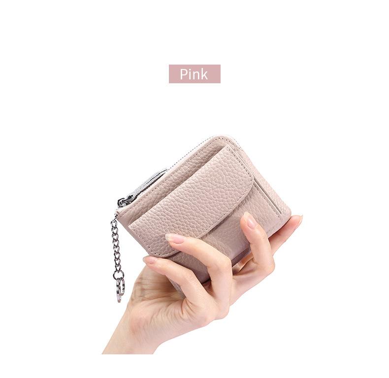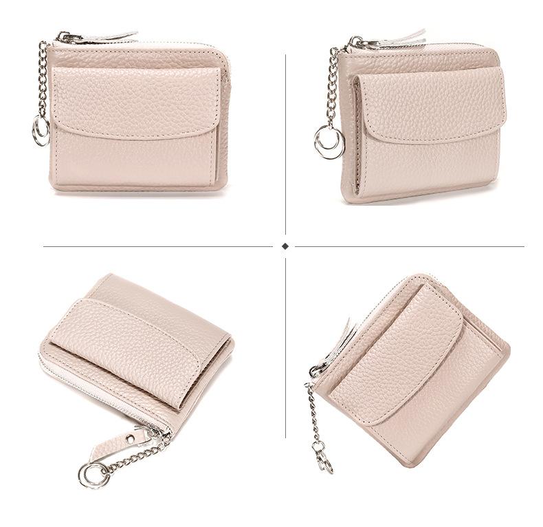 El frente tiene un diseño de bolsillo para monedas tipo acordeón, que es muy funcional.
