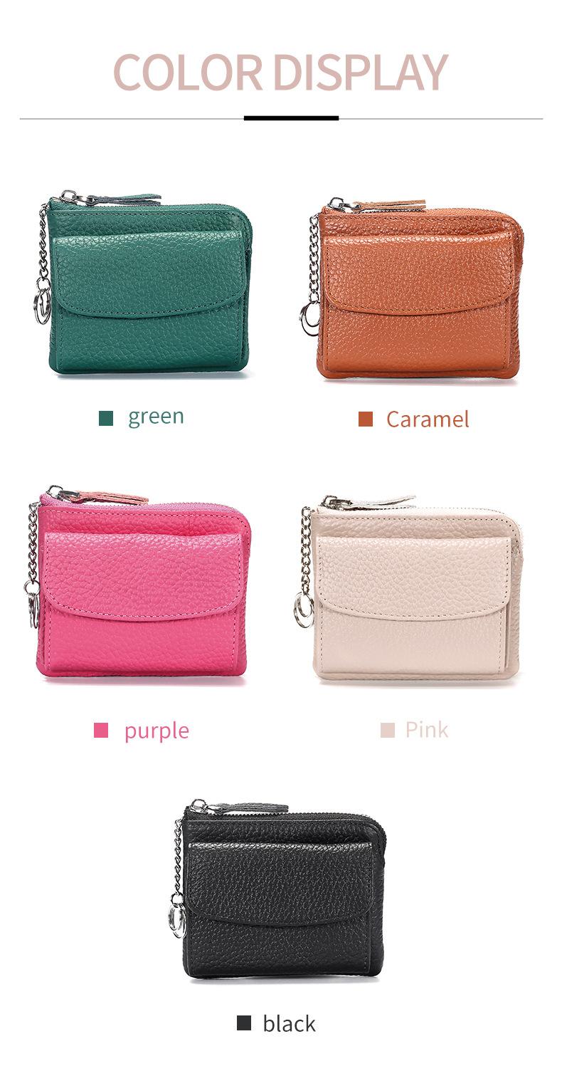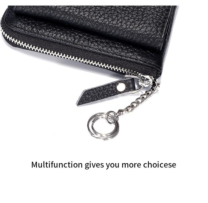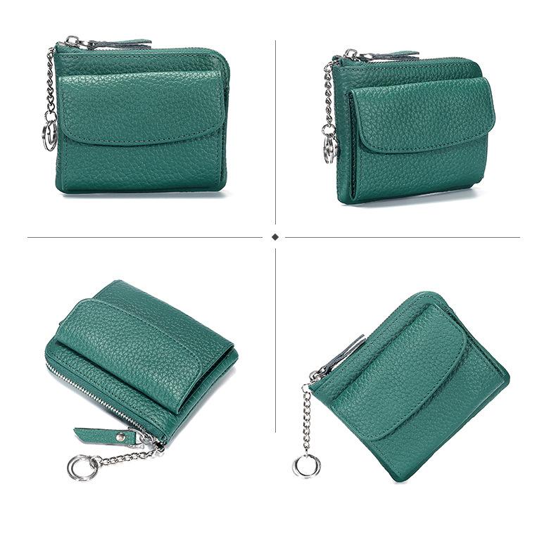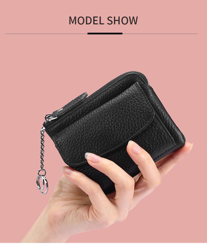 Estructura: un llavero, 1 bolsillo principal, dos compartimentos para monedas