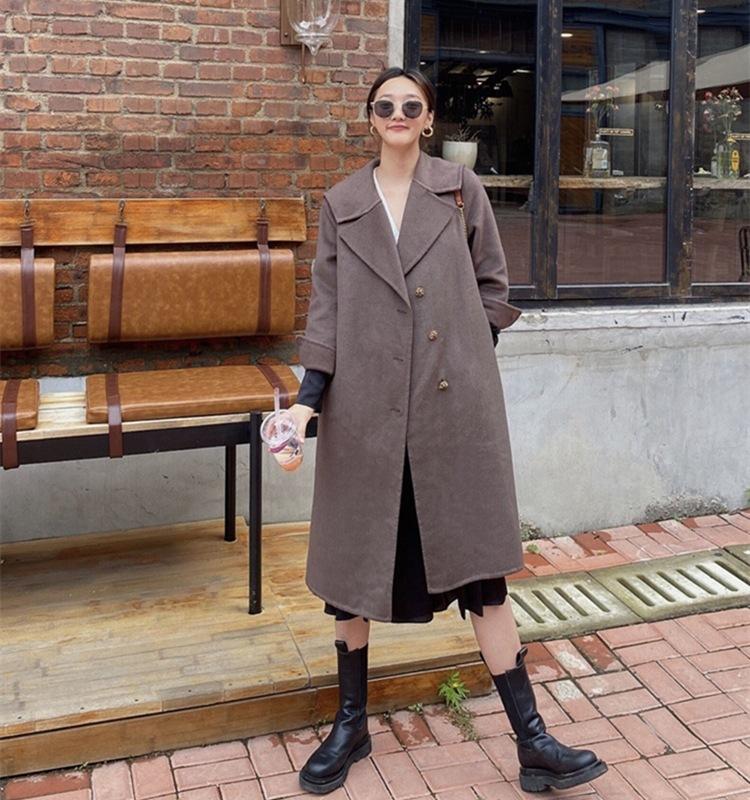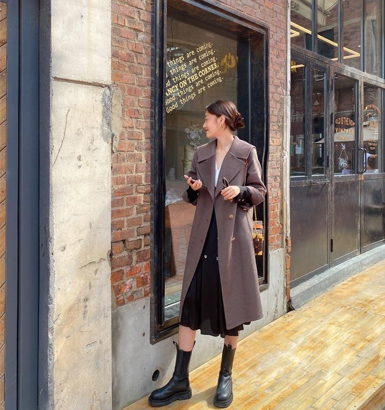 Abrigo de lana doble para mujer, largo medio, estilo coreano, de alta gama, estilo calabaza, vintage, sobre la rodilla, 100% lana