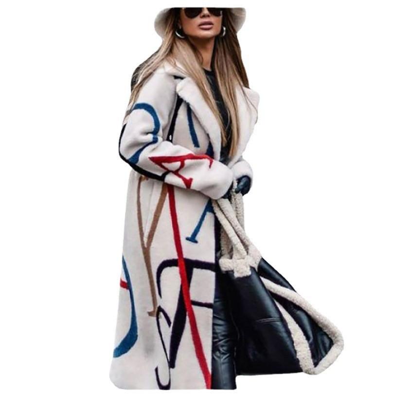 ¡En stock! 2025 Otoño e Invierno Transfronterizo Europeo y Americano Nuevo Cortavientos Estampado de Solapa para Mujer Holgado de Talla Grande
