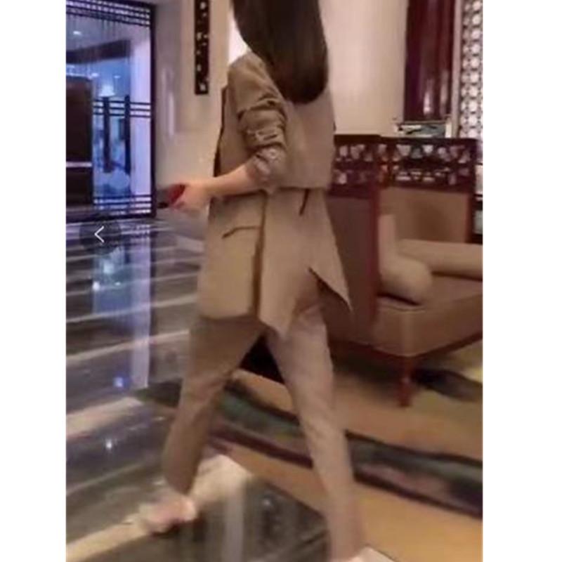 Conjunto de Traje de Dos Piezas de Moda Nueva Primavera 2025 con Blazer de Espalda Dividida y Pantalón Largo para Mujer