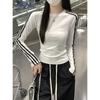 Sudadera de Otoño Nueva 2021 de Cuello Redondo y Manga Larga para Mujer Tops de Estilo Coreano para Mujer Exportación Camiseta a Rayas Camiseta Básica para Mujer