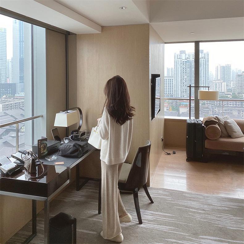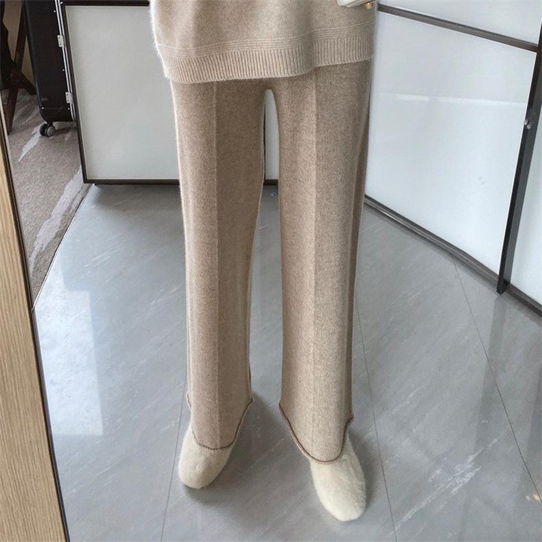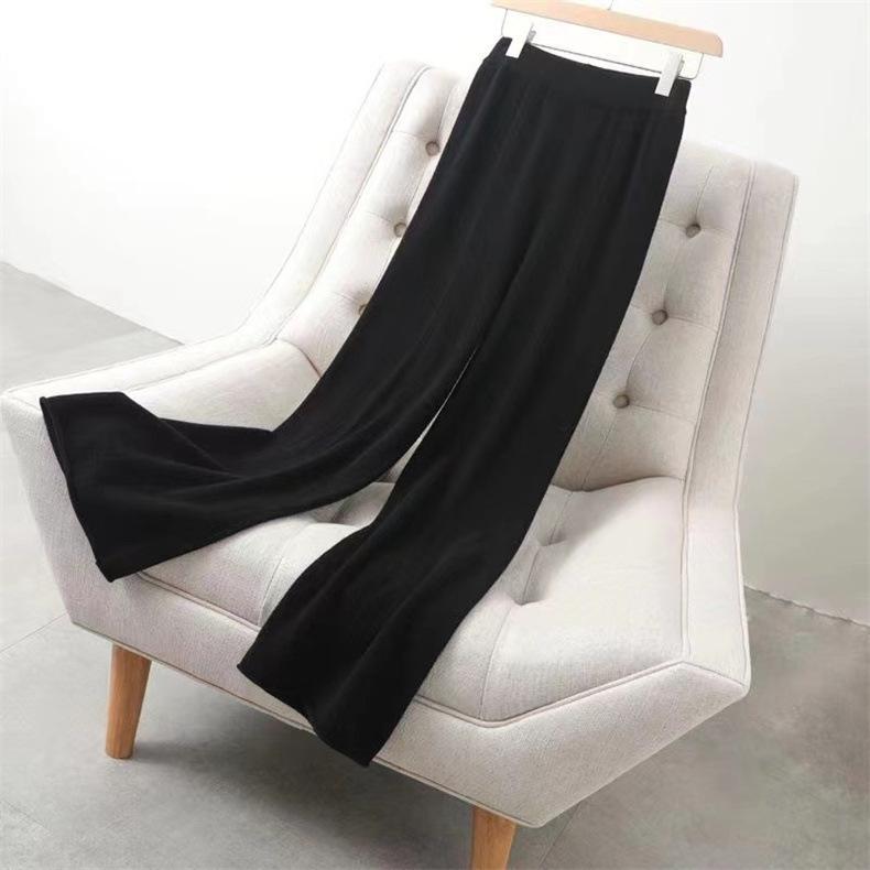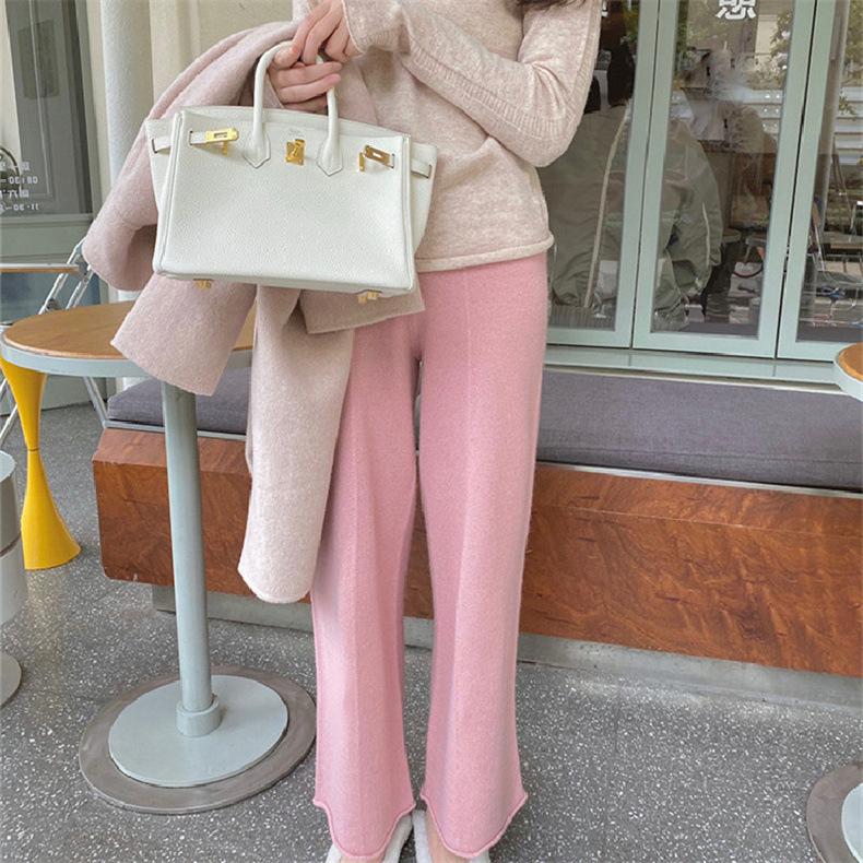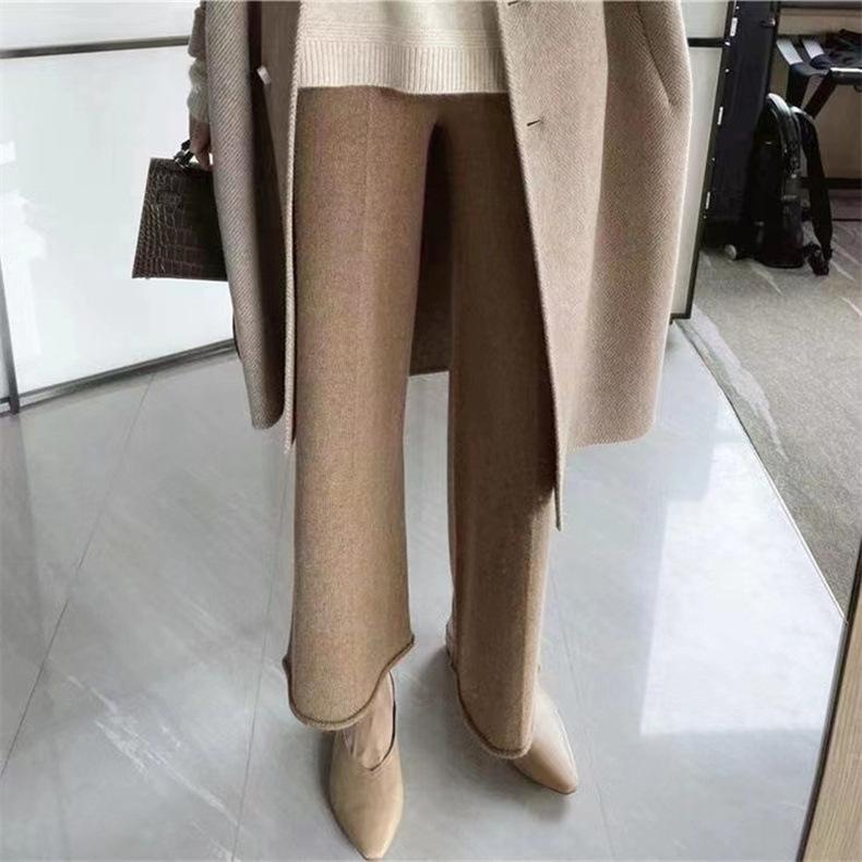 Pantalones de Punto de Pierna Recta 2025 Otoño Color Sólido Cintura Alta Casual Cómodo Suelto Moda Elegante Elasticidad Media Pantalones de Mujer